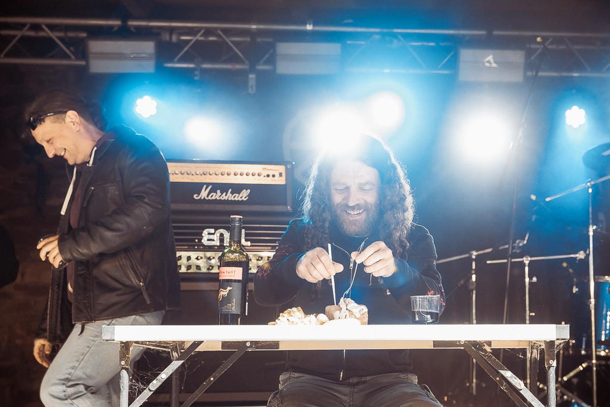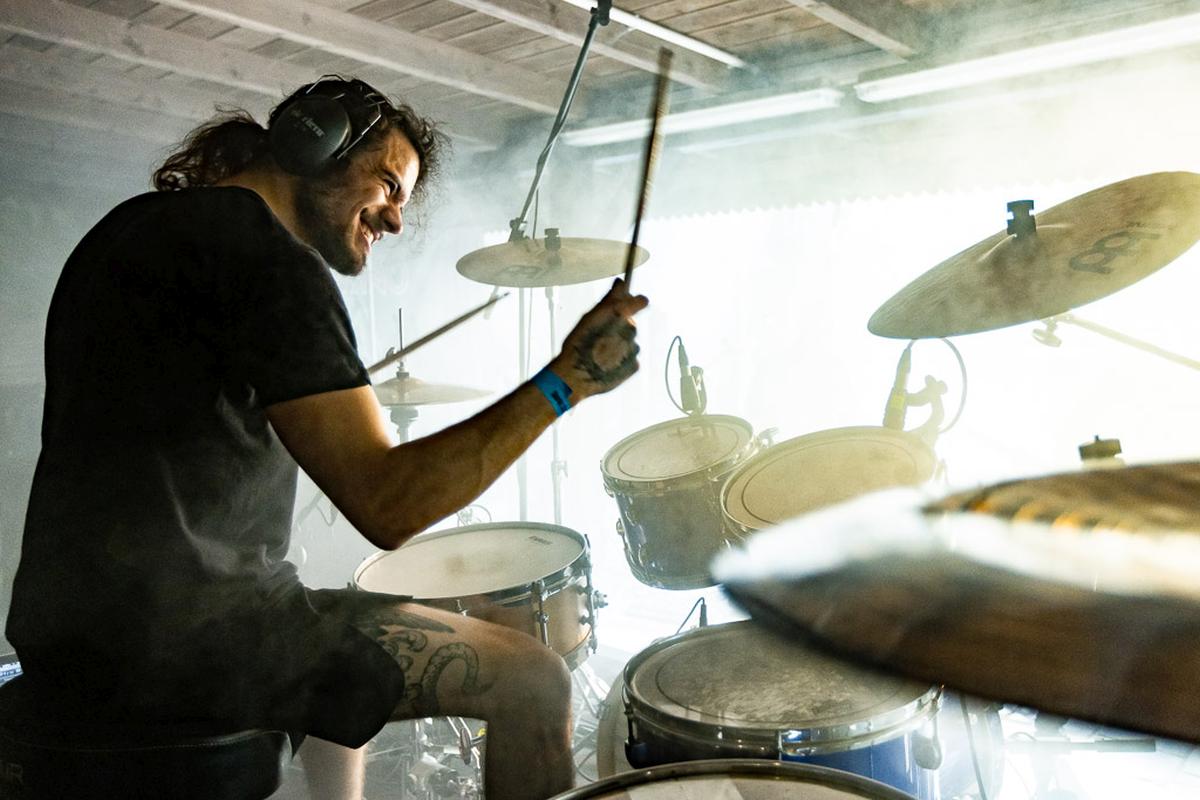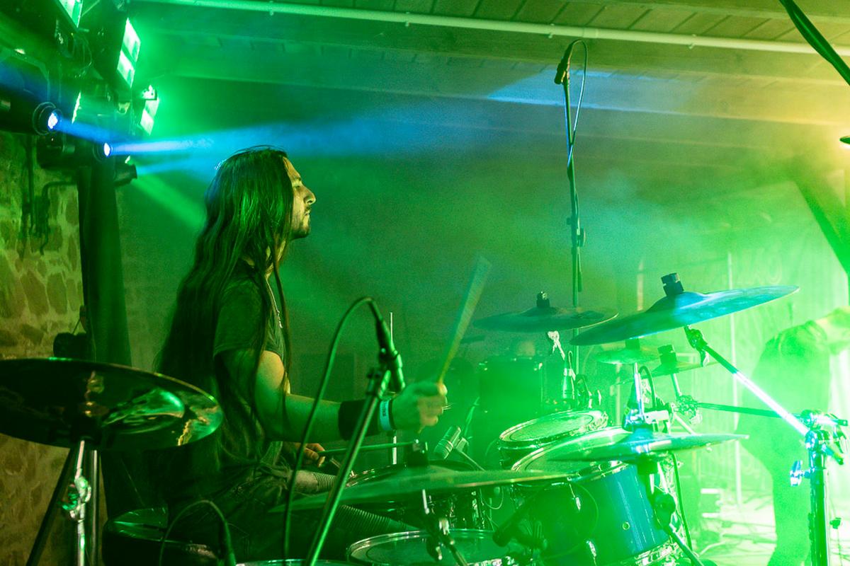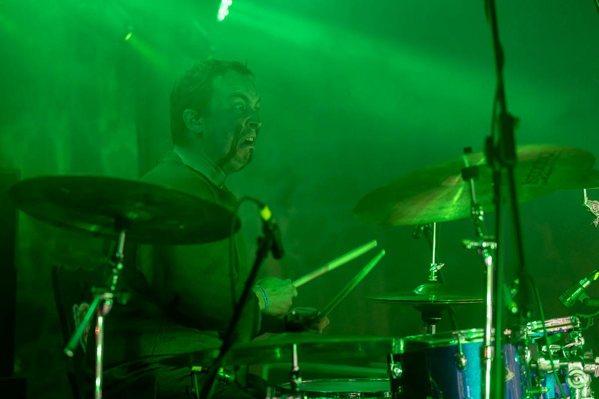 Das Heft kündigt Grimner gern mit den Satz "Jetzt wird es folkig!" und ich könnte es nicht besser beschreiben. Die Band nutzt eine Bandbreite von Folkinstrumenten für ihre Lieder, wobei die Flöte am häufigsten vorkommt und ein markantes Erkennungszeichen der Band ist. Dementsprechend habe ich ganz fest an die Metal-Götter gebetet, dass die Flöte bitte nicht untergehen möge und teilweise haben sie mich erhört. An einigen wenigen Stellen war die Flöte leider nicht oder nur schwer zu hören. Ein kleiner Wehmutstropfen bei einem sonst gelungenen Auftritt. Nach dieser ganzen Bewegung ein kühles Bier und dann ab in die Tiefen des Abgrunds.