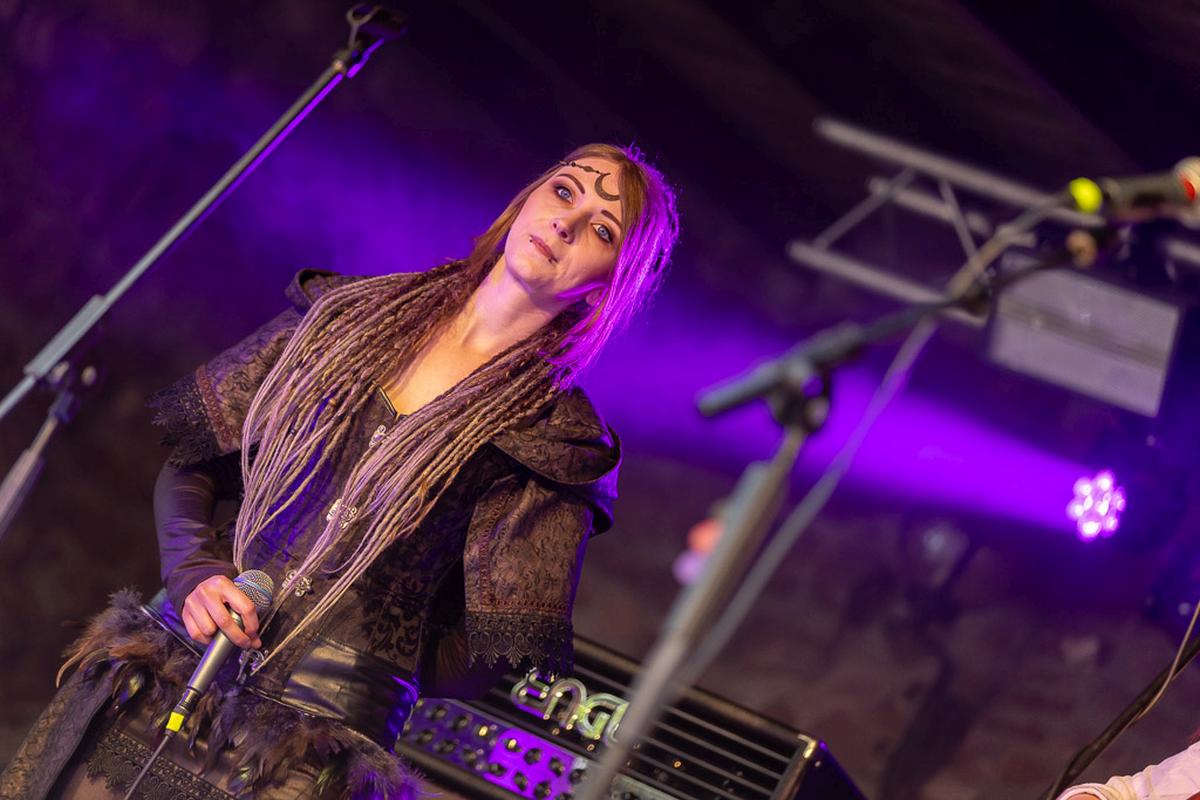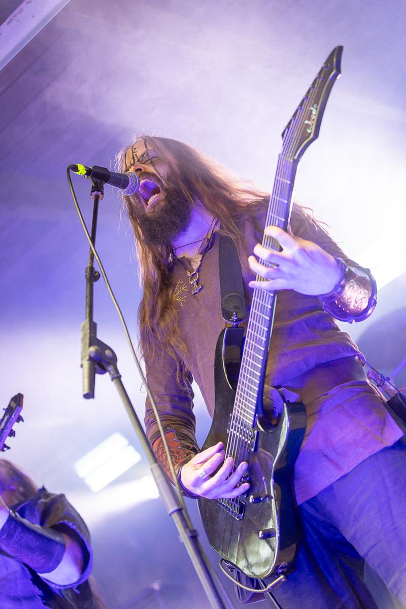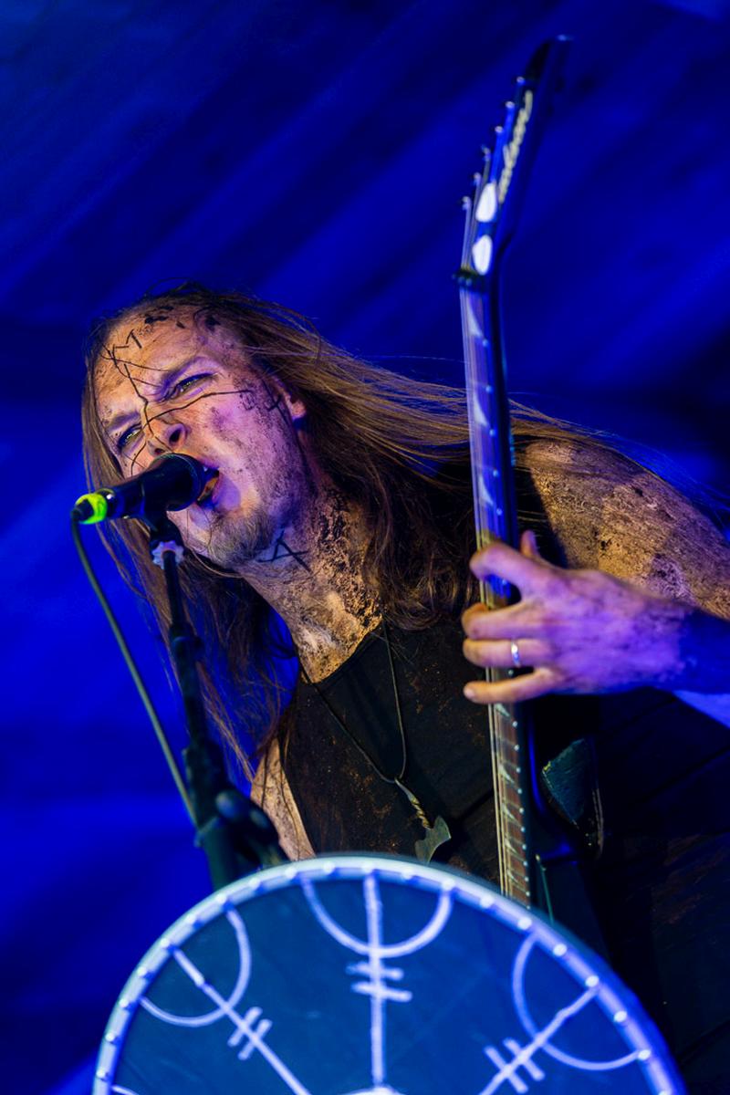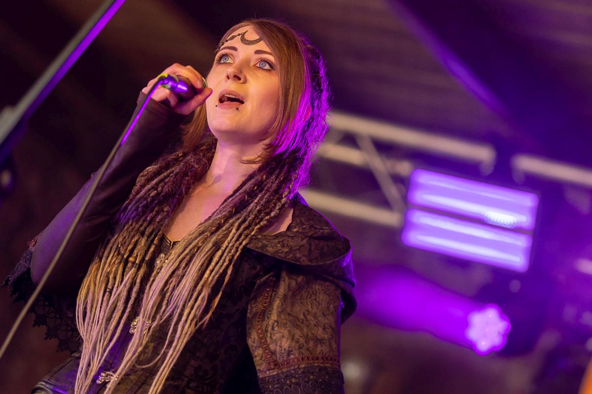 Mit dem nächsten Act wird es mystisch. Vermilia ist ein Soloprojekt einer finnischen Künstlerin, die rauen, harten Pagan-Metal mit gefühlvollem, teilweise melancholischem Gesang kombiniert. Diese Kombination finde ich sehr spannend und die Stimme von Vermilia hat mich sofort in den Bann gezogen. Ihre Stimme ist nicht nur ein Kontrast zu der eigenen Musik, sondern auch ein starker Kontrast zu dem Gesang der vorigen Bands. Mit ihrem Bühnenoutfit, den Blumen am Mikrofon und der Gesichtsbemalung hatte ich immer den Eindruck von einer Hexe, die nur für uns aus den finnischen Wäldern emporgiestegen ist.