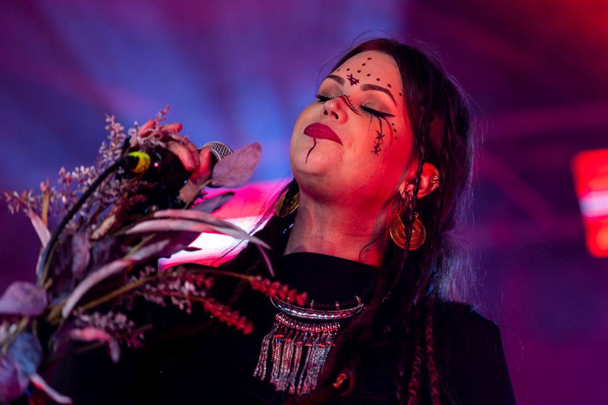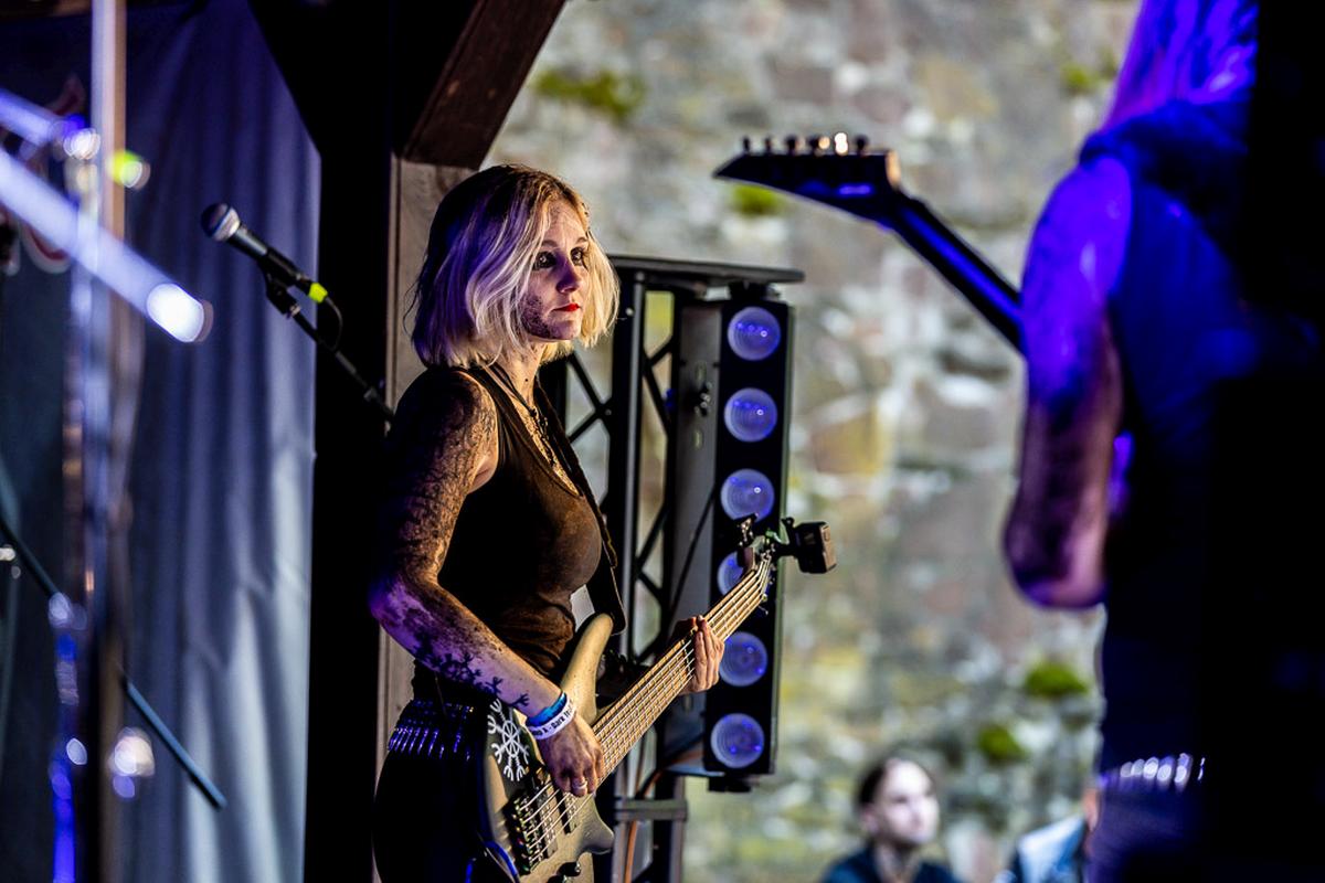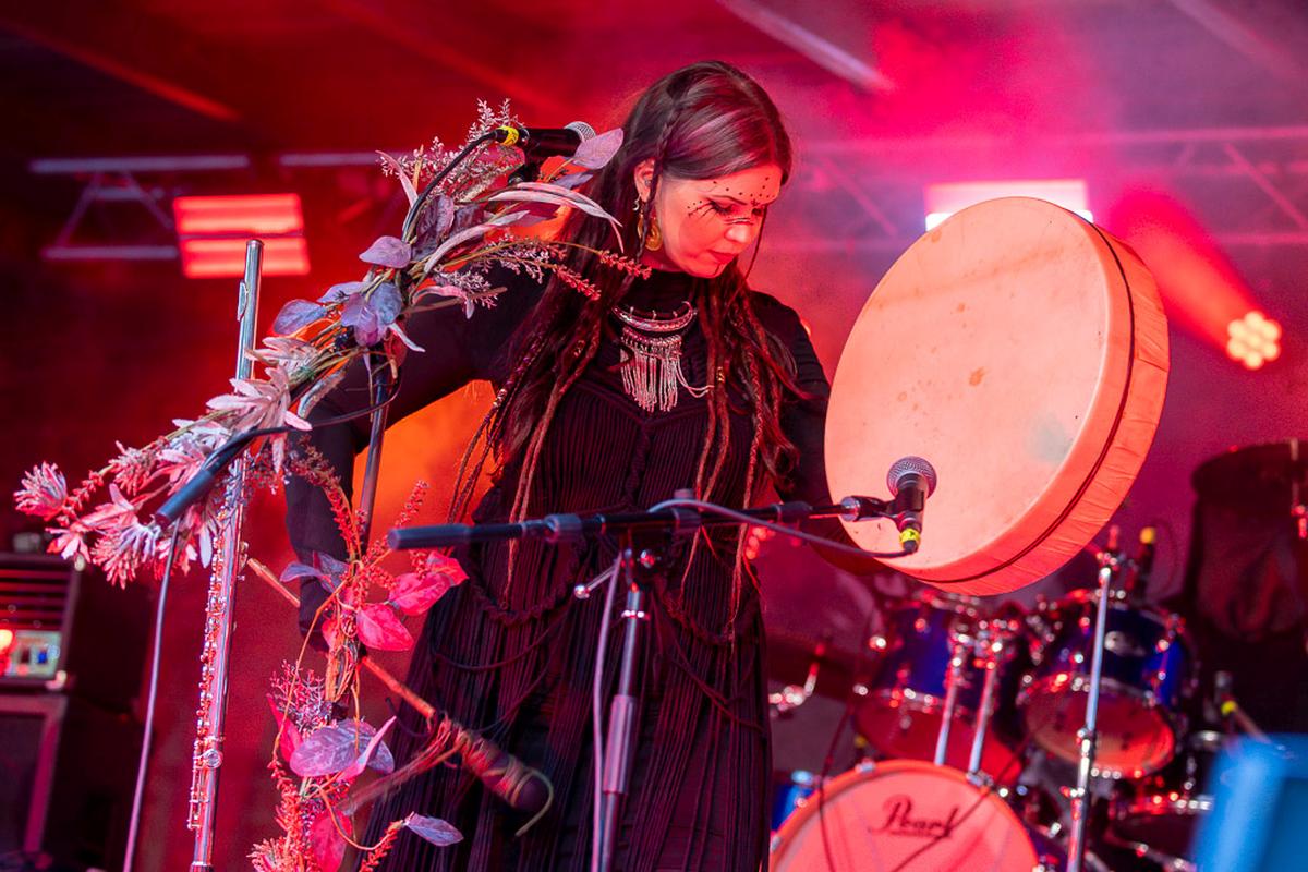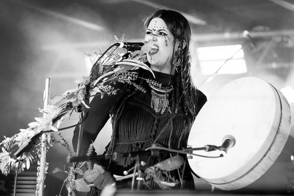 Mit dem nächsten Act wird es mystisch. Vermilia ist ein Soloprojekt einer finnischen Künstlerin, die rauen, harten Pagan-Metal mit gefühlvollem, teilweise melancholischem Gesang kombiniert. Diese Kombination finde ich sehr spannend und die Stimme von Vermilia hat mich sofort in den Bann gezogen. Ihre Stimme ist nicht nur ein Kontrast zu der eigenen Musik, sondern auch ein starker Kontrast zu dem Gesang der vorigen Bands. Mit ihrem Bühnenoutfit, den Blumen am Mikrofon und der Gesichtsbemalung hatte ich immer den Eindruck von einer Hexe, die nur für uns aus den finnischen Wäldern emporgiestegen ist.
