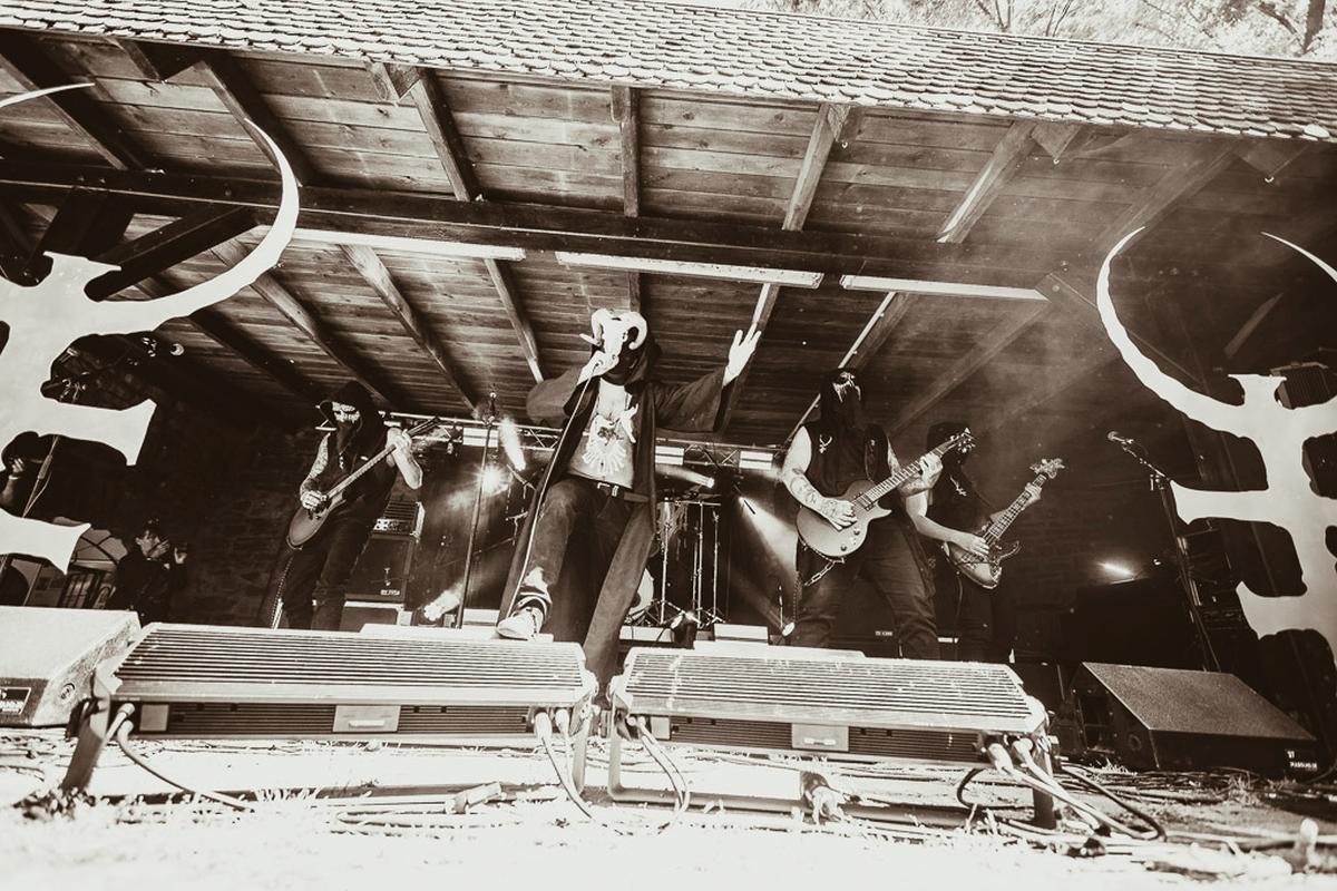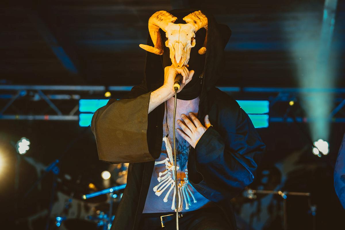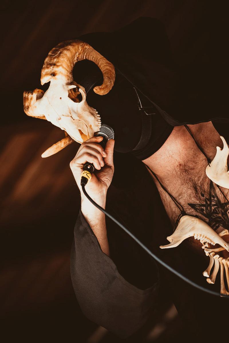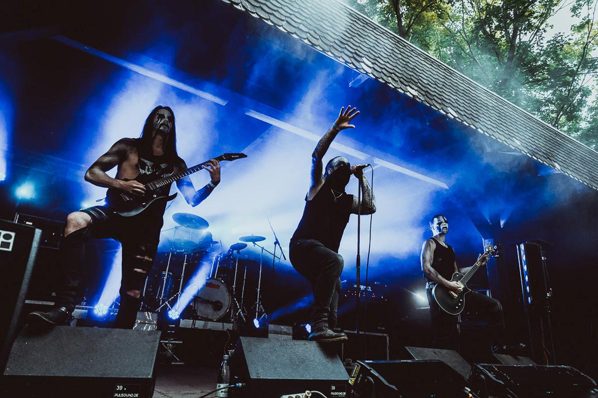 Danach wird es richtig, richtig finster mit Boötes Viod. Die Band habe ich im vorigen Jahr auf dem Wolfszeit Festival kennengelernt und dort habe ihren kalten, fast klinischen Black Metal schätzen gelernt. Letztes Jahr hat mir ihr Bühnen-Outfit, schwarz in schwarz vermummt, echt gefallen und dieses Jahr gab es ein kleines Upgrade in Form von weißen Aplikationen. Der Frontmann hingegen darf Knochen auf dem Kopf und um seinen Hals tragen. Modisch sind die Jungs von Boötes Void und da vergisst man gerne mal, welchen Effekt das Äußere einer Band auf den Gesamteindruck hat. Musikalisch waren sie wiedermal sehr gut undich empfehle sie gerne weiter.