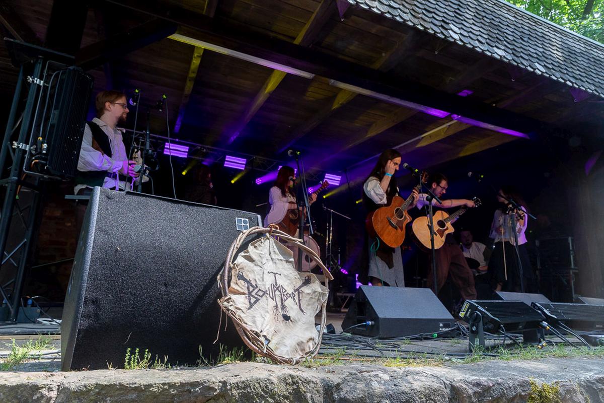 Nach der heutigen Pagan-Keule wird es jetzt wieder etwas ruhiger und geerdeter mit Äera. Die Band holt die Zuhörer mit ihrer Musik zurück auf den Boden der Tatsache und direkt in den dichten Wald, der rund um die Burg wuchert. Ähnlich wie Can Bardd bietet Äera eine Musik mit Tiefgang, nur finde ich, die Musik hat ein paar harte Black Metal-Kanten mehr im Klang. Das tut der Musik auch sehr gut und gibt ihr eine gute Abwechslung, auch innerhalb der überlangen Stücke. Ein guter Auftakt für das eher ruhigere Mittelfeld am Freitag.