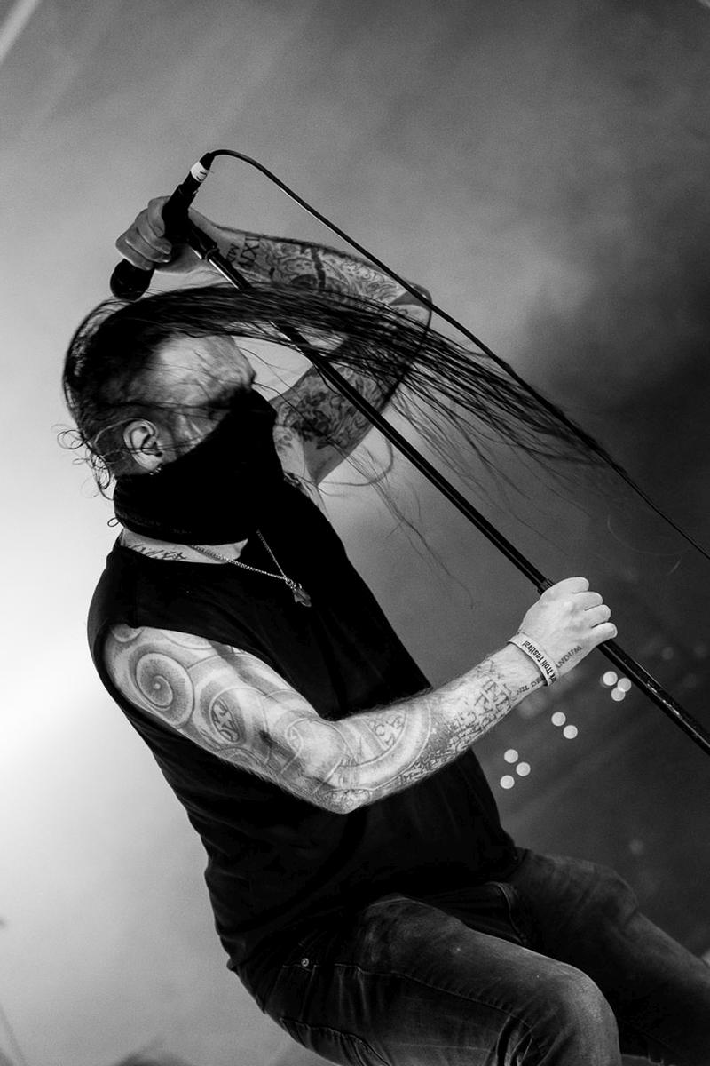 Mit dem Post Black Metal von Agrypnie wird es schnell, schneidend und tiefgründig zugleich. Der Einsatz von Klargesang in einigen Stücken, kombiniert mit blutgefrierenden Schreien, hat mir beim Live-Auftritt imponiert. Die Zuschauer verwandeln sich schnell in ein Meer von wippenden Haarzöpfen, als sie immer tiefer in die Dunkelheit gezogen wurden. Musikalisch, im Vergleich zu Grimner, eine 180 Grad Wendung, die sich tief in mein Gedächtnis geschnitten hat. Zusätzlich haben sie das Tempo auf der Bühne wiederholt gebremst und wieder hochgefahren, ohne aber die Stimmung brutal zu brechen. Das Erlebnis sollte sich jeder Freund von Post Black Metal mindestens einmal geben.