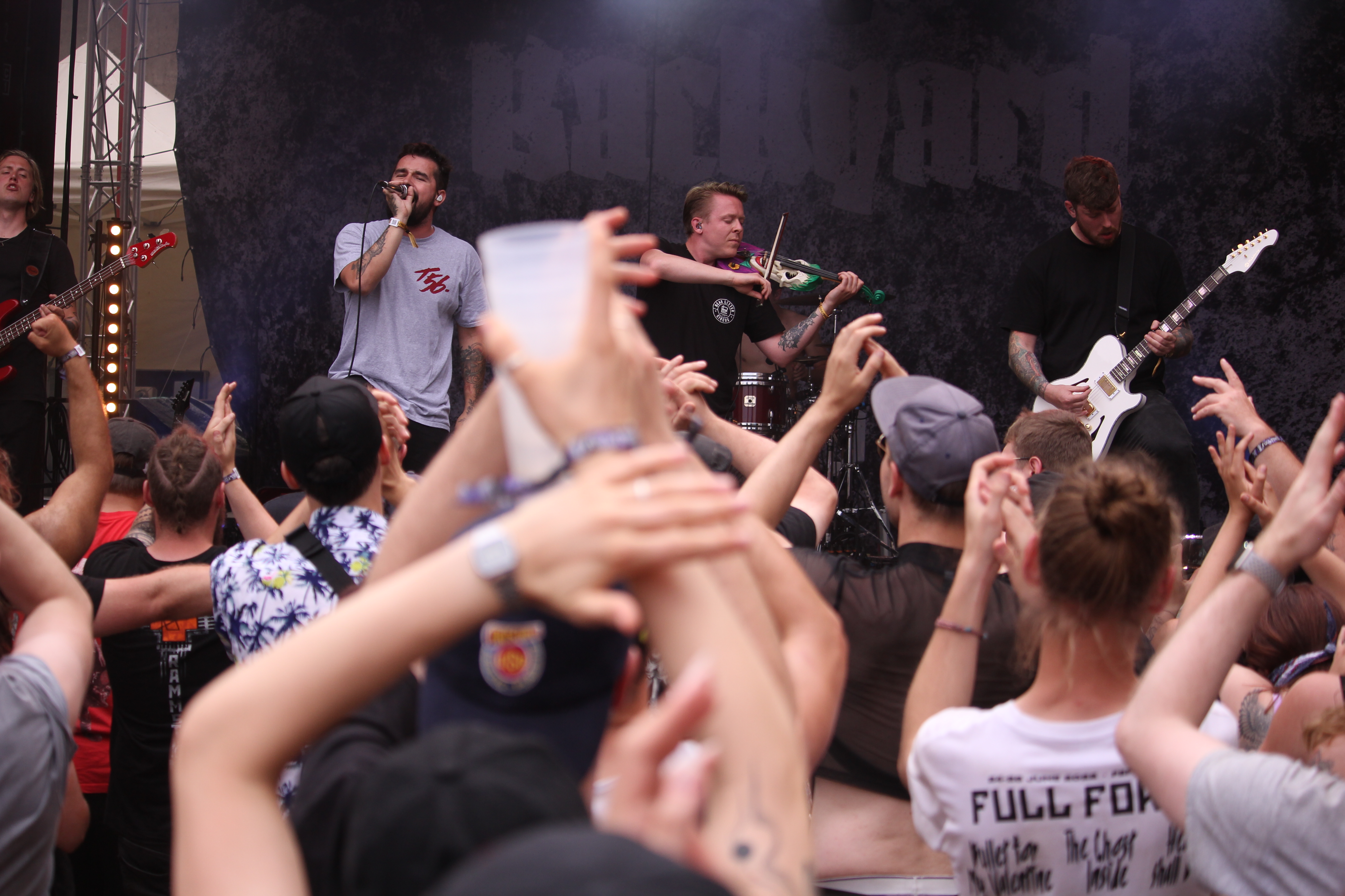 Am Sonntag eröffneten für uns Imminence auf der Mainstage. Auch wenn noch nicht allzu viele wach und bereit waren, überzeugten sie mit ihrer ganz eigenen Version von Post-Metalcore. Die Schweden setzen auf Hardcore mit Geige, was selbst fürs Full Force eine echt außergewöhnliche Mischung ist, aber tatsächlich ganz gut klang.