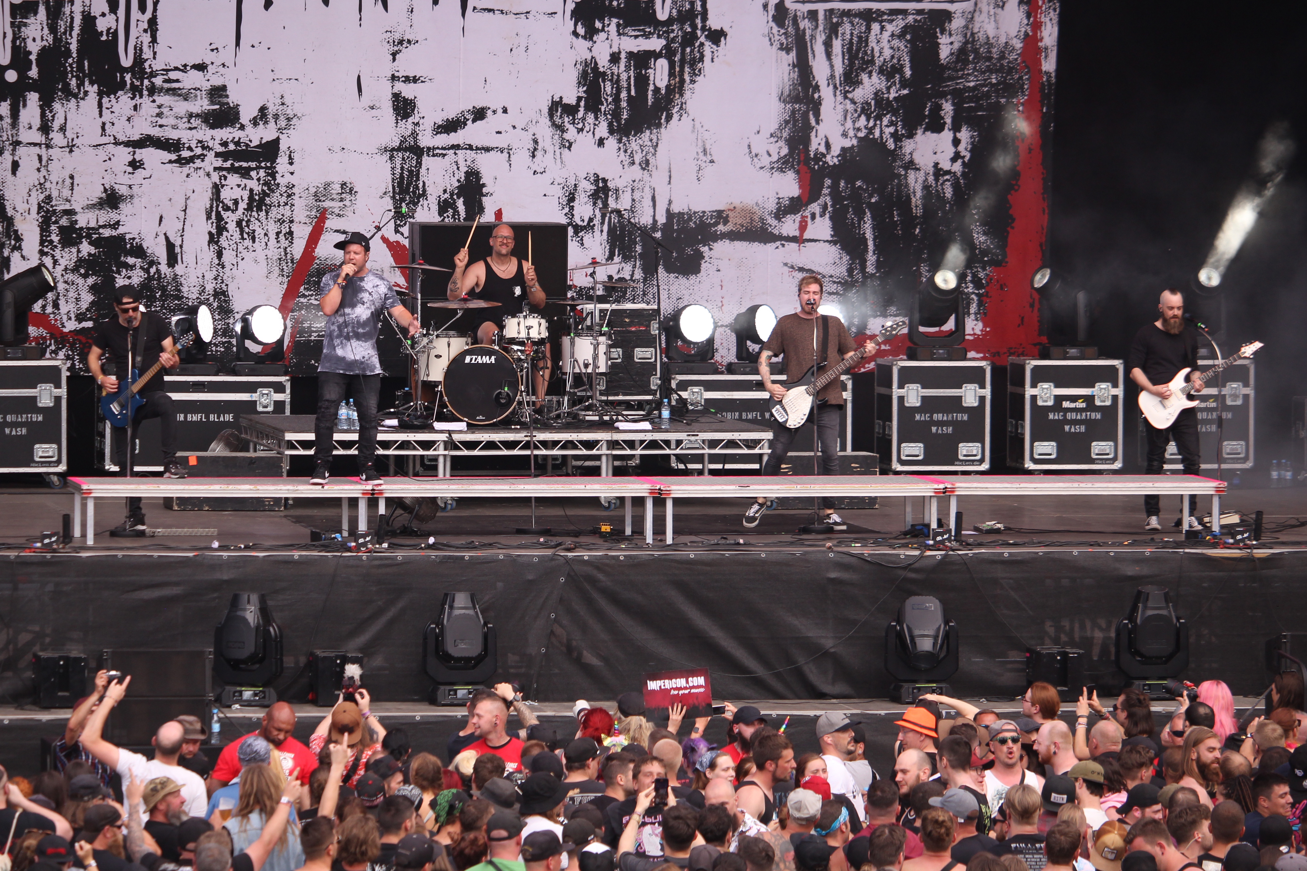 Dank des zeitlichen Verzugs hatten wir zumindest etwas Zeit, uns Any Given Day auf der Mainstage anzuschauen. Mengenmäßig war das Publikum da schon voll da und ging auch ordentlich ab. Wie bereits am Donnerstag bemerkt, haben ALLE einfach richtig Bock auf diesen Festivalsommer, und so lieferten die Gelsenkirchener auch eine ordentliche Show ab.