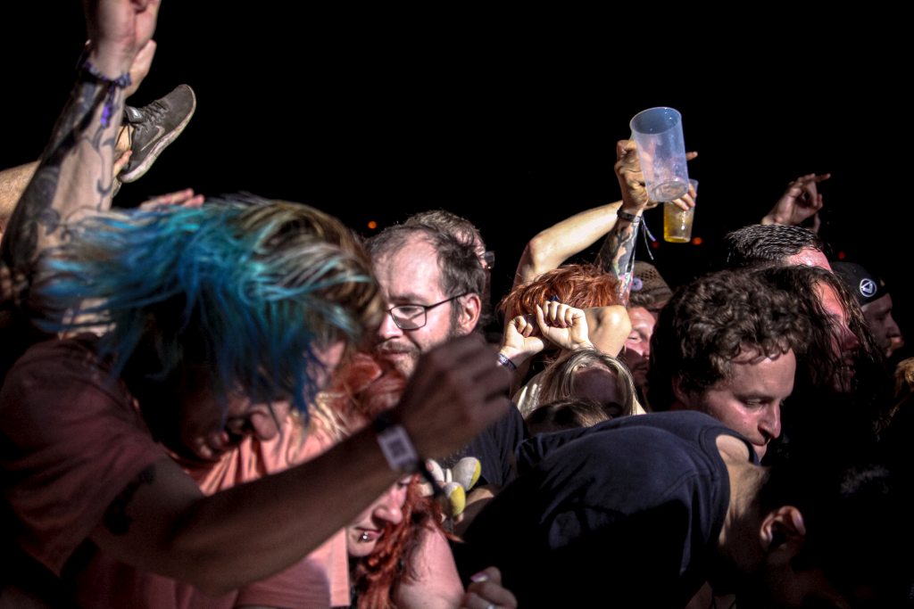 Begonnen werden sollte am Freitag mit Gutalax auf der wohlverdienten Strand-Bühne. Wenn etwas zusammen passt, dann diese abgefahrenen Tschechen und das kühle Nass. Letzteres konnte auch noch etwas länger genossen werden, da sich der Auftritt der grunzenden Abführmittel um einige Zeit verschob, und sie den Slot von Konvent übernahmen. Als es dann aber endlich so weit war, konnte die aufgeregte Meute nichts mehr halten. Sommer, Sonne, Erdbeerbowle – und Grindcore-Polka! Alle stürmten, mit Klobürsten bewaffnet und in Ganzkörper-Anzügen geschützt, auf die Medusa-Stage zu und genossen vollumfänglich das Einläuten des Festival-Sommers 2022. Die Band selbst hatte nicht weniger Spaß. Mit breitem Grinsen und kindlicher Freude bearbeiteten sie die Bühne und das Publikum in allerfeinster Full Force Manier. Hitze und Schweiß konnten den Jungs nichts anhaben und so wurde brutal und ohne Rücksicht durchgeknüppelt. Gespielt wurden alle Hits und auch ein paar neue Sachen, welche sich jedoch laut Frontman in keiner Weise von den alten unterscheiden. Die tanzbaren Melodien ergeben mit dem Grunz-Schrei-Kontrast und der traumhaften Kulisse einen für uns würdigen Auftakt.