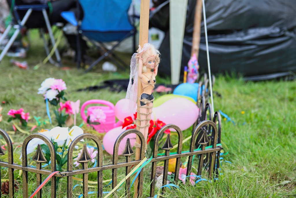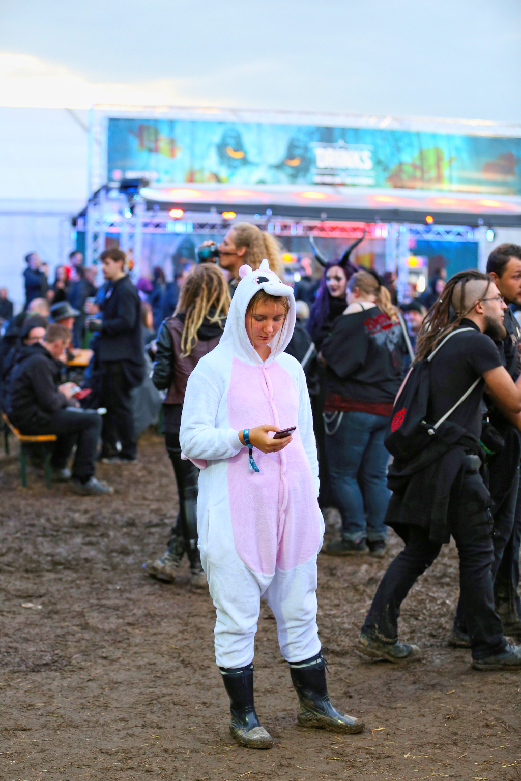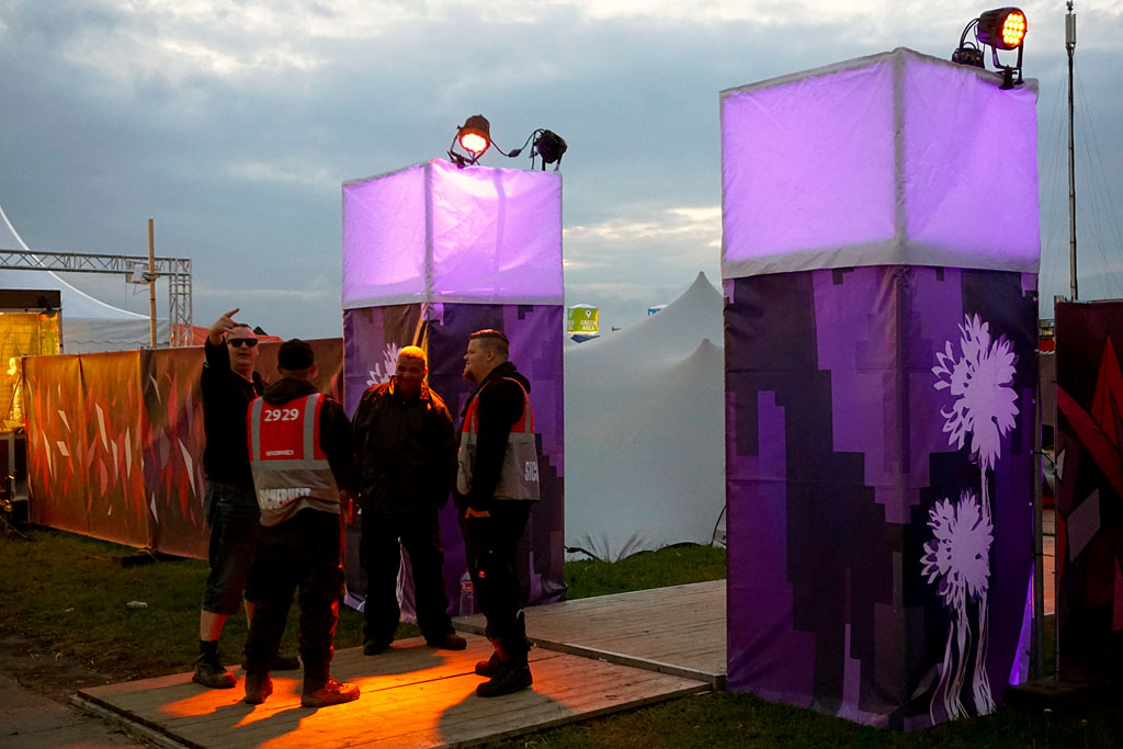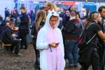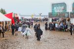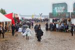 hervor und das Festivalgelände kam gefühlt geordneter als in den Vorjahren herüber - wenn auch der Kampf gegen den aufgeweichten Boden mittels Stroh nicht immer von bleibendem Erfolg gekrönt war. Einige machten dann das Beste daraus und ließen die im Schlamm feststeckenden Schuhe einfach beiseite oder suhlten sich vollends im Matsch.