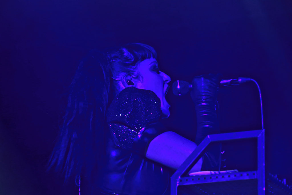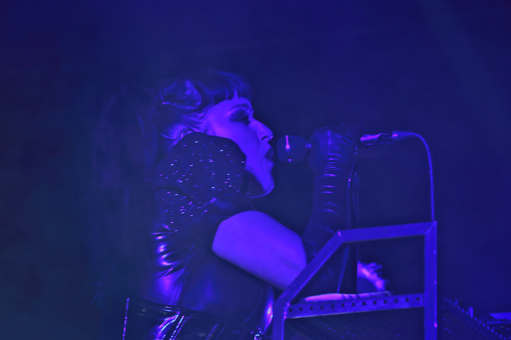 Schwarzer Pop von den Berlinern BLUTENGEL: Chris Pohl redet und singt, manchmal moderiert er auch Modenschauen und Stripteasevorführungen seiner Bühnenkolleginnen-ein All-In-One-Paket sozusagen. Umrahmt von alten und neue Produktionen. Diese wurden dann auch live und knackig unter großer Zustimmung des Publikums dargeboten. Da aber die Zeit drängte, musste sogar der Vortrag gekürzt werden.
