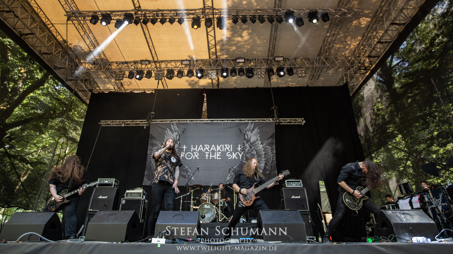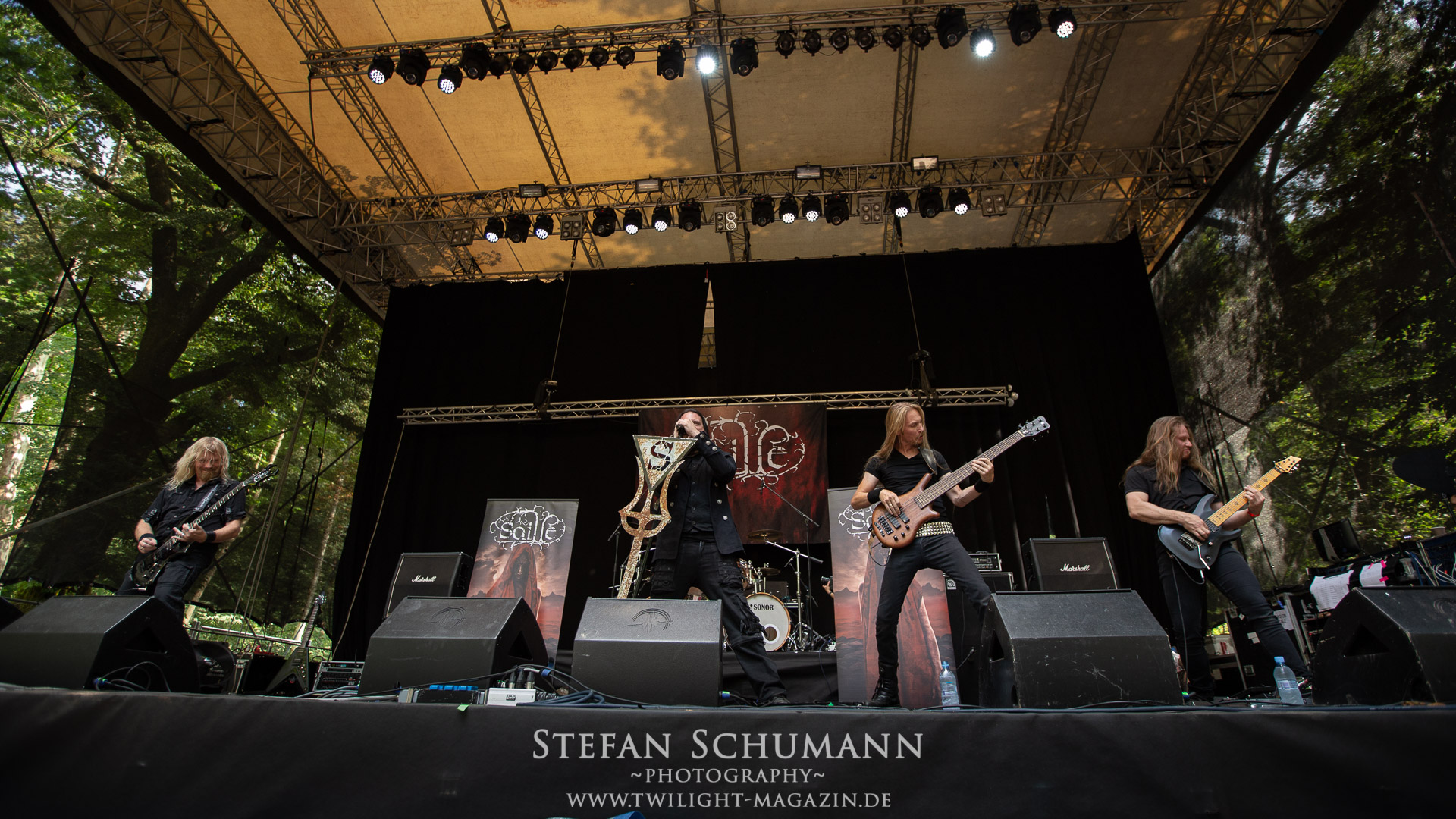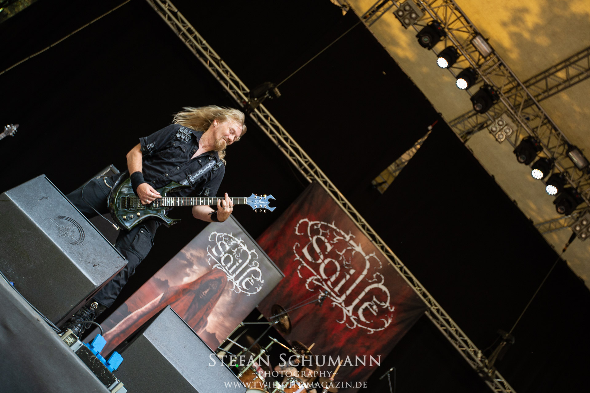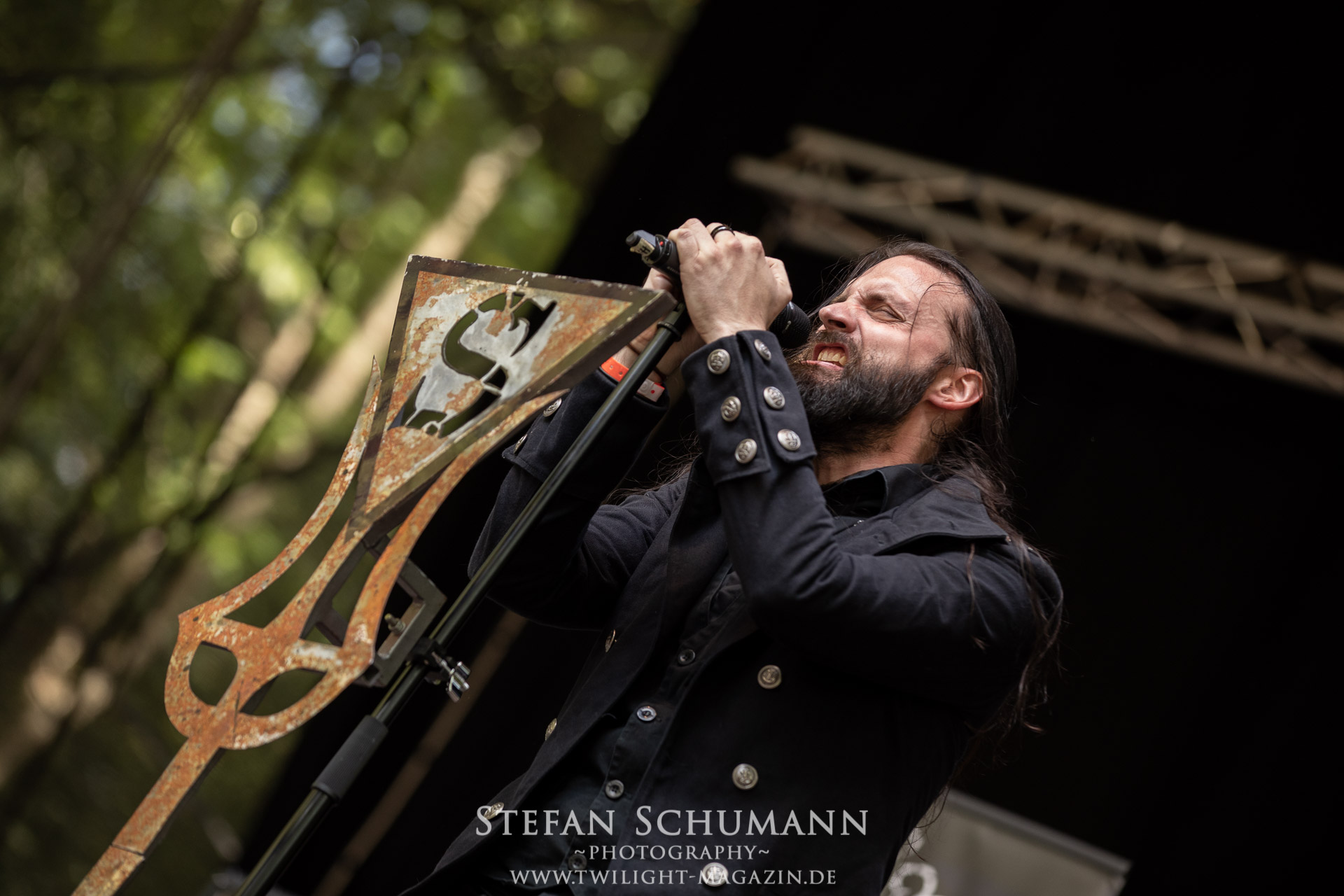 Der Dienstag nervt dann gleich mit einem Konzert-Clash: Während auf der Hauptbühne TESSERACT ihren djentigen progressive Metal dem geneigten Bass-Frickler um die Ohren haut, sind nebenan im Wald die Old-School-Doomster PALLBEARER dabei, die Langsamkeit des Riffs auszuloten. Die Menschenmassen werden dann wieder von ENSIFERUM vor der Hauptbühne eingesammelt. Der fröhliche Vikingmetal mit ordentlich reitenden Gitarren gefällt und Sänger Petri Lindroos performt die neuen Songs genauso, wie die noch ohne ihn eingespielten Lieder der ersten beiden wegweisenden Alben. Höhepunkt der Publikumsinteraktion bilden dabei natürlich „Lai Lai Hei“ und der Rausschmeißer „Iron“, bevor die Bühne für die deutschen Heavy Metal-Urgesteine ACCEPT geräumt wird. Die Solinger fahren voll auf und verlassen sich auch ohne Udo Dirkschneider auf ihre All-Time-Classics wie „Fast as a Shark“, „Metal Heart“ und „Balls to the Wall“, die wirklich jeder mitsingen kann. Ausufernde Gitarrensoli („Für Elise“ im Fleischwolf) und exzessives Posen vor den Bühnenaufbauten sind dabei natürlich auch unentbehrlich.