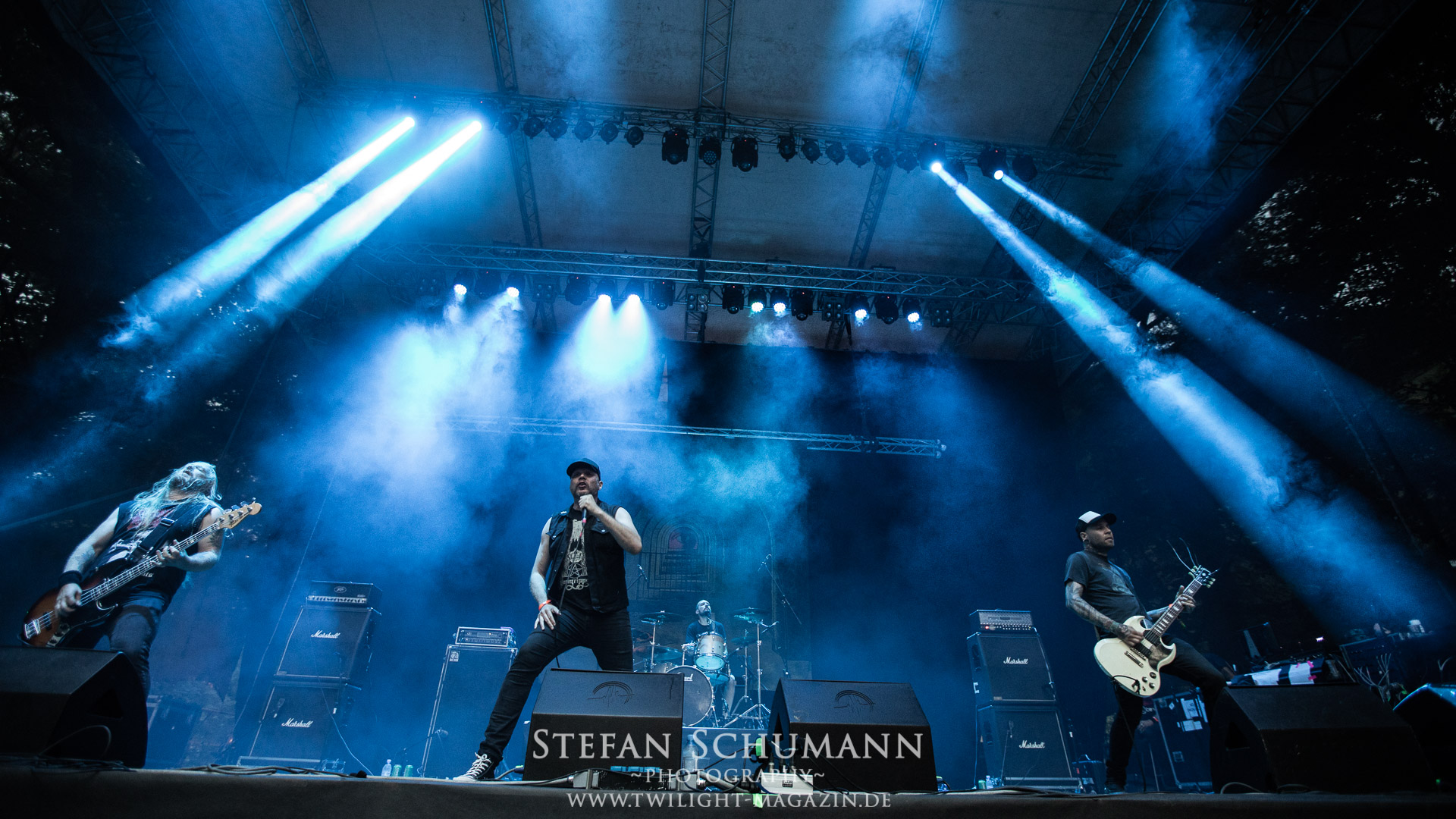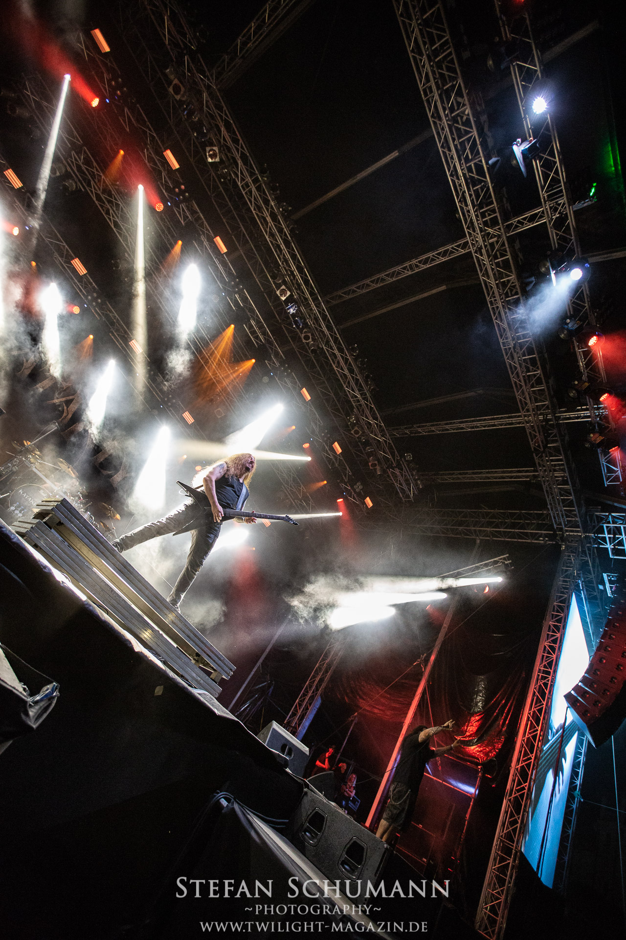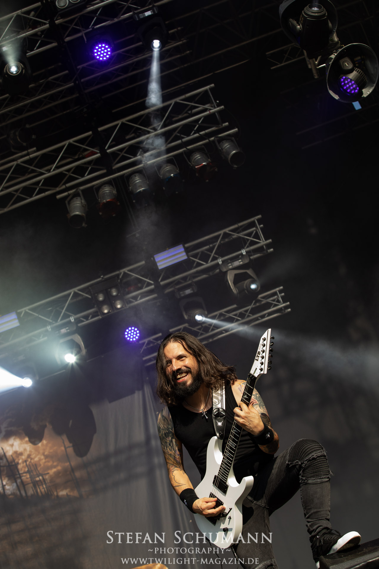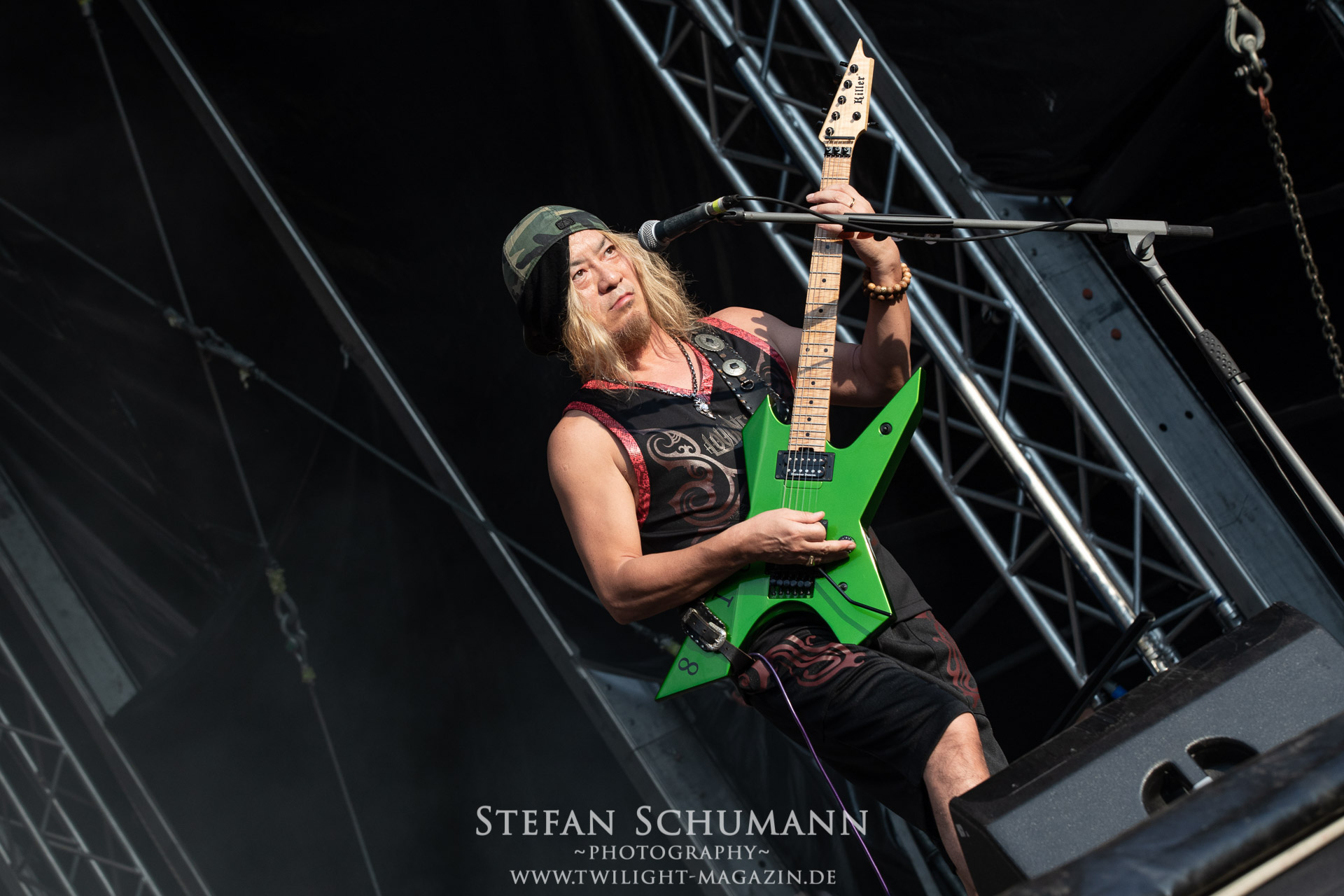 Am Mittwoch darf dann CREED- und ALTER BRIDGE-Gitarrist Mark Tremonti mit seiner Solo-Band TREMONTI, nach einigem Hickhack im Vorfeld über Zu- und wieder Absagen, den Opener für RAGE spielen. Zum Glück geht es dabei musikalisch um einiges thrashiger zur Sache als bei seinen Hauptbands. Peavy Wagner und seine beiden Kollegen sorgen dann für Jugenderinnerungen mit zahlreichen alten Songs wie „End of All Days“ und „Higher Than The Sky“, bei dem auch die „Holy Diver“-Einlage begeistert vom Publikum mitgesungen wird. Im Anschluss dürfen die Japaner LOUDNESS dann nach ihrem im letzten Jahr vom Sturm verhinderten Auftritt dieses Jahr noch einmal ran. Die seit den Achtzigern existierende Band ist der Exot im diesjährigen Lineup, kann aber die Fangemeinde mit ihrem Old-School-Heavy-Metal schnell auf ihre Seite ziehen.