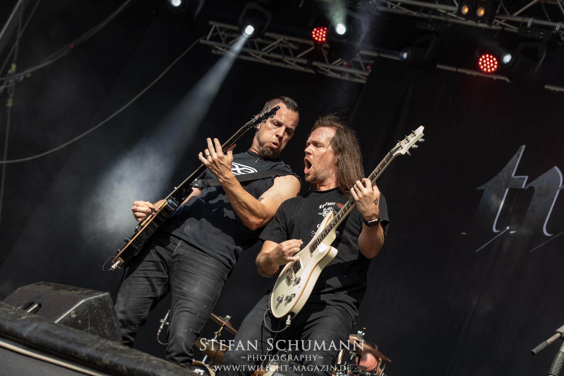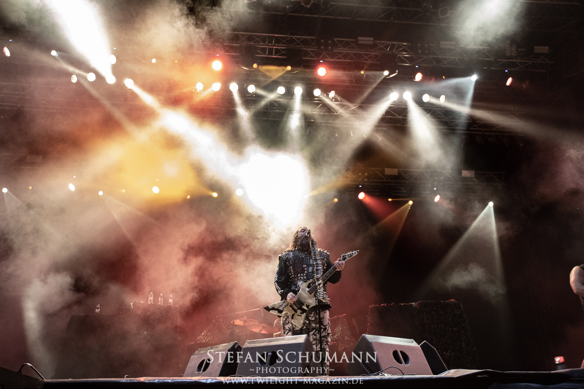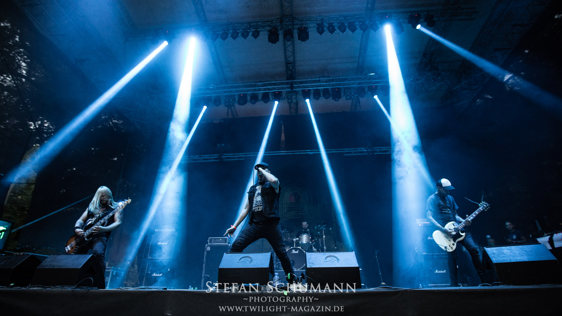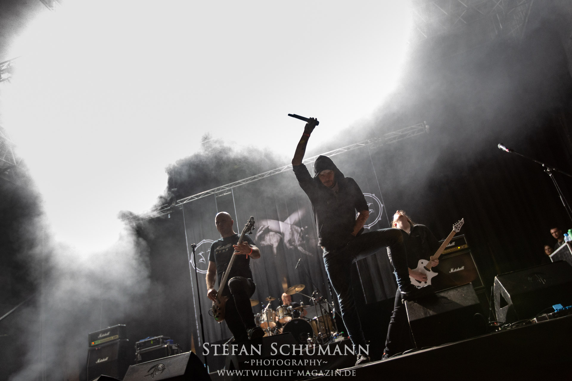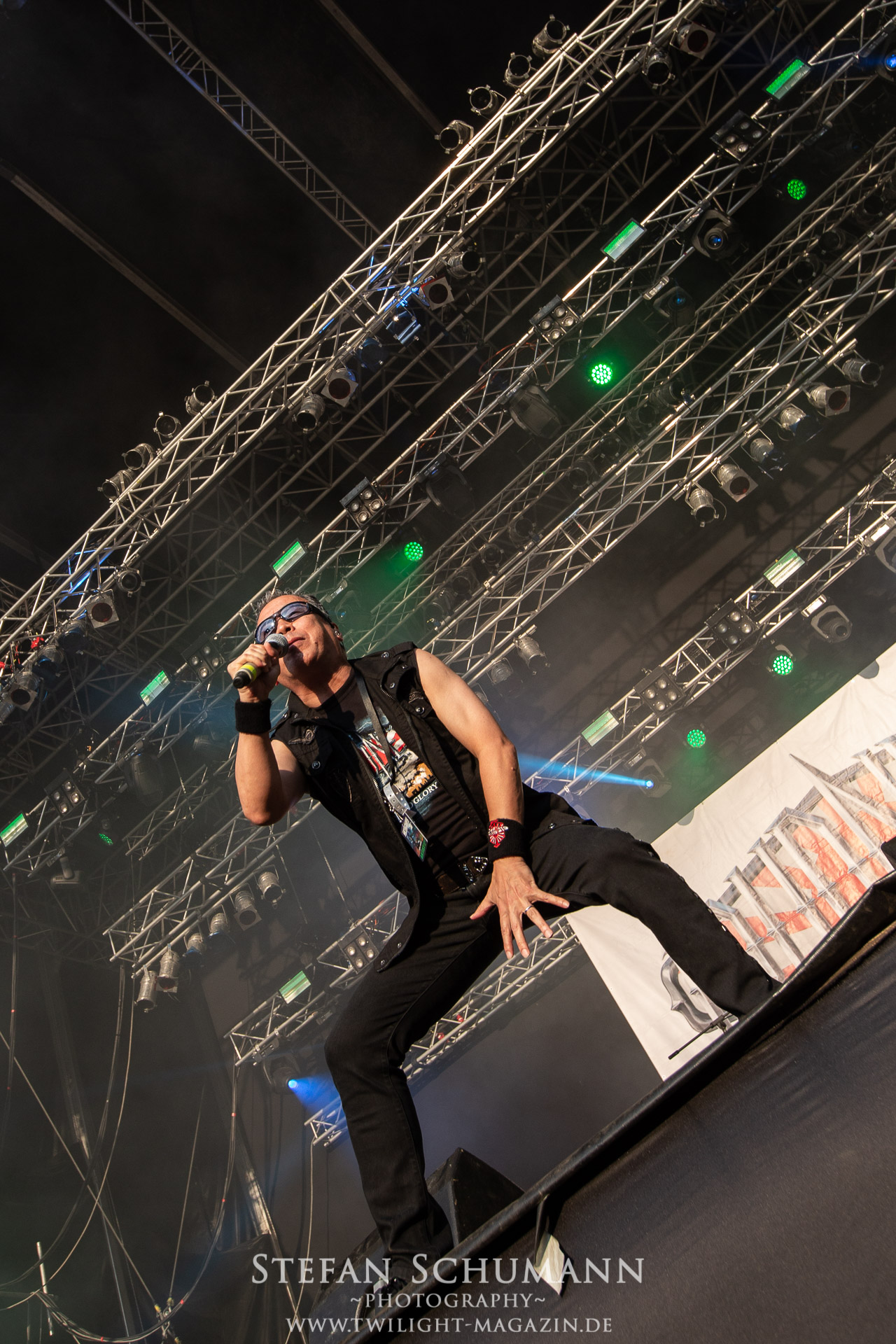 Am Mittwoch darf dann CREED- und ALTER BRIDGE-Gitarrist Mark Tremonti mit seiner Solo-Band TREMONTI, nach einigem Hickhack im Vorfeld über Zu- und wieder Absagen, den Opener für RAGE spielen. Zum Glück geht es dabei musikalisch um einiges thrashiger zur Sache als bei seinen Hauptbands. Peavy Wagner und seine beiden Kollegen sorgen dann für Jugenderinnerungen mit zahlreichen alten Songs wie „End of All Days“ und „Higher Than The Sky“, bei dem auch die „Holy Diver“-Einlage begeistert vom Publikum mitgesungen wird. Im Anschluss dürfen die Japaner LOUDNESS dann nach ihrem im letzten Jahr vom Sturm verhinderten Auftritt dieses Jahr noch einmal ran. Die seit den Achtzigern existierende Band ist der Exot im diesjährigen Lineup, kann aber die Fangemeinde mit ihrem Old-School-Heavy-Metal schnell auf ihre Seite ziehen.