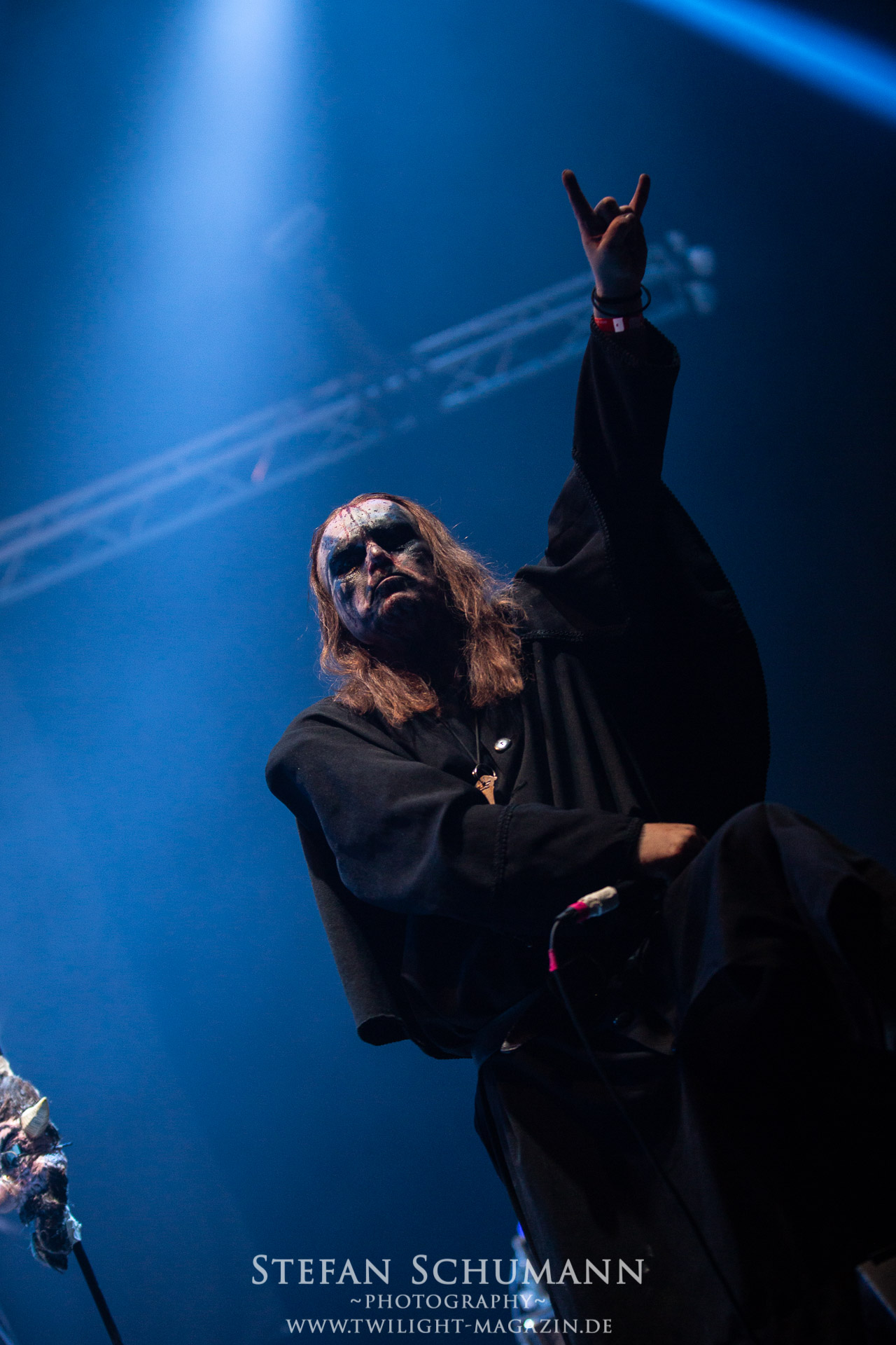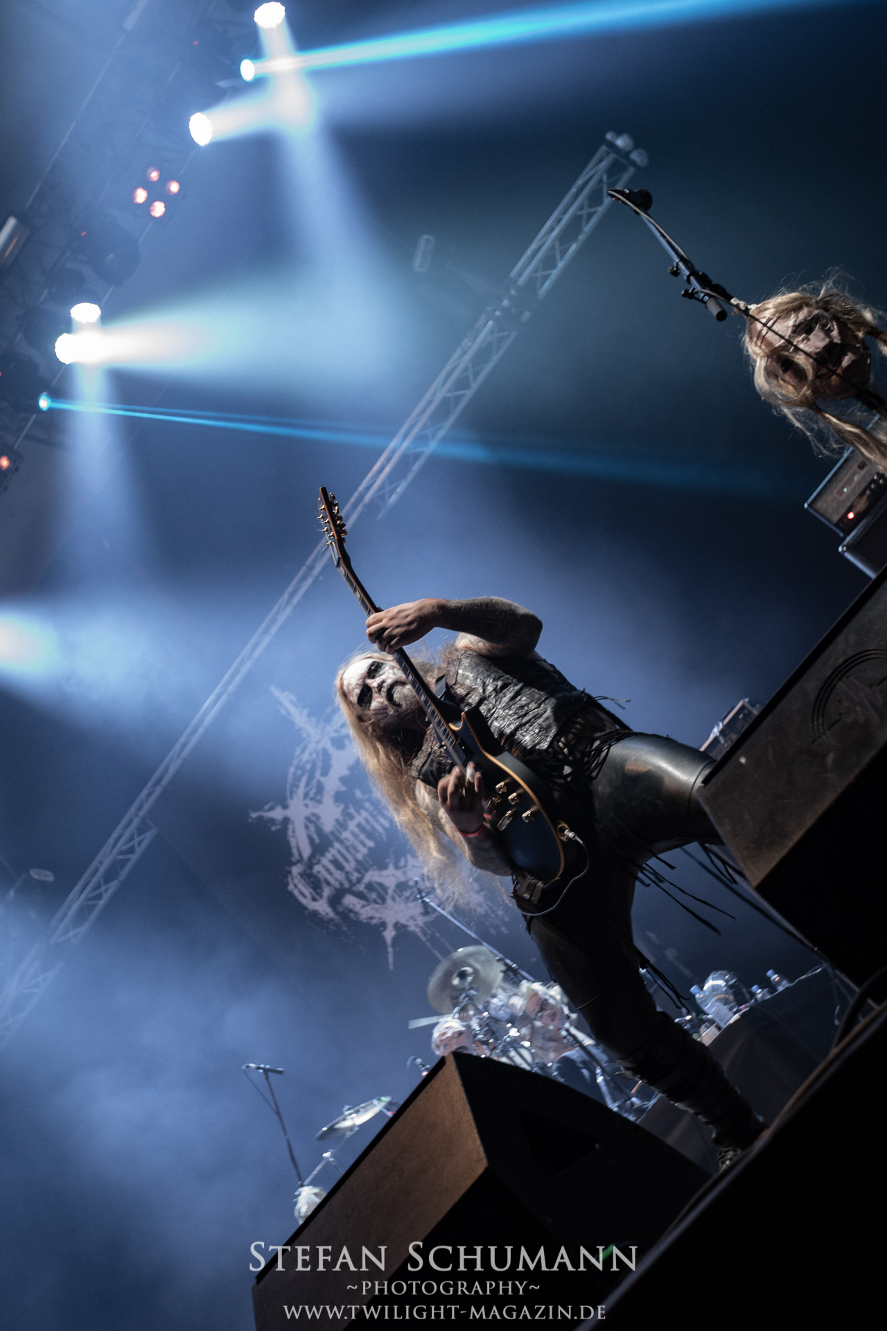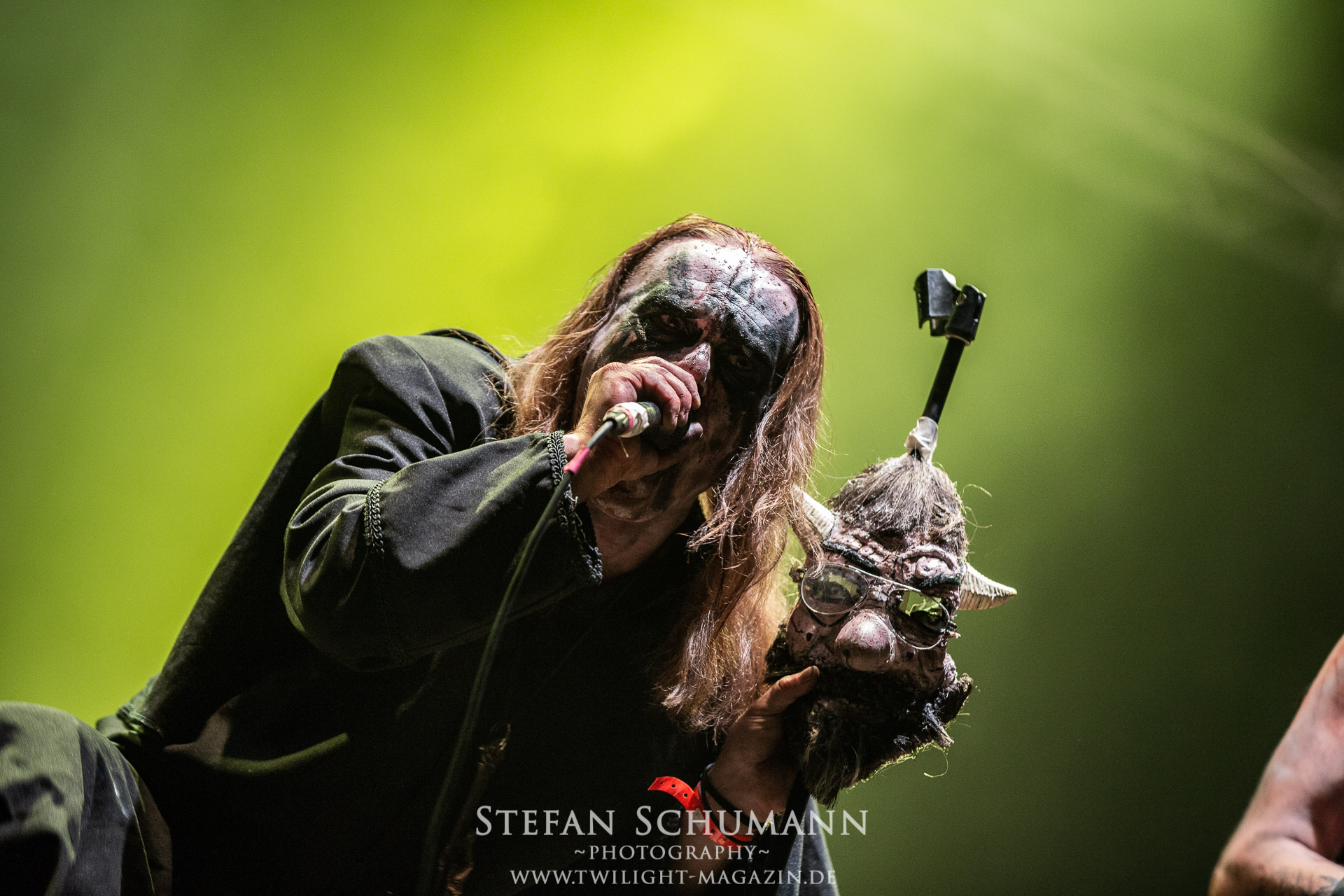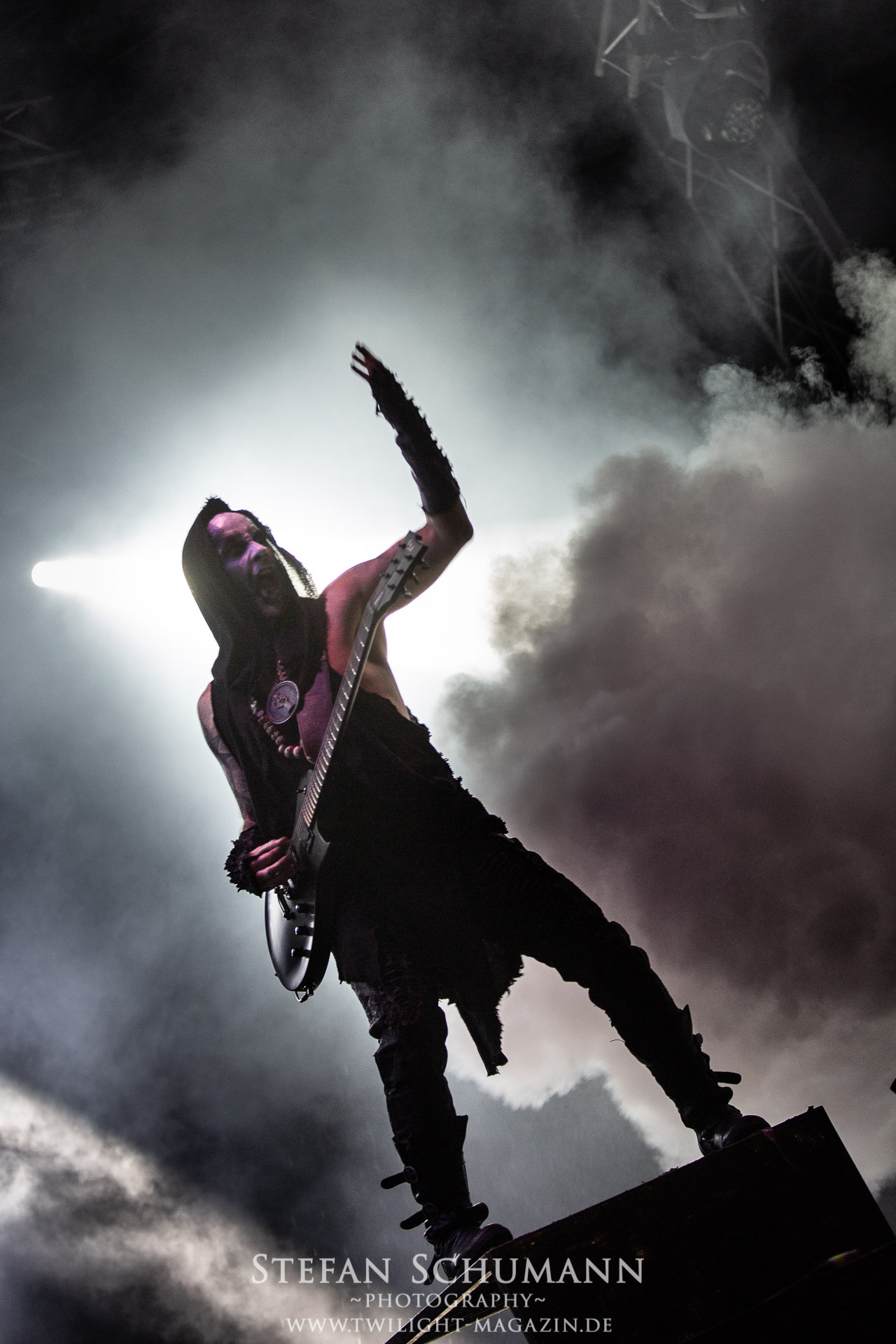 Nicht weniger melodiös geht es bei ELUVEITIE zu, bei der man sich erst an die vielen neuen Gesichter auf der Bühne gewöhnen muss, da Frontmann Chriegel vor einiger Zeit quasi die komplette Backing-Band ausgetauscht hat. Aber auch die „Neuen“ haben die Songs natürlich drauf und sorgen mit Flöte und Geige für ordentlich Betrieb auf den Brettern. Als Kontrastpunkt speien parallel dazu CARPATHIAN FOREST ihren Hass auf der zweiten Bühne in die Welt. Obwohl die Norweger seit über zehn Jahren kein reguläres Album mehr heraus gebracht haben, ziehen sie mit ihren Klassikern das Publikum in ihren Bann. Auflockerung vom Black-Metal-Geballer gibt es mit zwei Cover-Versionen von THE CURE und TURBONEGRO – natürlich im ganz eigenen CF-Gewand.