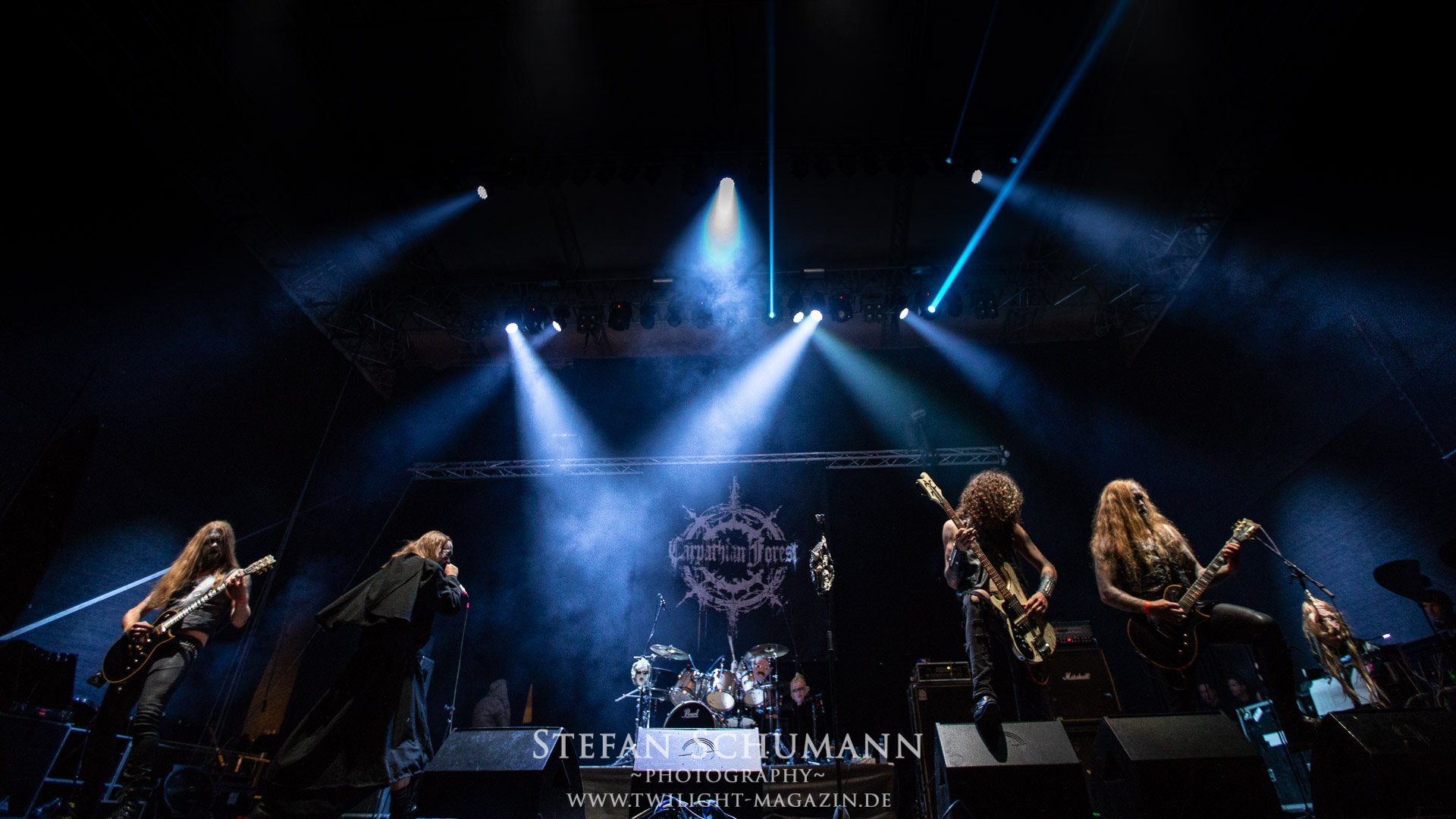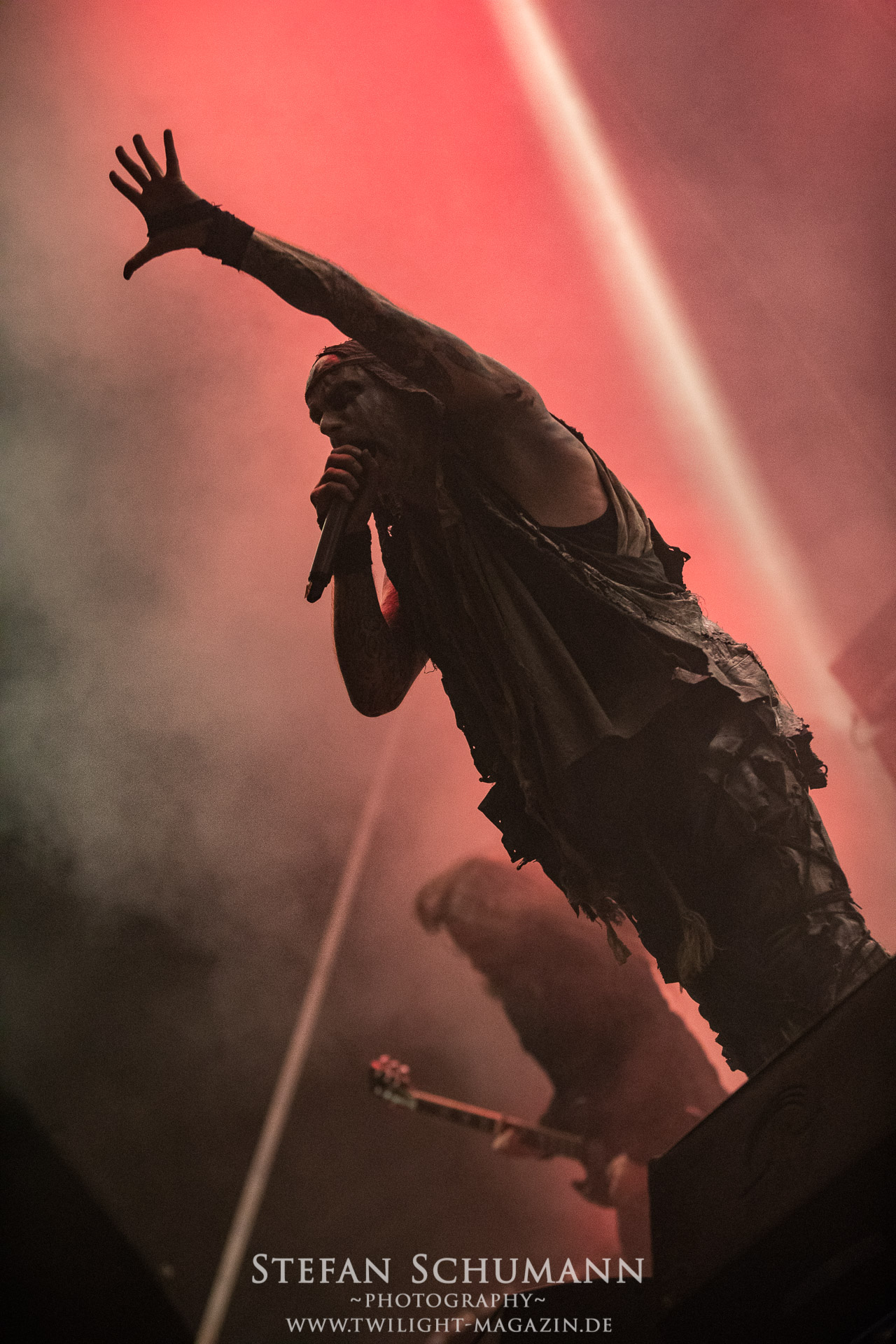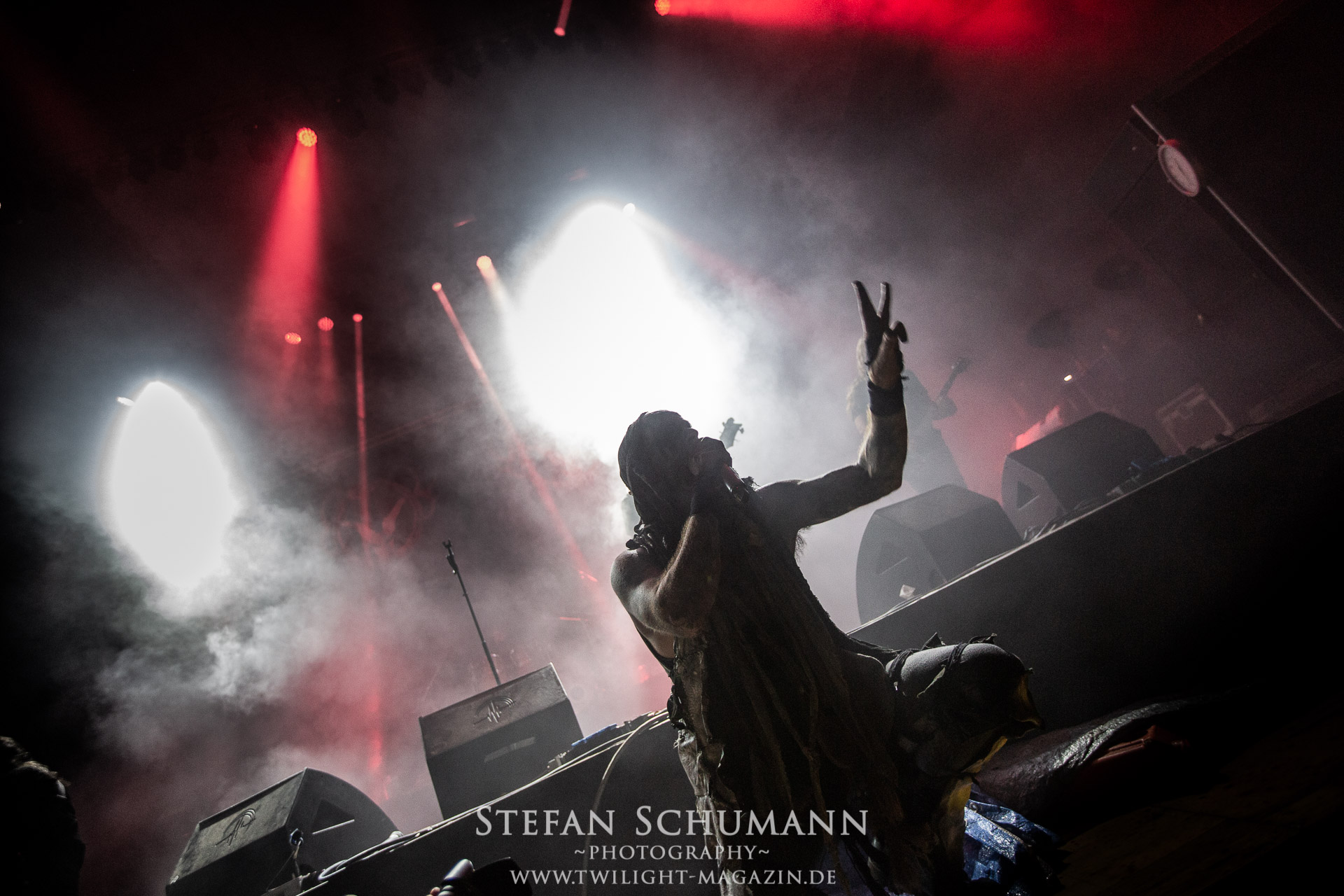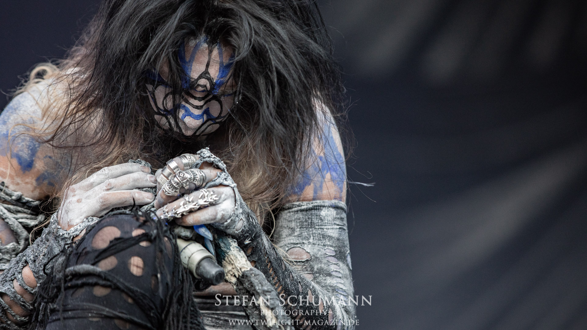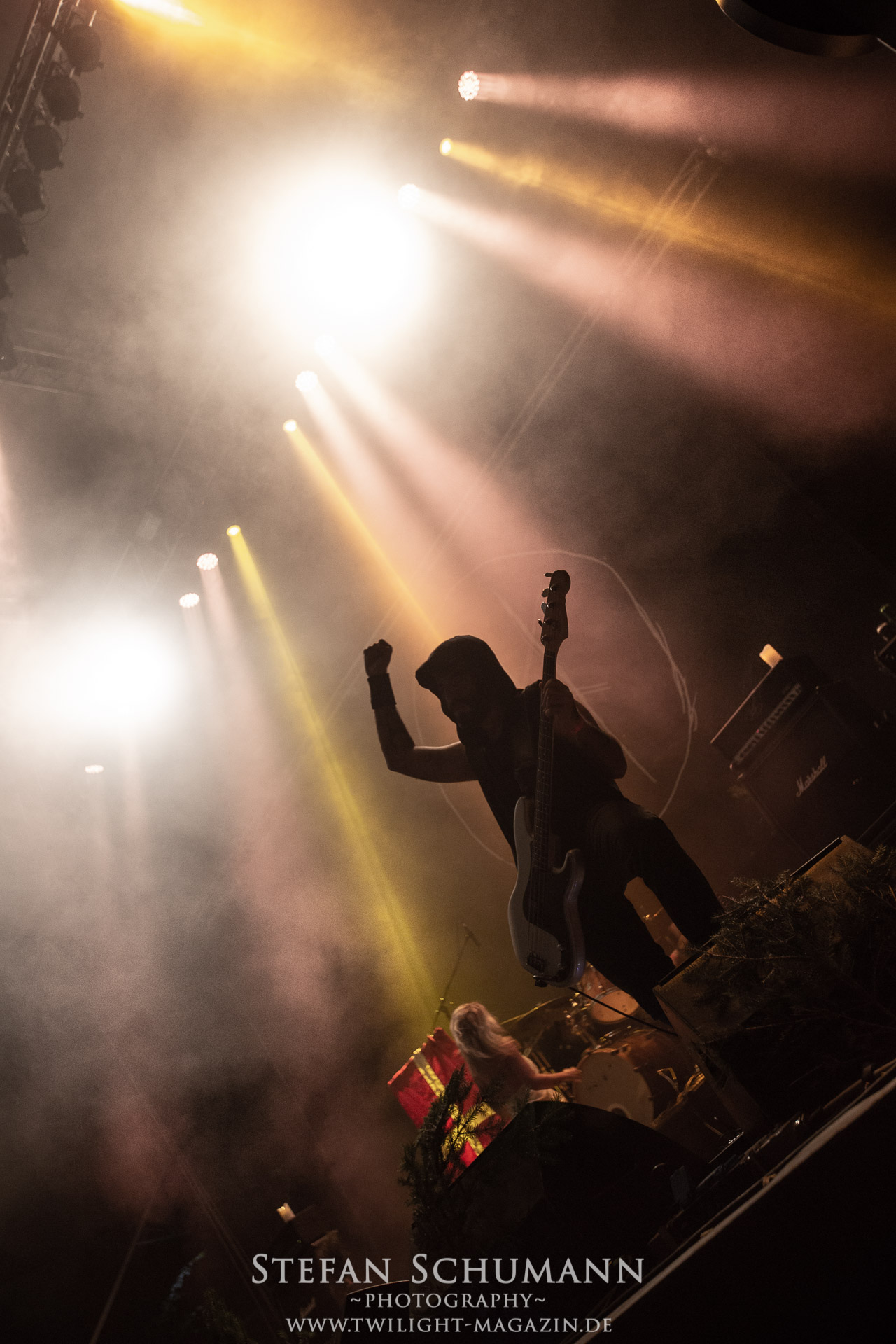 Nicht weniger melodiös geht es bei ELUVEITIE zu, bei der man sich erst an die vielen neuen Gesichter auf der Bühne gewöhnen muss, da Frontmann Chriegel vor einiger Zeit quasi die komplette Backing-Band ausgetauscht hat. Aber auch die „Neuen“ haben die Songs natürlich drauf und sorgen mit Flöte und Geige für ordentlich Betrieb auf den Brettern. Als Kontrastpunkt speien parallel dazu CARPATHIAN FOREST ihren Hass auf der zweiten Bühne in die Welt. Obwohl die Norweger seit über zehn Jahren kein reguläres Album mehr heraus gebracht haben, ziehen sie mit ihren Klassikern das Publikum in ihren Bann. Auflockerung vom Black-Metal-Geballer gibt es mit zwei Cover-Versionen von THE CURE und TURBONEGRO – natürlich im ganz eigenen CF-Gewand.