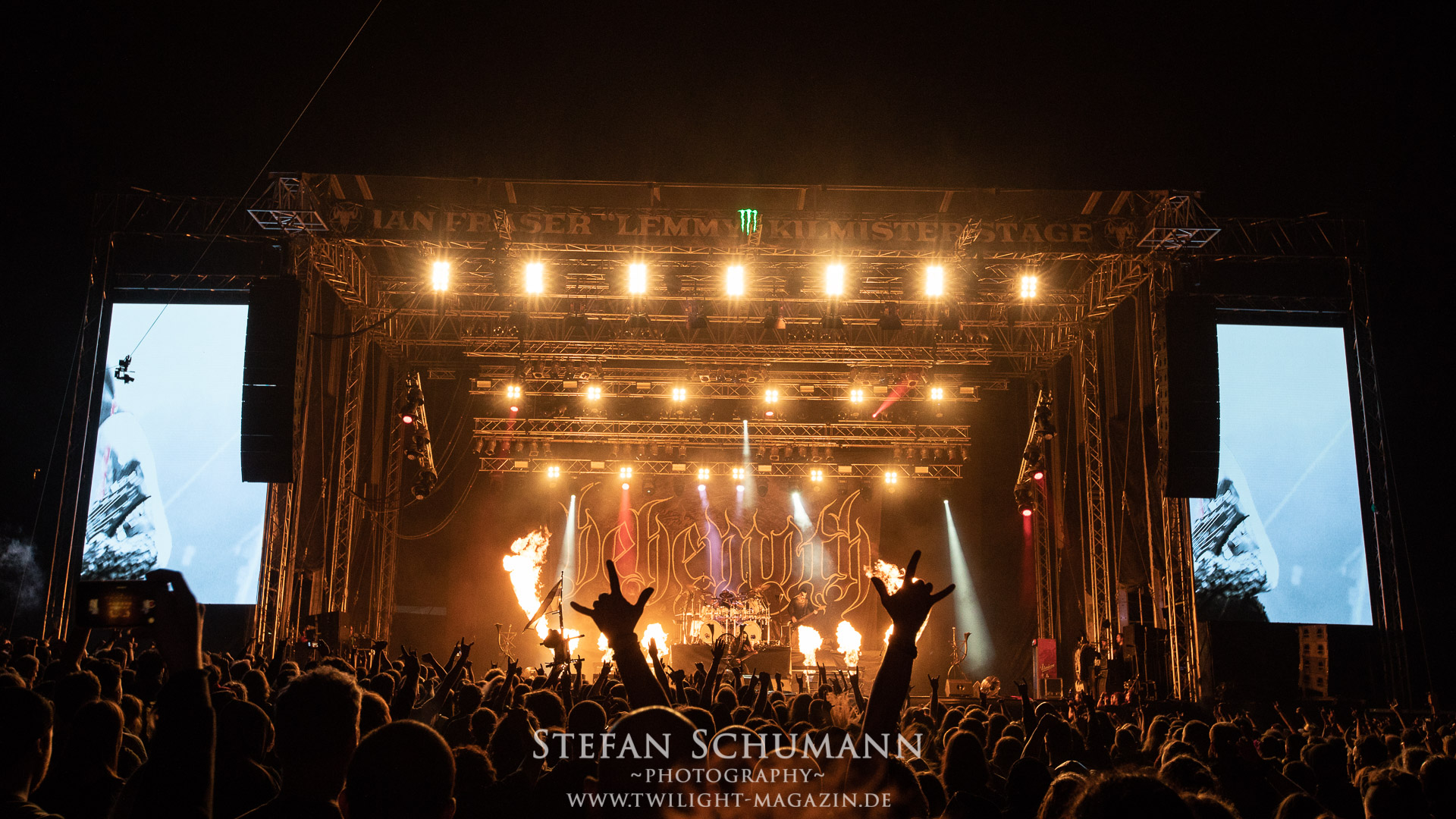 Der absolute Headliner des ersten Abends sind jedoch ohne Wenn und Aber BEHEMOTH. Die einzigartige Mischung aus Black- und Death Metal mit auf den Punkt gebrachten, absolut druckvollen Blastbeats und der perfekt synchonisierten Bühnenschow mit Feuer, Nebel und Glitter-Konfetti zum Abschluss kommt in der lauen slowenischen Nacht beeindruckend zur Geltung. Im Gepäck haben Nergal und Konsorten mit „Wolves ov Siberia“ auch einen Song vom noch unveröffentlichten neuen Album „I loved you at your darkest“, das im Oktober erscheinen wird. Außerdem darf bei „A Forest“ (einem weiteren THE CURE-Cover am heutigen Tag) Niklas Kvarforth von SHINING den Gesangspart übernehmen, dessen Band eigentlich erst ein paar Tage später auftritt. Bleibt nur zu hoffen, dass der nicht unbedingt als zurückhaltend geltende Musiker nach drei Tagen Festival dazu auch noch in der Lage sein wird.Zum musikalischen Abschluss des gelungenen Abends tragen dann noch die NWOBHM-Urgesteine DIAMOND HEAD bei, denen nicht nur METALLICA schon des Öfteren Tribut gezollt haben, bevor sich die Party nach dem obligatorischen „Am I Evil?“ auf dem Zeltplatz fortsetzt.
