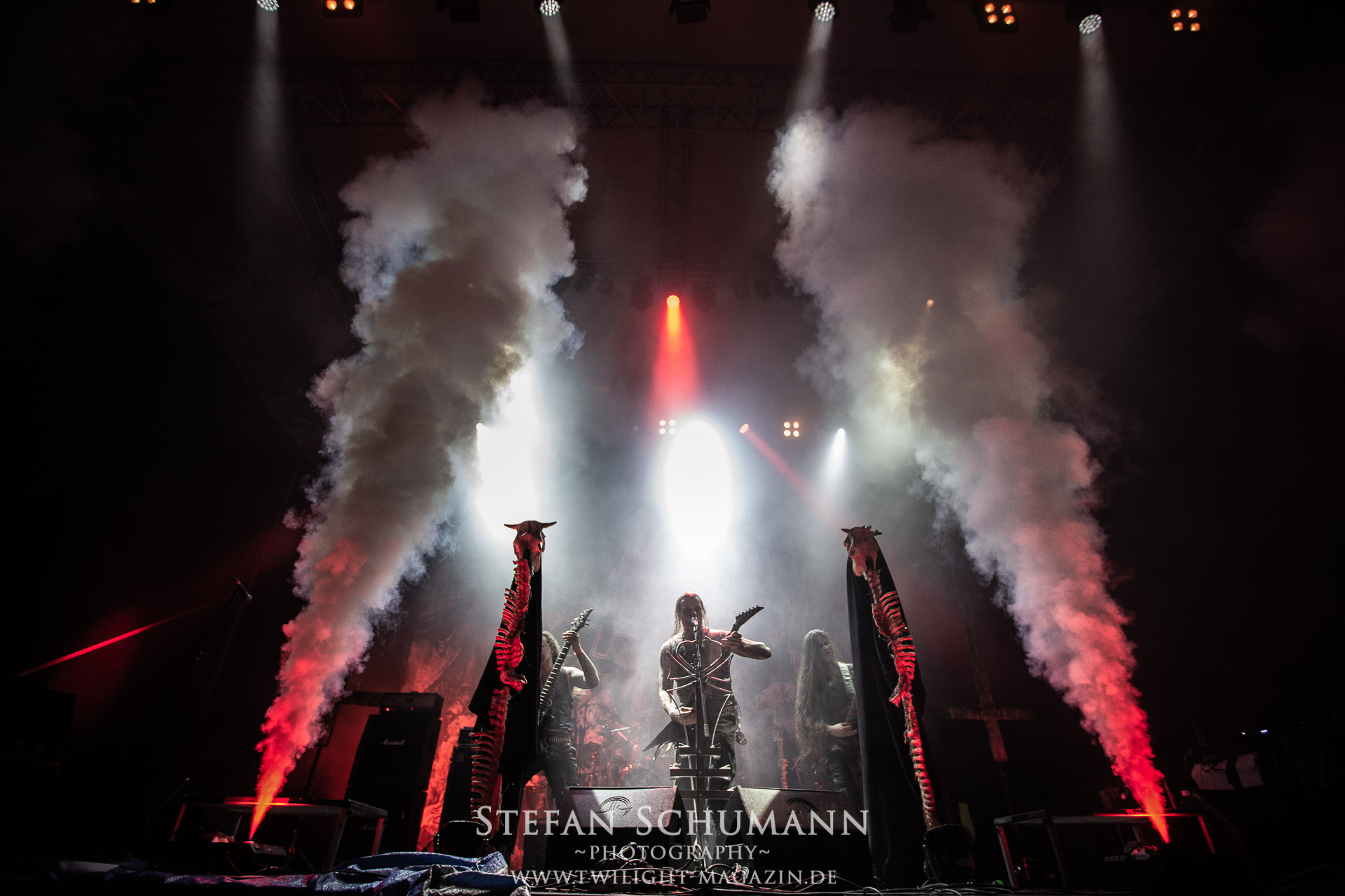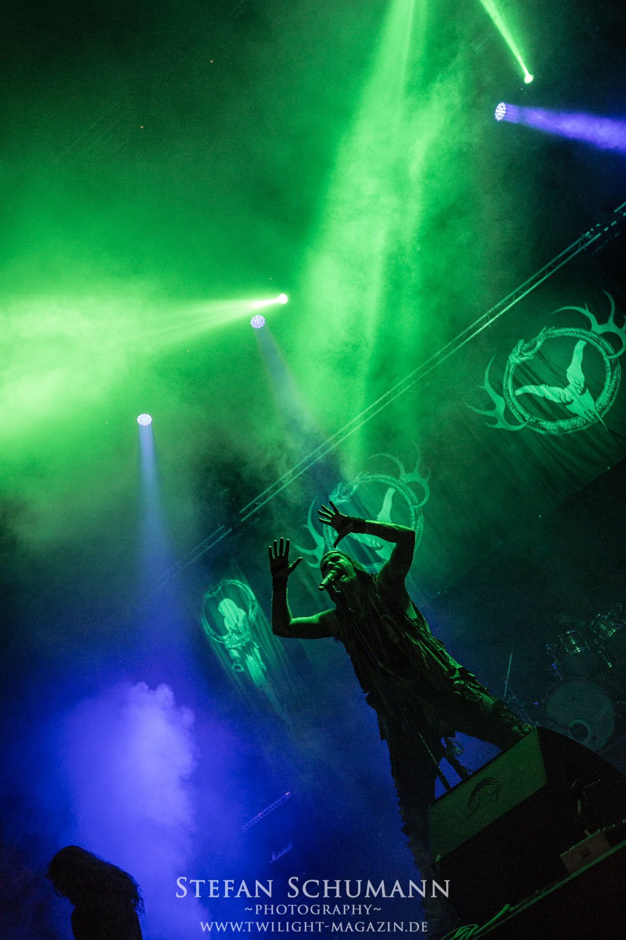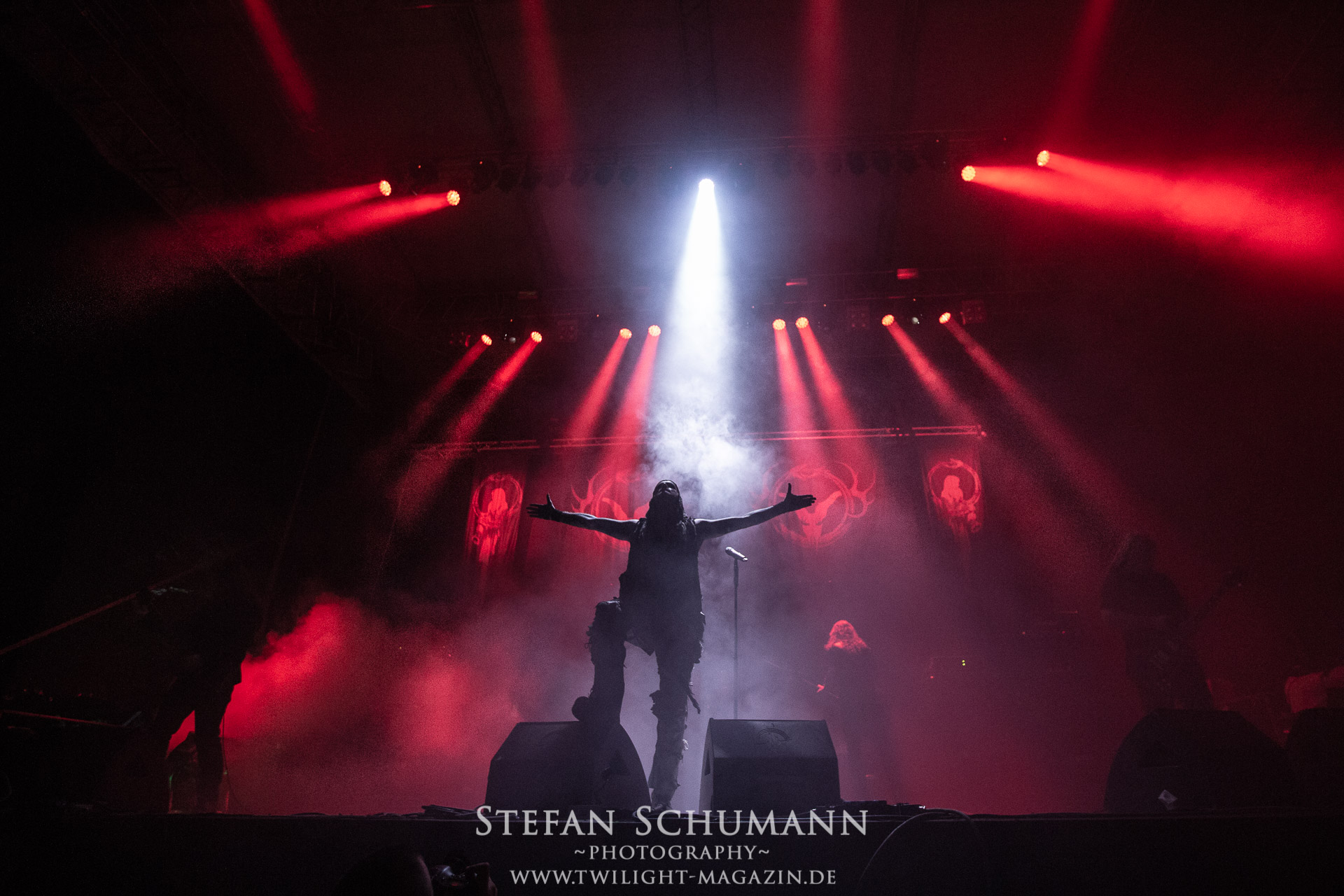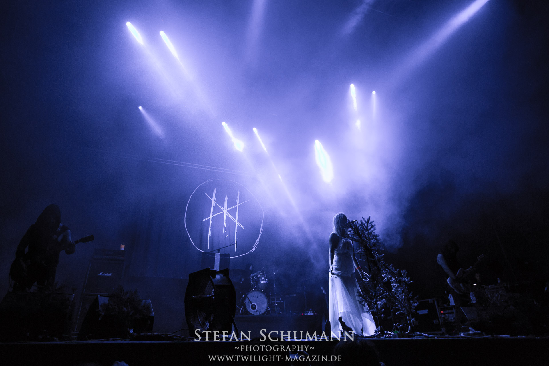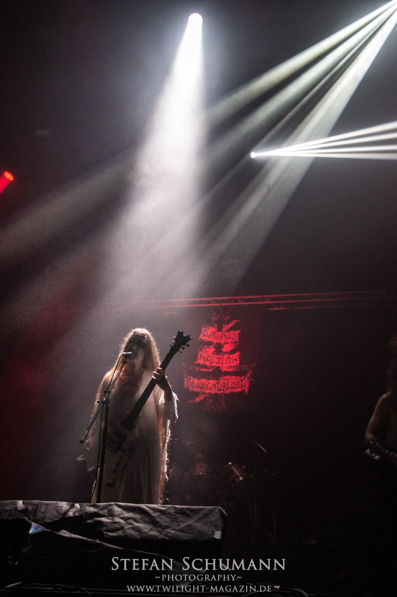 Im Anschluss zeigen DARKENED NOCTURN SLAUGHTERCULT blast-beat dominierten Black Metal der traditionelleren Sorte, wenn da nicht alle Scheinwerfer auf Frontfrau Onielar gerichtet wären, die mit ihrem Auftritt und gutturalen Gesang fast überirdisch erscheint.
