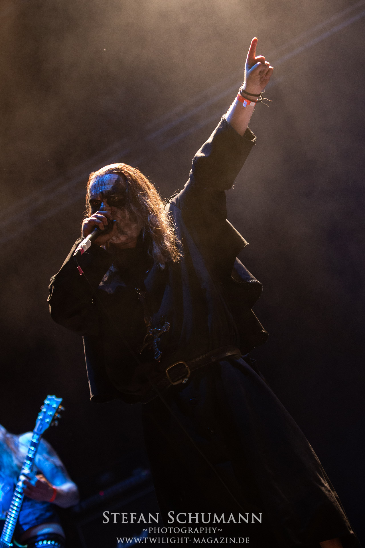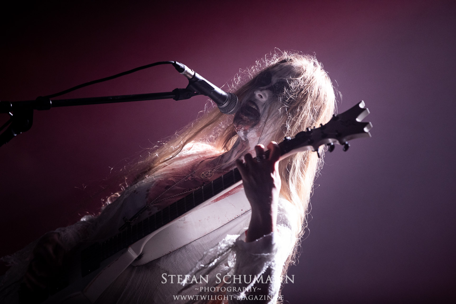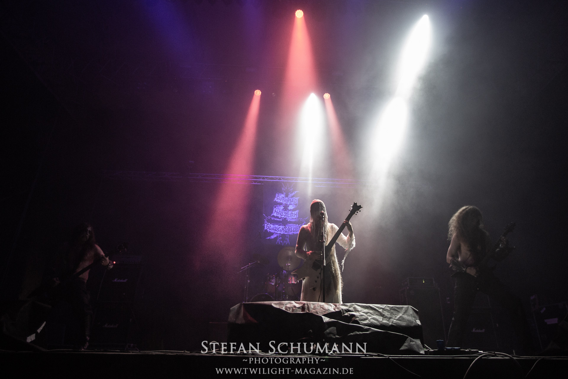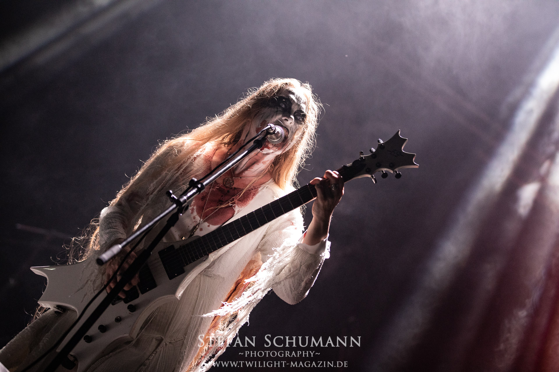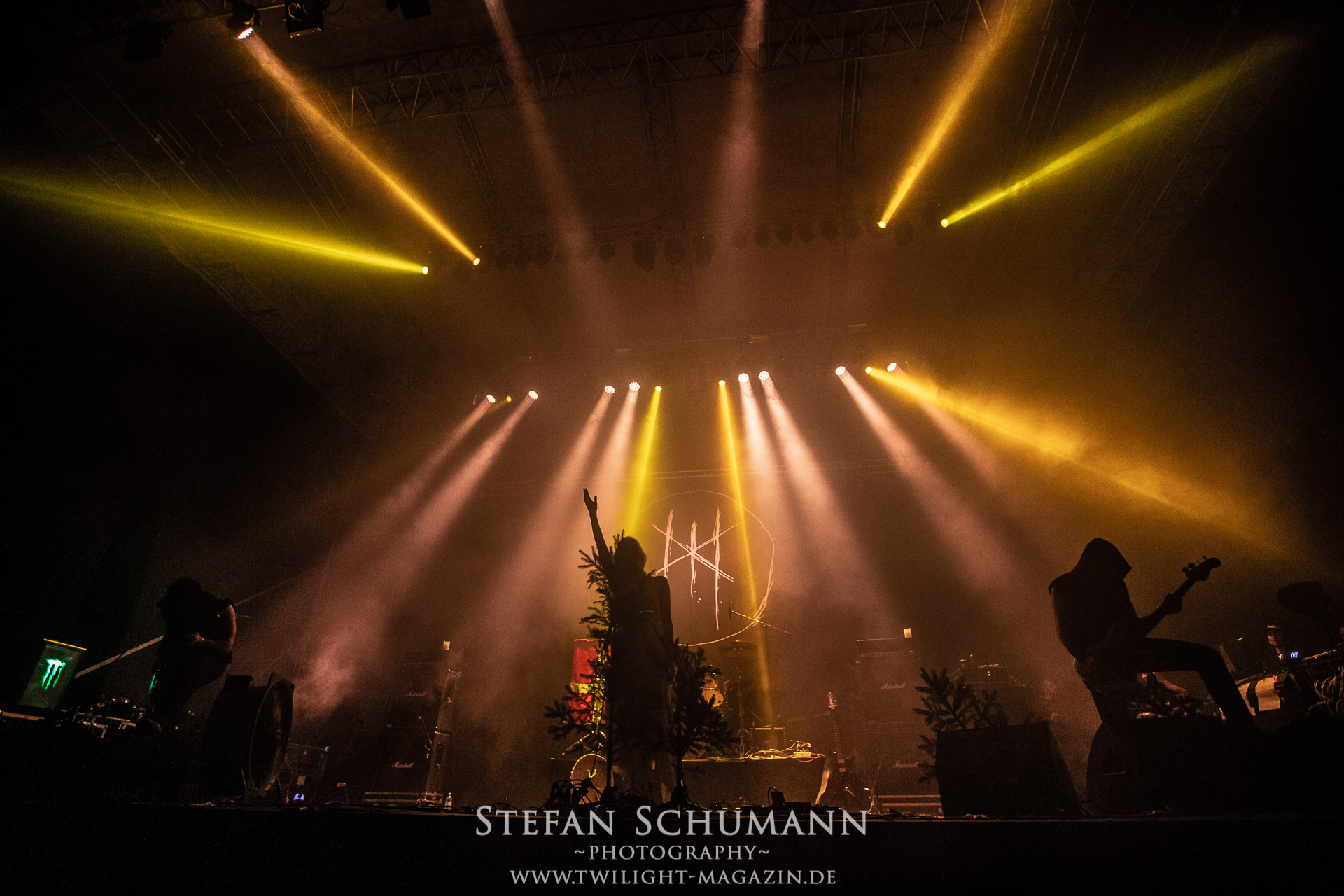 Im Anschluss zeigen DARKENED NOCTURN SLAUGHTERCULT blast-beat dominierten Black Metal der traditionelleren Sorte, wenn da nicht alle Scheinwerfer auf Frontfrau Onielar gerichtet wären, die mit ihrem Auftritt und gutturalen Gesang fast überirdisch erscheint.