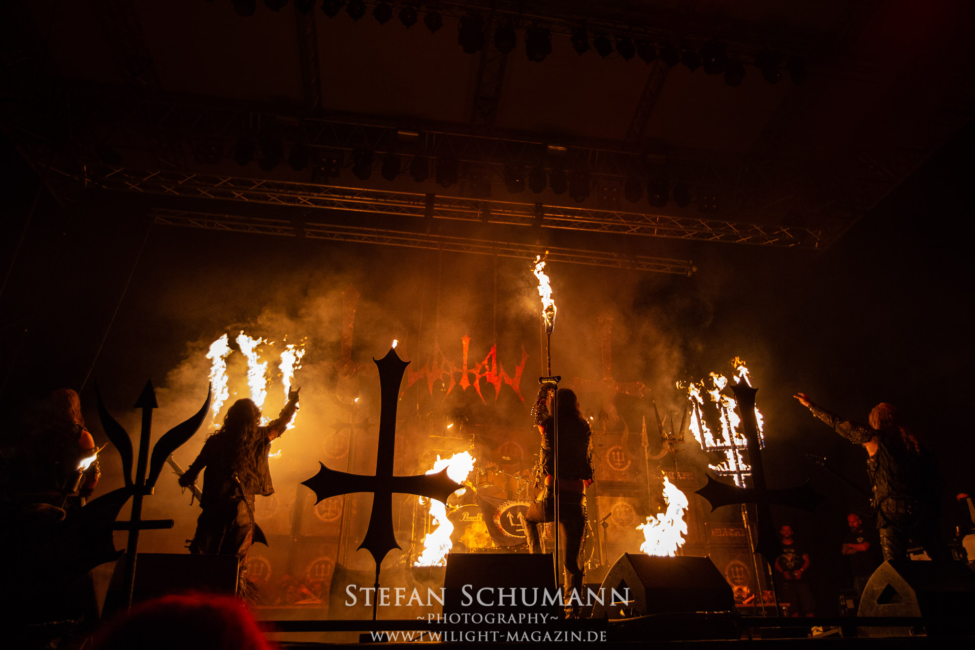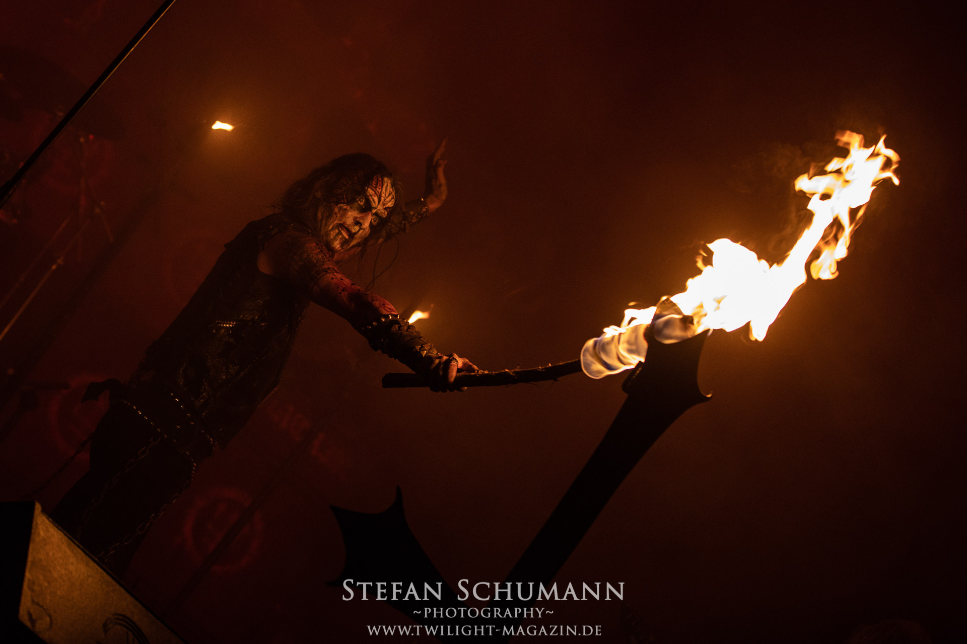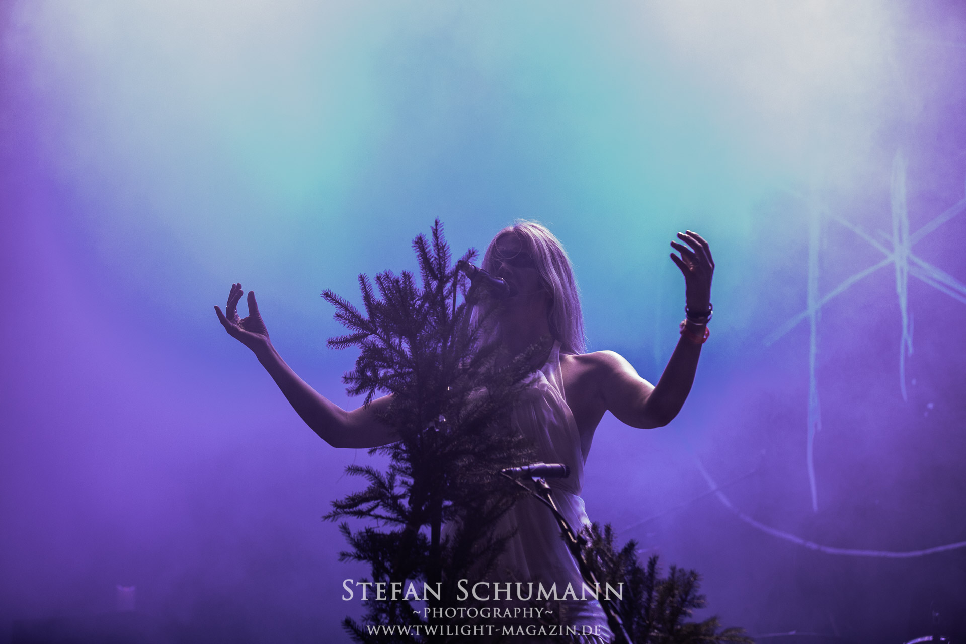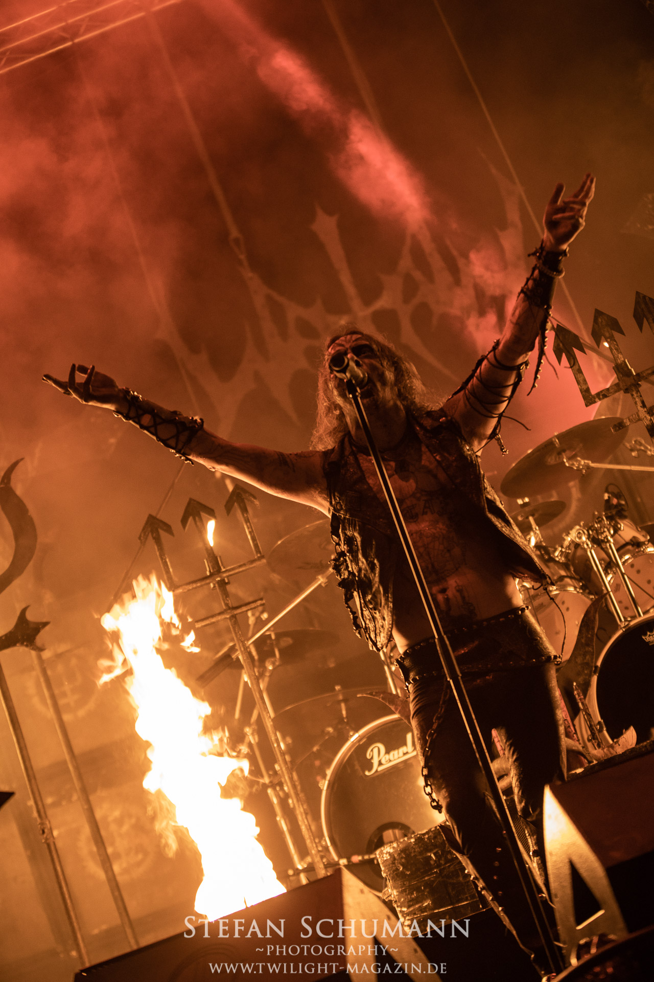Im Anschluss zeigen DARKENED NOCTURN SLAUGHTERCULT blast-beat dominierten Black Metal der traditionelleren Sorte, wenn da nicht alle Scheinwerfer auf Frontfrau Onielar gerichtet wären, die mit ihrem Auftritt und gutturalen Gesang fast überirdisch erscheint.