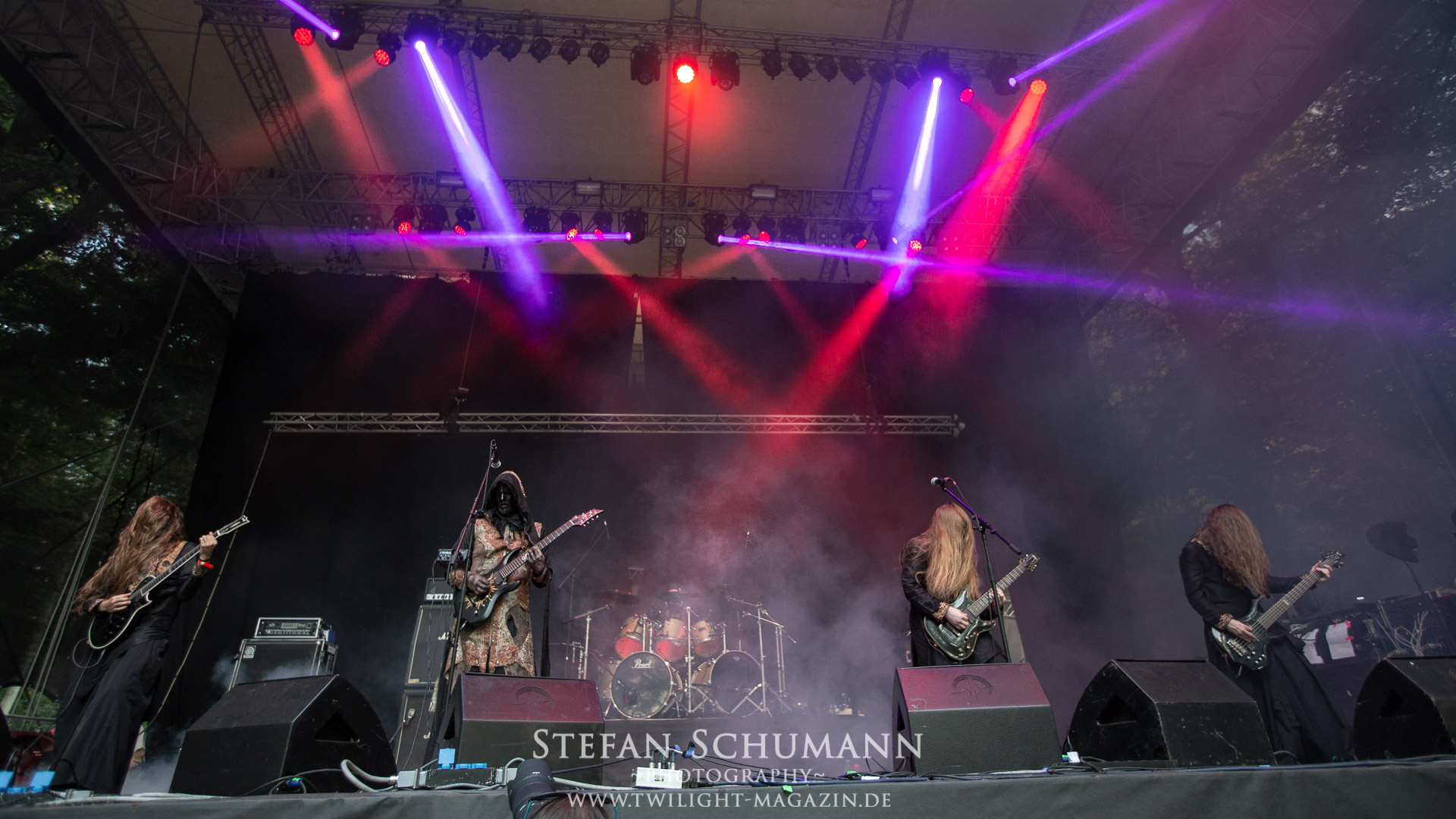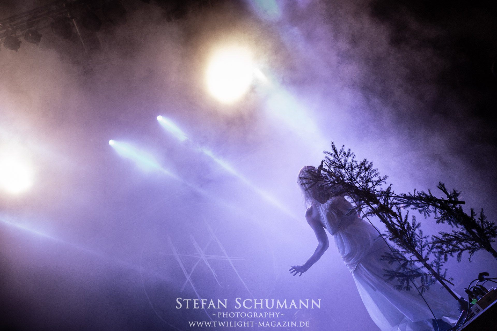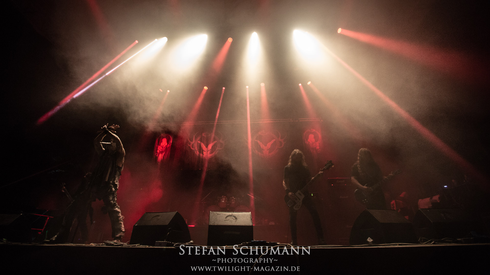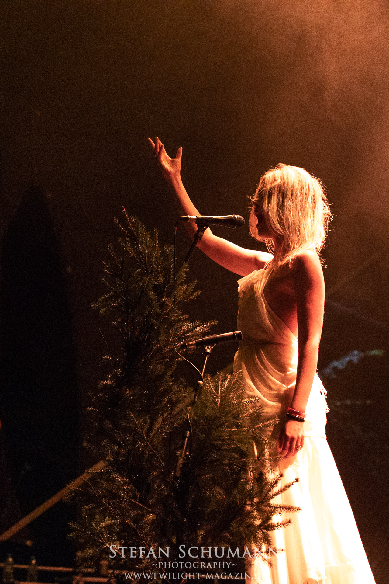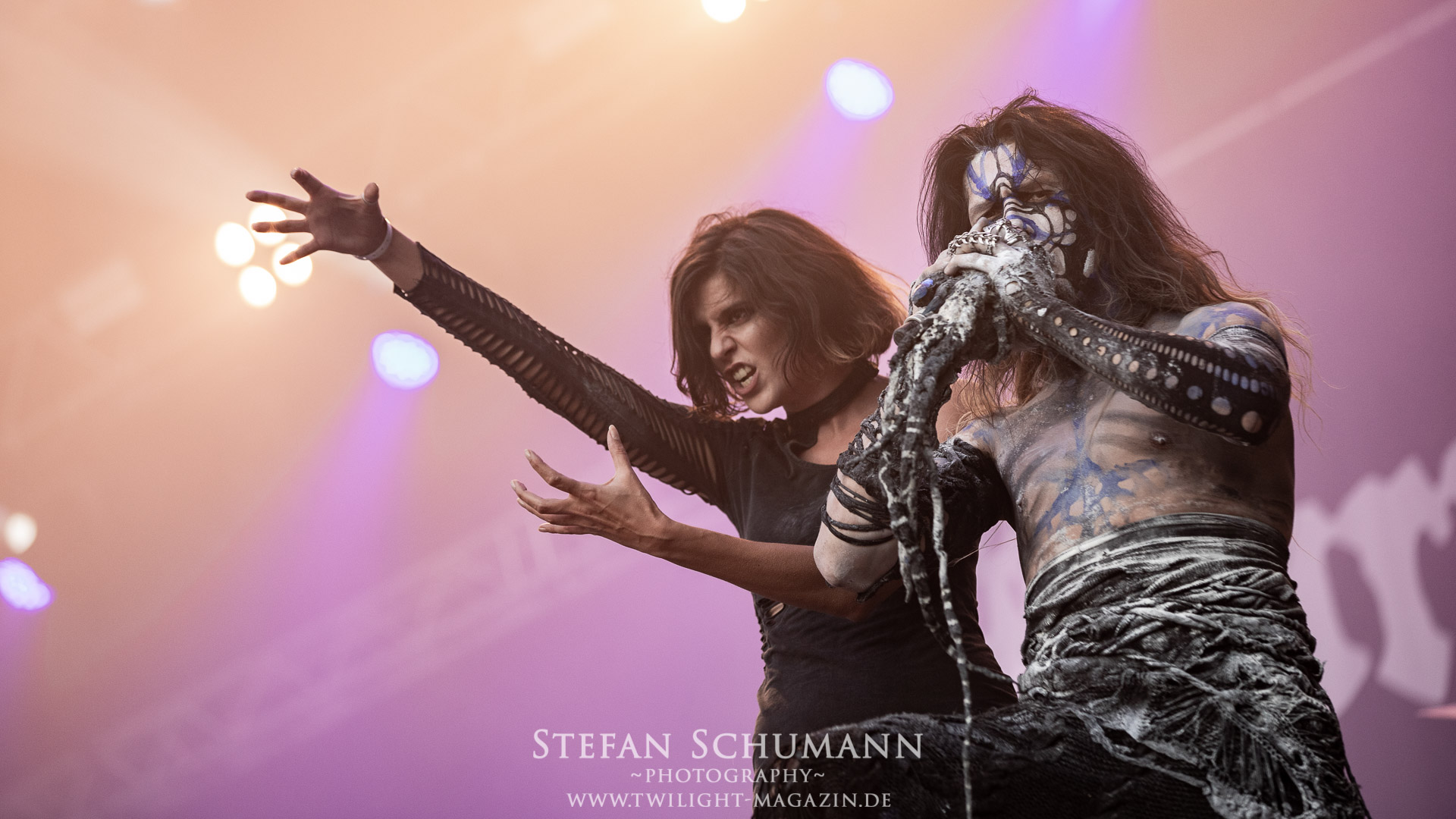Im Anschluss zeigen DARKENED NOCTURN SLAUGHTERCULT blast-beat dominierten Black Metal der traditionelleren Sorte, wenn da nicht alle Scheinwerfer auf Frontfrau Onielar gerichtet wären, die mit ihrem Auftritt und gutturalen Gesang fast überirdisch erscheint.