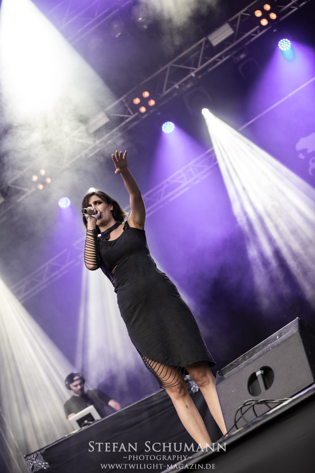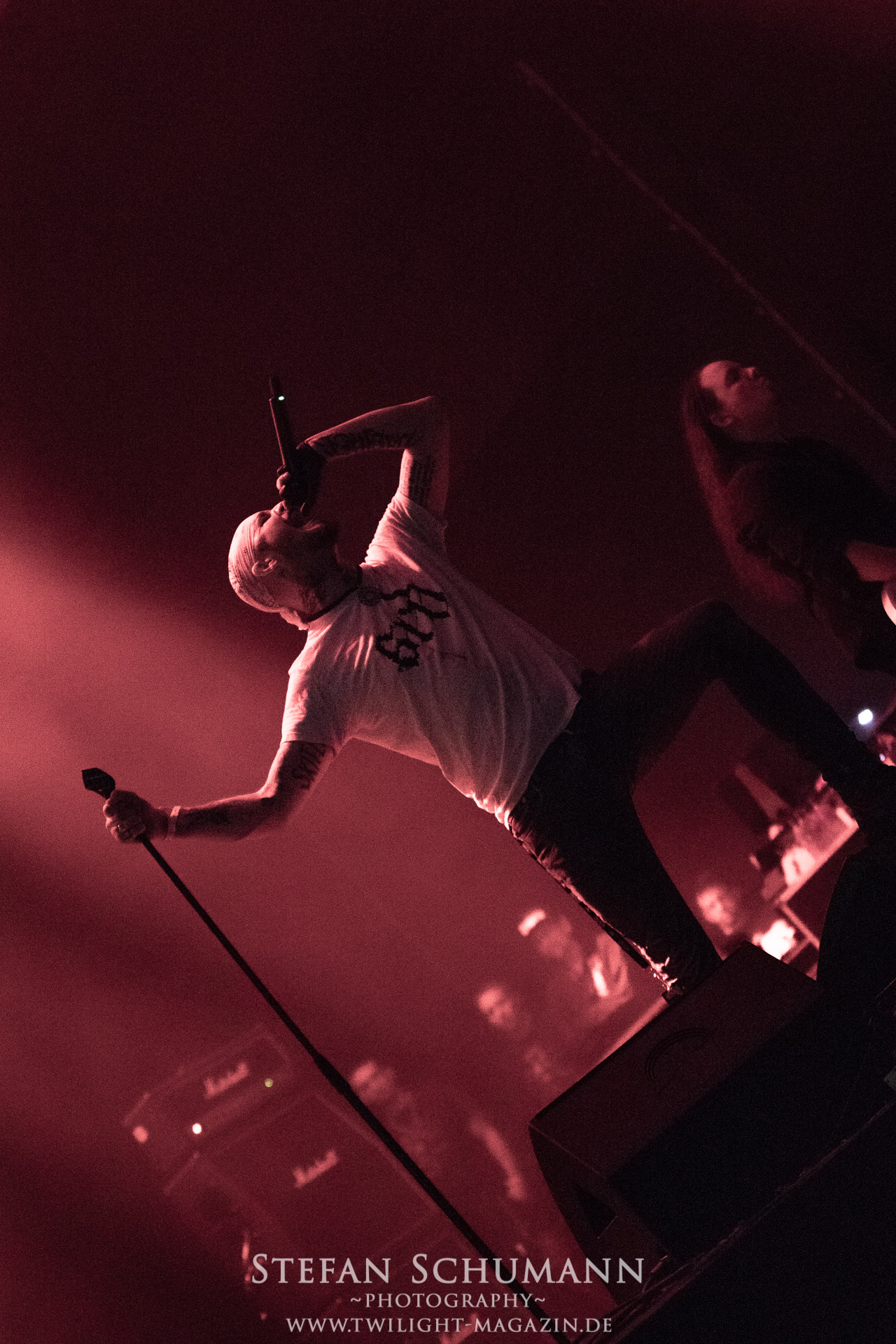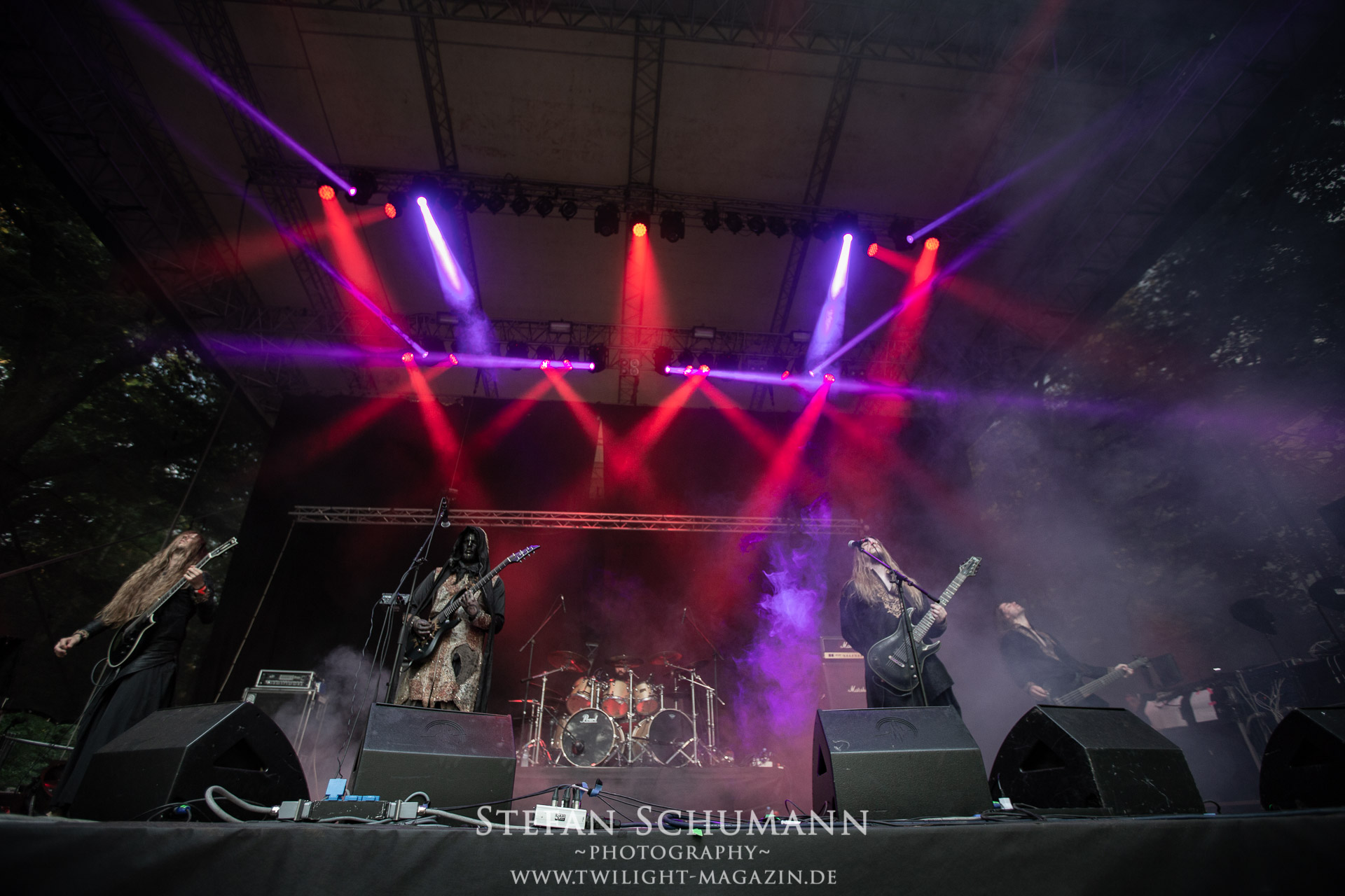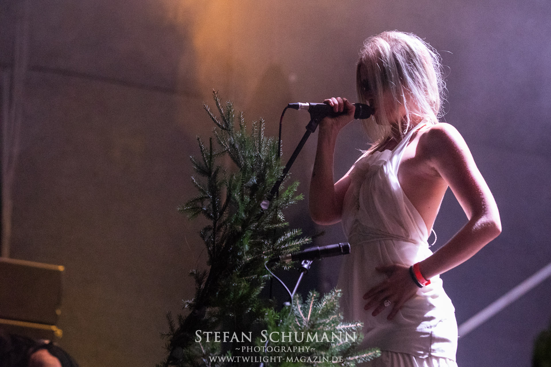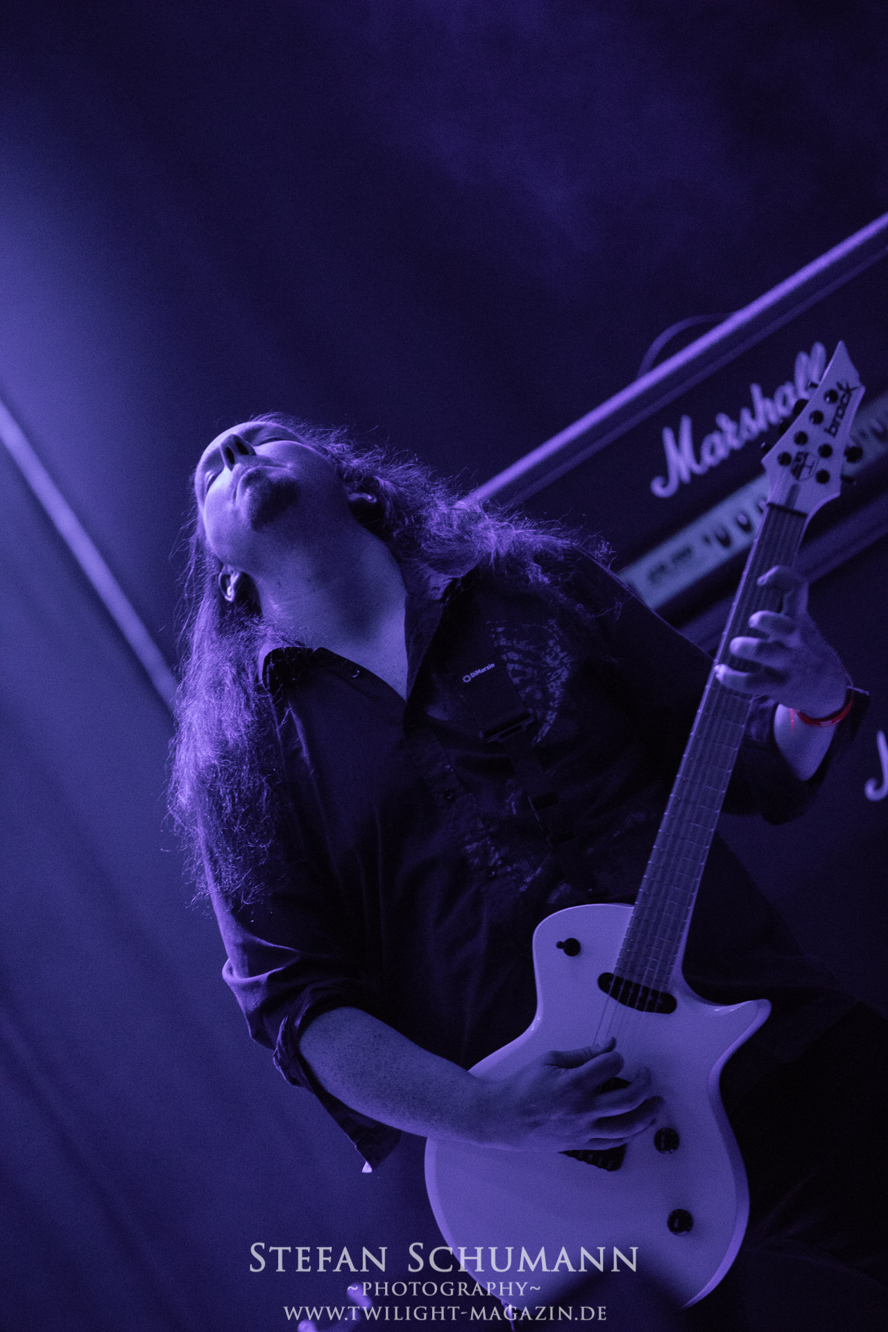Im Anschluss zeigen DARKENED NOCTURN SLAUGHTERCULT blast-beat dominierten Black Metal der traditionelleren Sorte, wenn da nicht alle Scheinwerfer auf Frontfrau Onielar gerichtet wären, die mit ihrem Auftritt und gutturalen Gesang fast überirdisch erscheint.