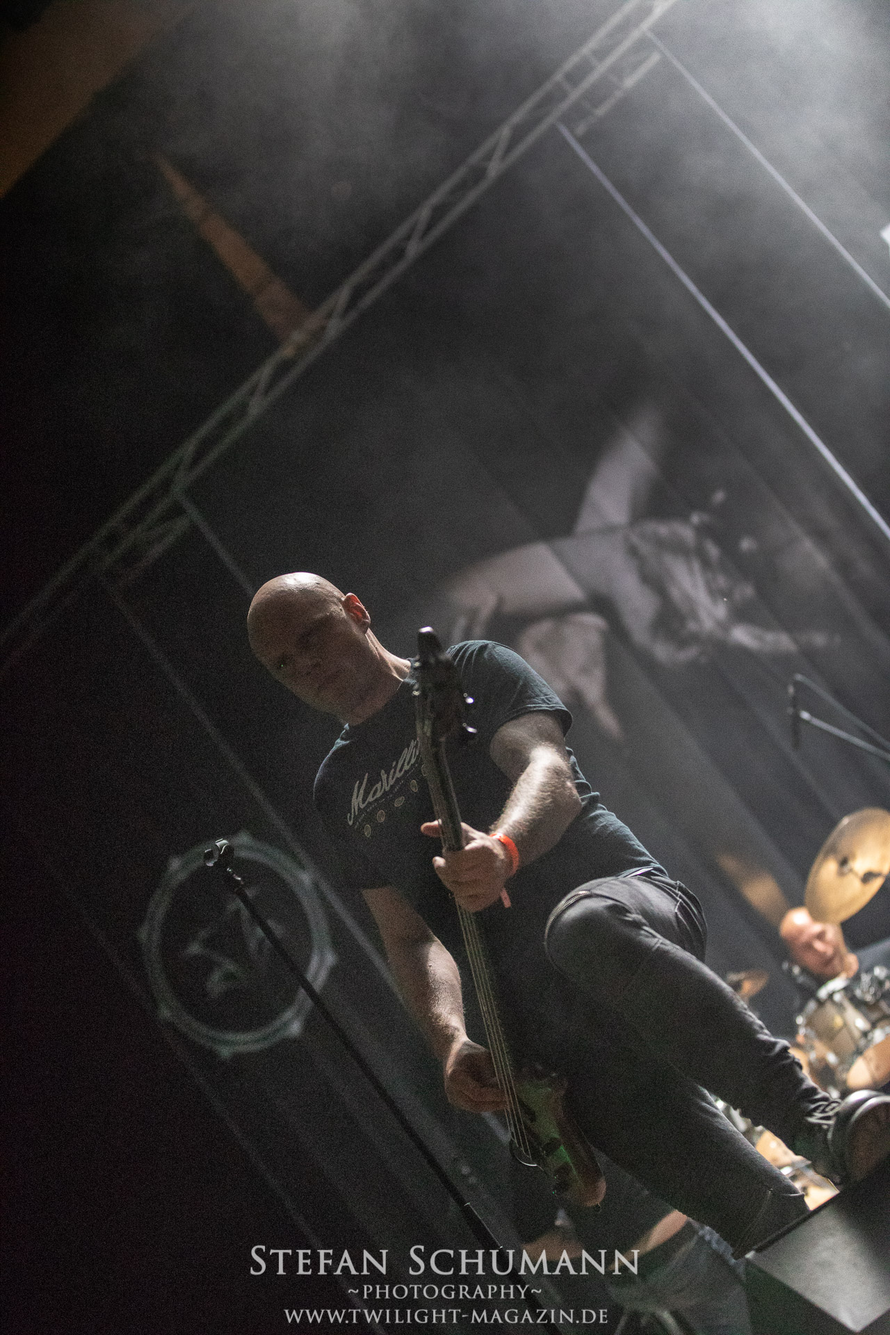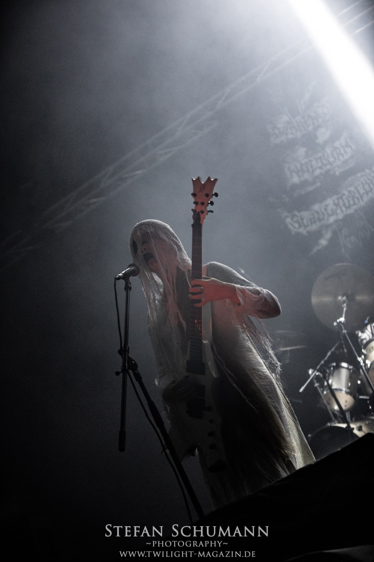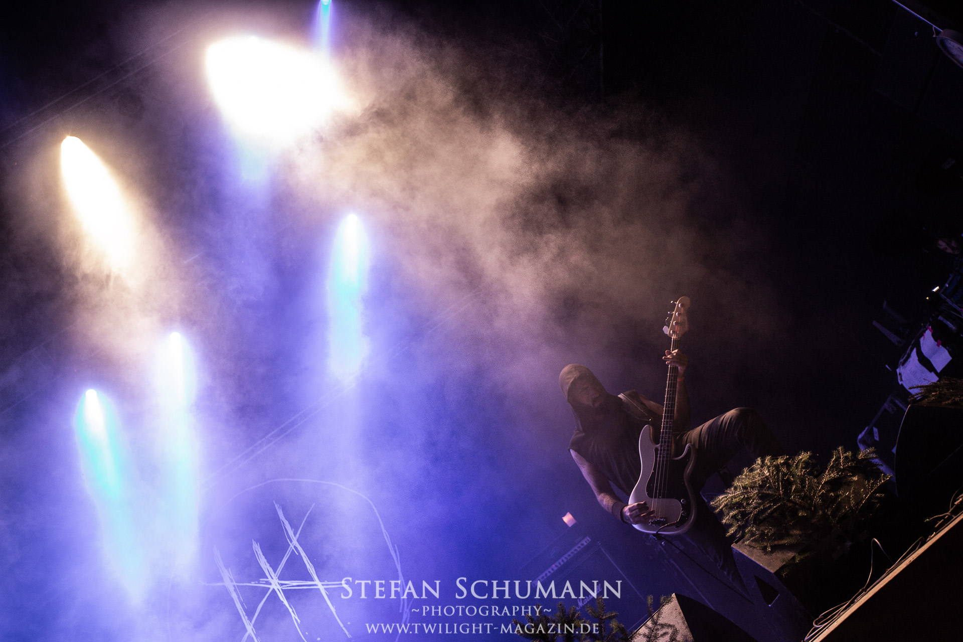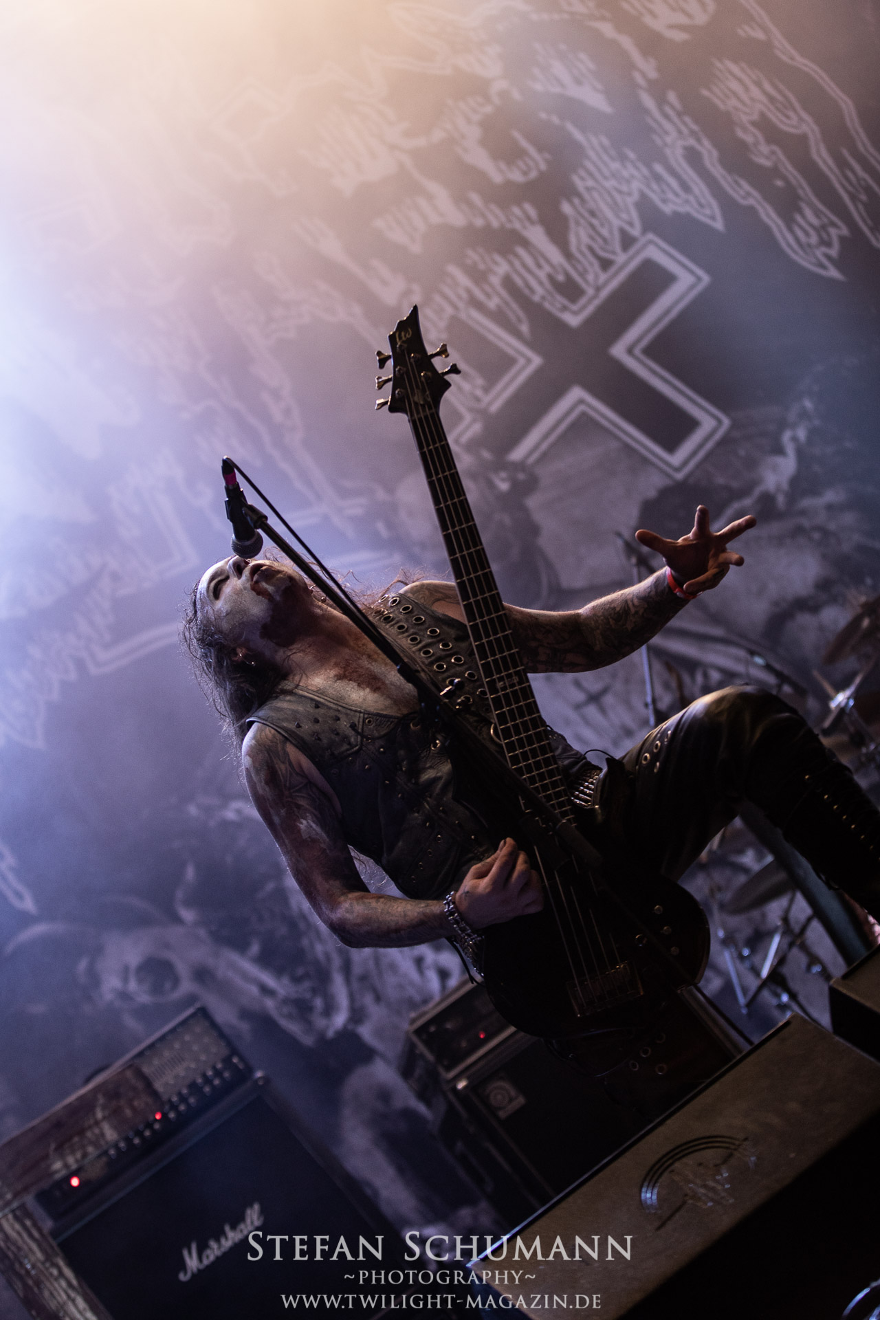 Sonntag abends machen als letzte Band die Holländer BLEEDING GODS auf sich aufmerksam, die trotz Corpse Paint weniger Black Metal als eine sehr souveräne death-metal-lastige Show vor ein paar hundert Leuten über die Bühne bringen, bevor sie sich von ihrer Bassistin verabschieden, für die es wie geplant der letzte Auftritt war.