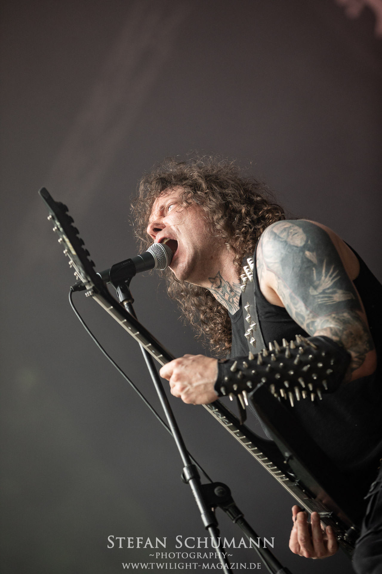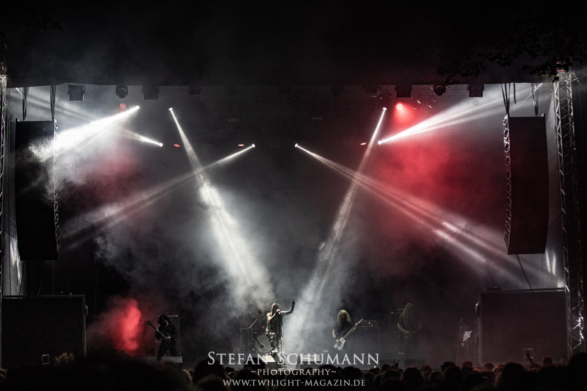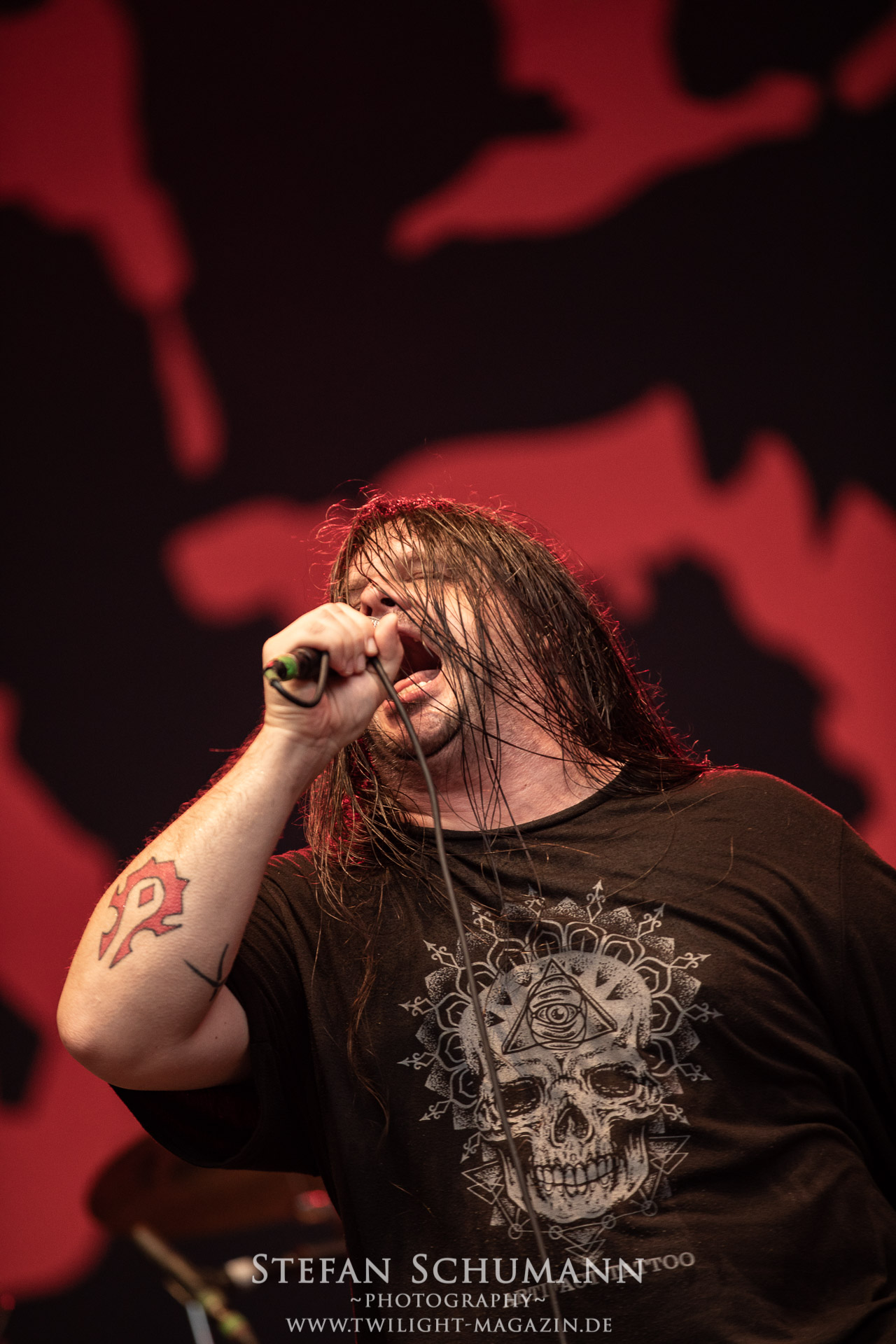 Der Tag beschlossen wird dann von KATAKLYSM, die mit ihrer Performance wohl das Überraschungs-Highlight des Festivals liefern. Ohne viel Schnickschnack auf der Bühne blasen die Kanadier mit ihrem harten, aber doch melodischen, Death Metal einfach alles weg, was ihnen im Wege steht. Bis zur letzten Reihe bleibt dabei kein Körper unbewegt und kein Haar ungeschüttelt. Es bildet sich eine Circle Pit nach der anderen, die Security muss unzählige Crowdsurfer retten und die Spielfreude überträgt sich von der Bühne auf das gesamte Vorfeld. So ist der Gig nach etwas über einer Stunde mit „The World is a dying Insect“ viel zu schnell vorbei.