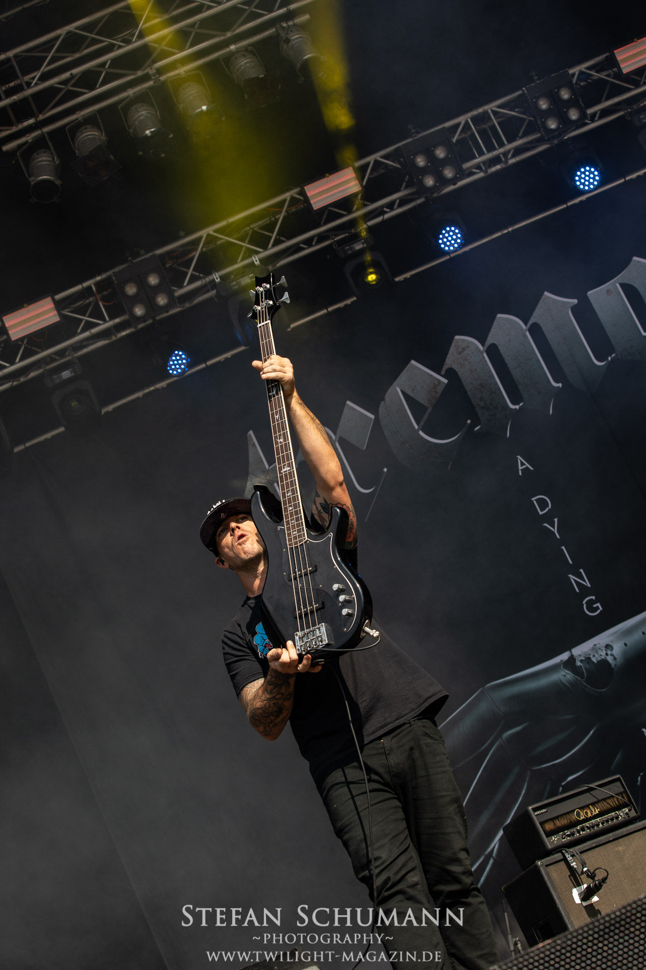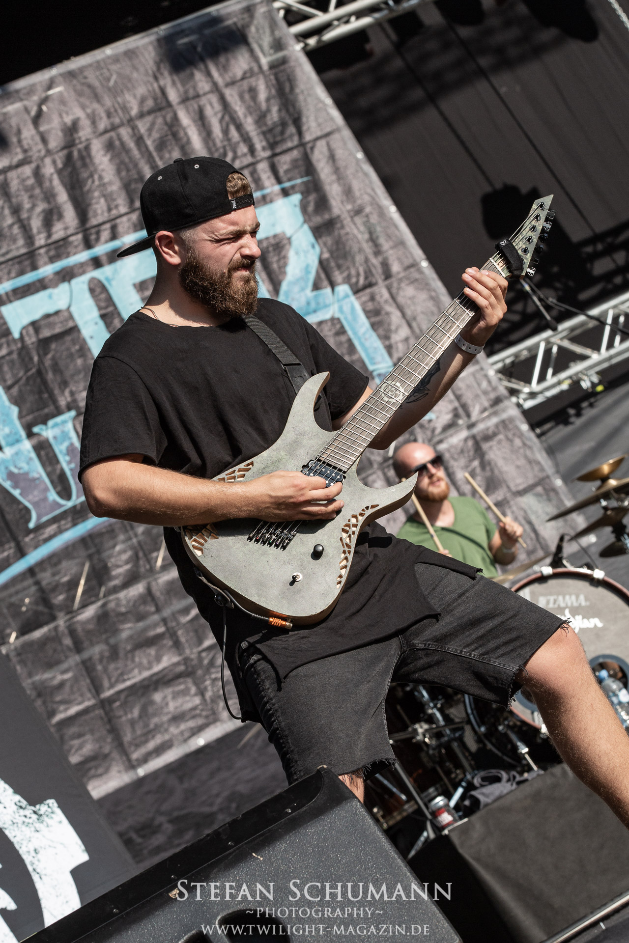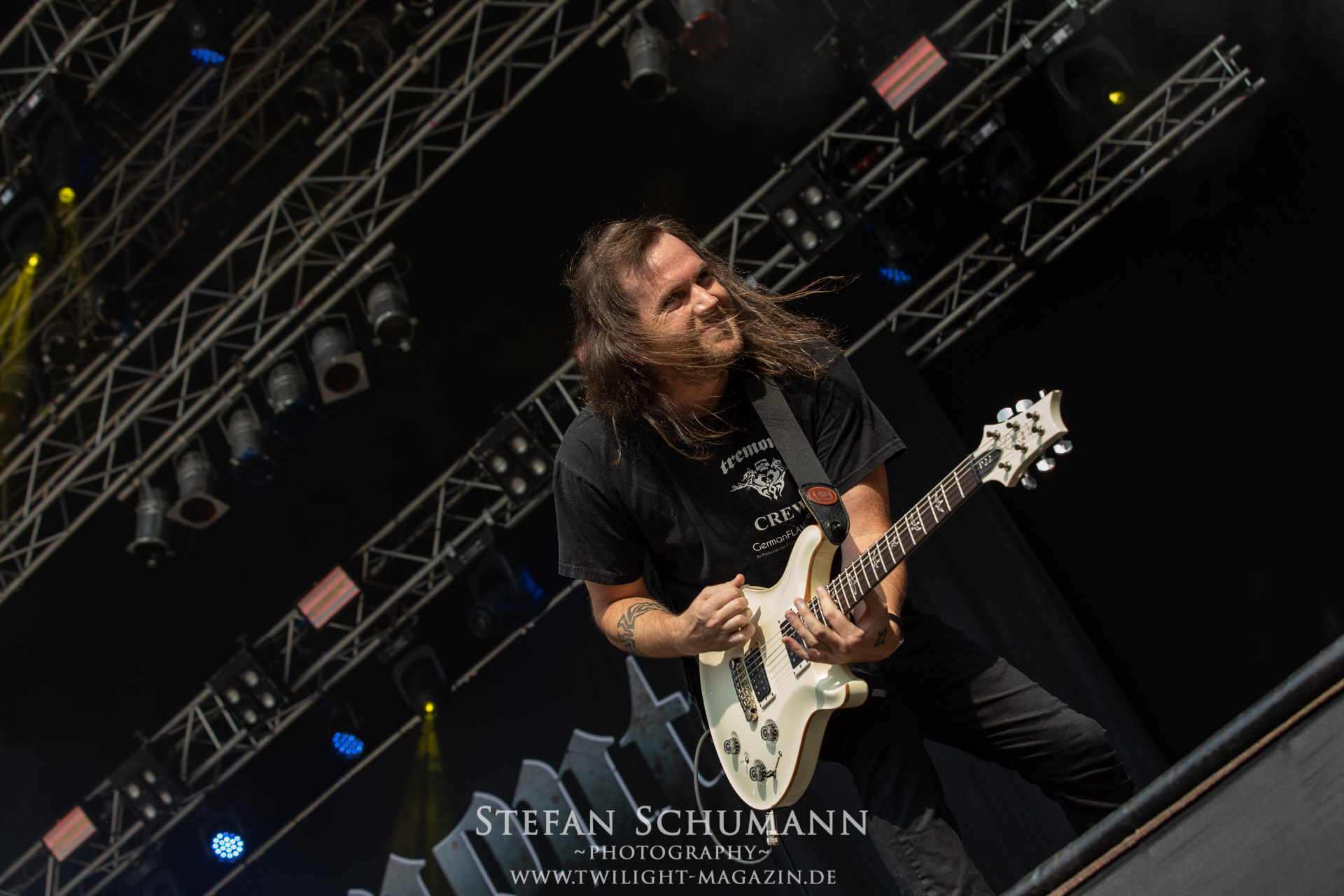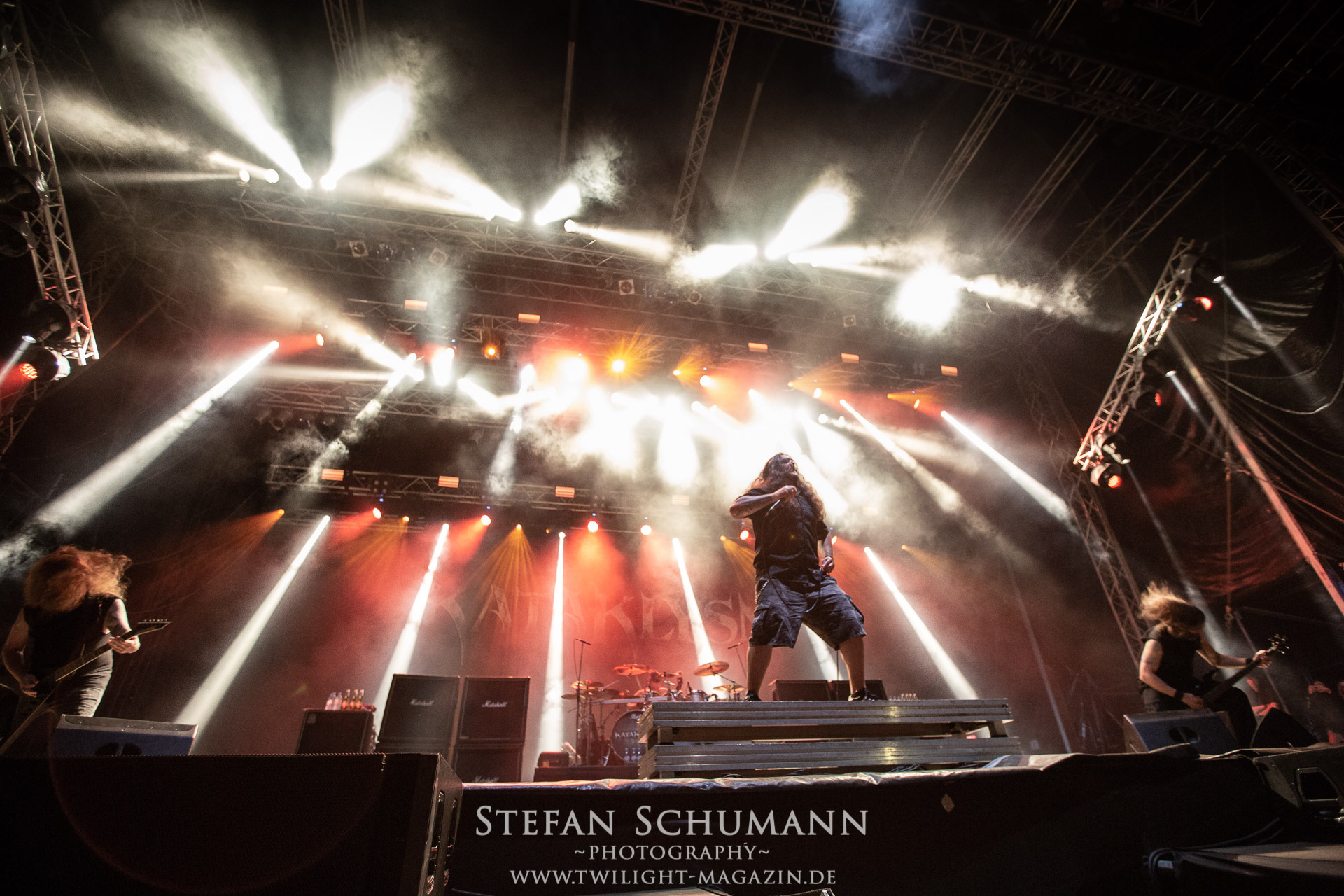 Der Tag beschlossen wird dann von KATAKLYSM, die mit ihrer Performance wohl das Überraschungs-Highlight des Festivals liefern. Ohne viel Schnickschnack auf der Bühne blasen die Kanadier mit ihrem harten, aber doch melodischen, Death Metal einfach alles weg, was ihnen im Wege steht. Bis zur letzten Reihe bleibt dabei kein Körper unbewegt und kein Haar ungeschüttelt. Es bildet sich eine Circle Pit nach der anderen, die Security muss unzählige Crowdsurfer retten und die Spielfreude überträgt sich von der Bühne auf das gesamte Vorfeld. So ist der Gig nach etwas über einer Stunde mit „The World is a dying Insect“ viel zu schnell vorbei.
