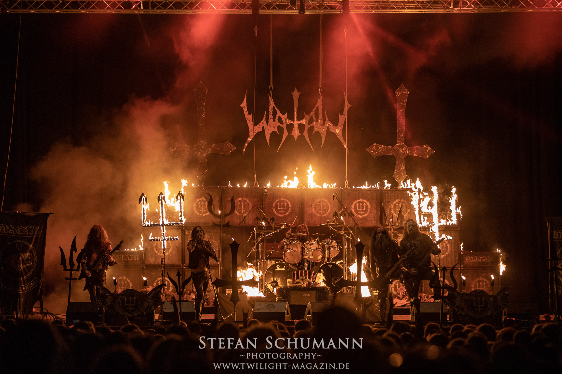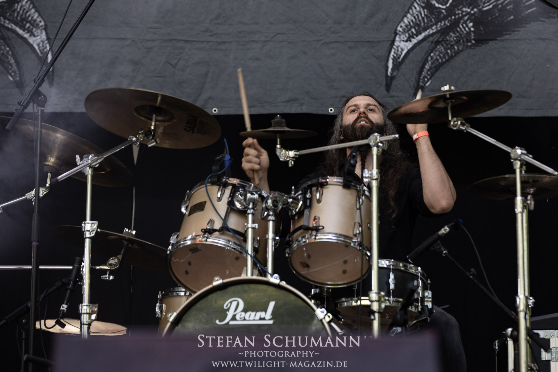 Der absolute Headliner des ersten Abends sind jedoch ohne Wenn und Aber BEHEMOTH. Die einzigartige Mischung aus Black- und Death Metal mit auf den Punkt gebrachten, absolut druckvollen Blastbeats und der perfekt synchonisierten Bühnenschow mit Feuer, Nebel und Glitter-Konfetti zum Abschluss kommt in der lauen slowenischen Nacht beeindruckend zur Geltung. Im Gepäck haben Nergal und Konsorten mit „Wolves ov Siberia“ auch einen Song vom noch unveröffentlichten neuen Album „I loved you at your darkest“, das im Oktober erscheinen wird. Außerdem darf bei „A Forest“ (einem weiteren THE CURE-Cover am heutigen Tag) Niklas Kvarforth von SHINING den Gesangspart übernehmen, dessen Band eigentlich erst ein paar Tage später auftritt. Bleibt nur zu hoffen, dass der nicht unbedingt als zurückhaltend geltende Musiker nach drei Tagen Festival dazu auch noch in der Lage sein wird.