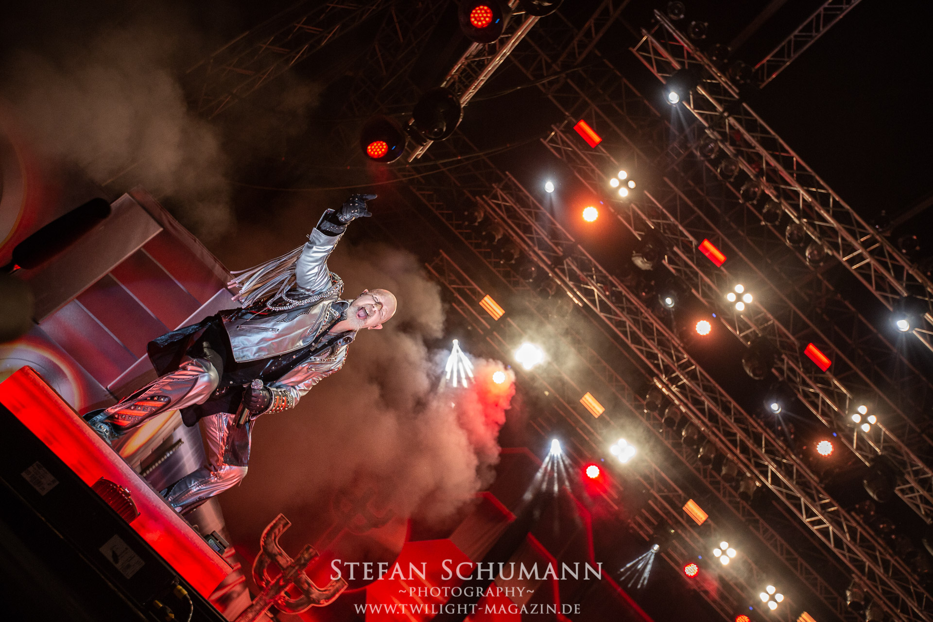 Selbiges gilt natürlich auch für JUDAS PRIEST als Donnerstags-Headliner. Die alten Hasen rund um Rob Halford können ihr Set vermutlich auch im Schlaf herunterspielen, Neu-Gitarrist Andy Sneap, der für den erkrankten Glenn Tipton seit diesem Jahr dabei ist, mit eingeschlossen. Das heißt jedoch nicht, dass es während des Auftritts langweilig wird. Auch wenn Priest natürlich ihr neues Album "Firepower" im Gepäck haben und mit dem namensgebenden Titelsong das Set eröffnen, sind es doch die alten Klassiker, die am meisten zelebriert werden. Sei es „Turbo Lover“, oder der Dreier „Hell Bent for Leather“ (inklusive Motorrad), „You’ve got another thing coming” und “Painkiller” (mit erstaunlich stimmsicherem Rob): Das Publikum ist voll dabei und hängt an den Lippen des Sängers. Und als nach anderthalb Stunden dann endlich „Breaking the Law“ und „Living after Midnight“ ertönen, wird auch noch jedes einzelne Gitarrensolo mitgesungen, bevor die Band mit einem großen Knall in der Nacht verschwindet.