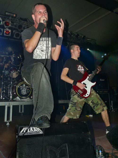 Als nächstes dran in der leicht umstrukturierten Running Order waren dann Textures, die die Wende hin zum "-Core" für diesen Abend einleiteten. Die sechs Holländer um den mittlerweile kurzhaarigen Sänger Eric Kalsbeek zogen von Anfang alle Register und heizten dem etwas dünneren, aber umso springfreudigeren Publikum mit Titeln des neuen Albums "Silhouettes" ein, welche mir persönlich eher weniger zusagten. Mit "Stream of Consciousness" war dann aber auch ein Track vom genialen Vorgänger "Drawing Circles" mit dabei, und auch der fand in einem ausdauernden Moshpit glänzend Erwiderung. Nach einer knappen Dreiviertelstunde war dann aber der Ofen auch schon aus: Der Umbau gönnte dem Publikum eine kurze Verschnaufpause bevor...