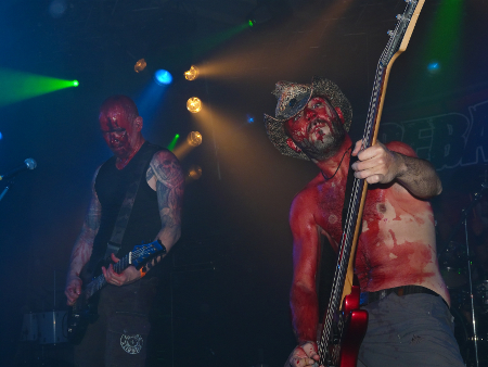 Big Ball präsentierten einen Rock/Death-Mix, der sehr an AC/DC erinnerte. Es war ein sehr kurzer Auftritt, bei dem nur drei bis vier Lieder gespielt wurden und ich vermute, dass einige auch Coverversionen der eben genannten Rockband waren. Zum Schluss wurden die Jungs einfach von einer jungen Dame mit "Blut" begossen, und schon standen nicht mehr Big Ball auf der Bühne, sondern Debauchery.