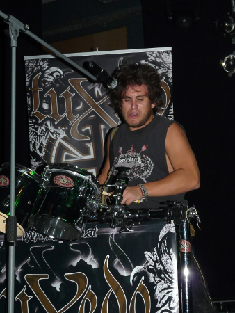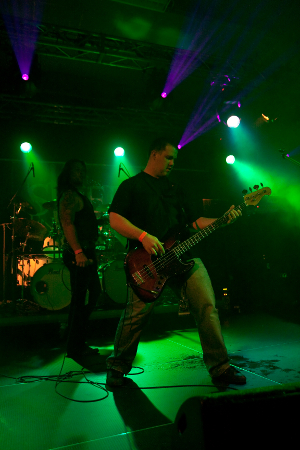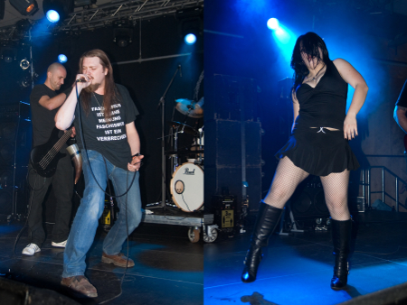 Viel zu verpassen gab's da aber zugegebenermaßen nicht. Die Aufgabe der ersten Band des Festivals fiel dieses Jahr Full of Anguish zu, einer Passauer Lokalband, deren Fronter eher an einen brünftigen Elch, als an einen Sänger erinnerte: An den grölenden Röhr-Vocals, die ganz beiläufig noch die englische Sprache mit ihrer fürchterlichen Bavaro-Aussprache malträtierten, darf jedenfalls noch gearbeitet werden. Auch die dazu servierte Gitarrenarbeit ließ echte Glanzmomente vermissen und dümpelte meist im Midtempo-Mittelmaß vor sich hin. "Was man aber aber mit Qualität nicht hinbekommt," muss die Band sich gedacht haben, "das kann man wenigstens mit Brüsten kompensieren" - und hatte prompt eine Tänzerin mit auf die Bühne gebracht, die zu den einförmigen Liedern fleißig mit den Hüften wackelte und sich nach ein paar Titeln weiterer Textilien entledigte. Auch gab man sich alle Mühe, den mangelnden Zuspruch des spärlichen Publikums mit Hybris zu überspielen: Die knapp 30 schockstarr dastehenden Seelen vor der Bühne deutete man kurzerhand in "jubelnde Fans" um und freute sich, dass einer der Songs auf dem Festival sogar "Weltpremiere" feierte. Wie auch immer diese Band es ins Festival-Lineup geschafft hat - als der Spuk nach 30 Minuten endlich vorbei war, dürfte das kaum jemand wirklich bedauert haben.