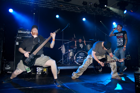 Illdisposed hatten nach eigener Aussage seit Mai nicht mehr zusammen gespielt, doch das hörte man den Jungs wirklich nicht an. Mit gewohnt lockeren Sprüchen, die selten im Kontext zu den Songs standen, grunzte und screamte sich Frontmann Bo durch den Auftritt. Mit "I Believe In Me", "Now We Are History" und ähnlichen Knüppelballaden wurde der Meute ordentlich eingeheizt, die das ganze mit Moshpits und Gebange belohnte. Neben Lobeshymnen auf die anwesenden Damen, die " hübsch und deutsch" sind, gab es noch einen laschen Saufspruch: "Prost, ihr Säcke", "Prost, du Sau". Ein netter Gig einer merkwürdigen Band.