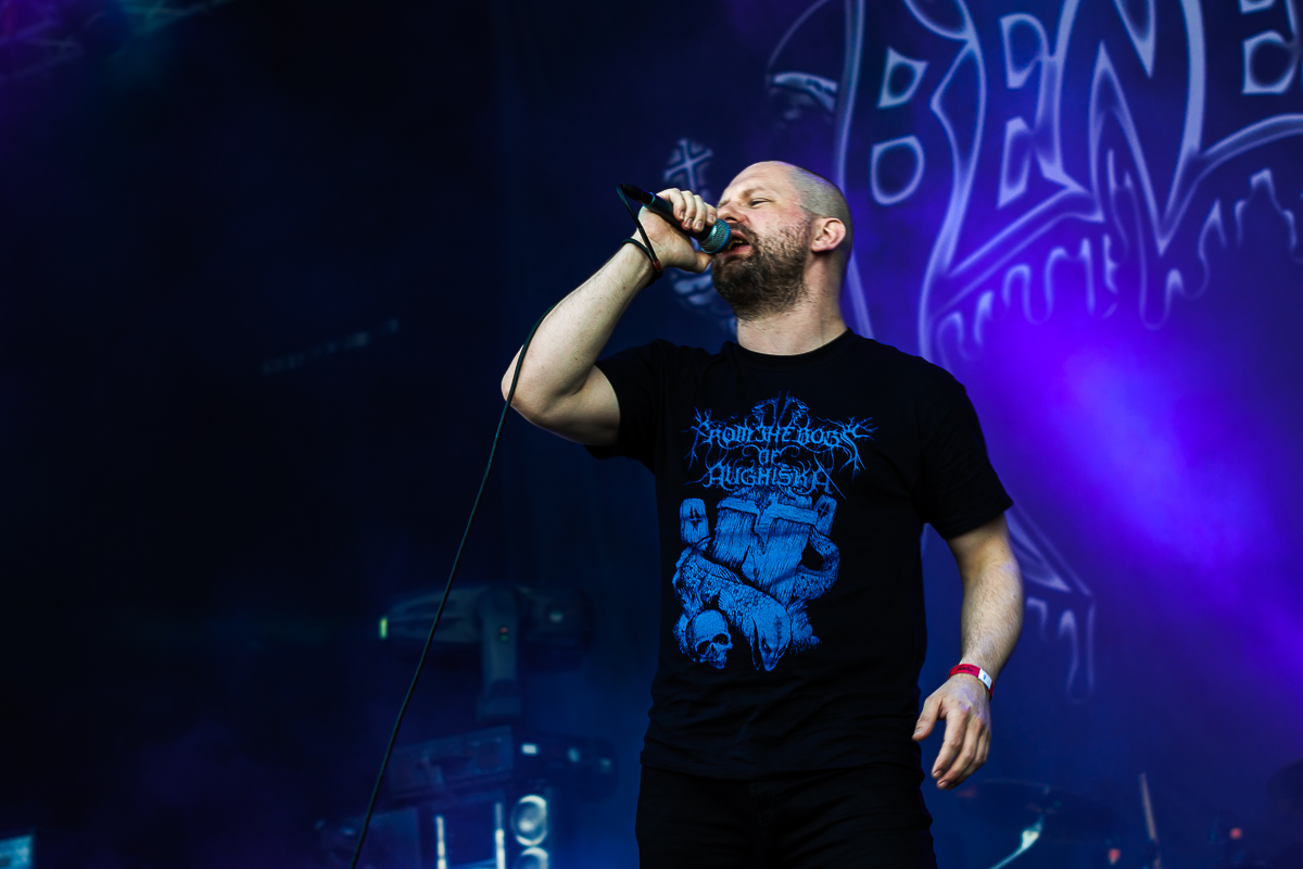 Der Planet brennt mittlerweile so erbarmungslos vom Himmel, dass man die Düsternis und Kälte der Tiefsee herbei sehnt, die AHAB so unglaublich intensiv vertonen. Wer glaubt, dass Nachmittagshitze, Helligkeit und abgrundtief-traurige Ultra-Slo-Mo-Doom-Atmosphäre nicht zusammen passen, der wird eines Besseren belehrt. Ahab schaffen das Kunststück auch bei Tageslicht überzeugend rüber zu kommen und sorgen ebenso wie Atlantean Kodex am Vorabend für einen edlen musikalischen Farbtupfer im Billing, was wiederum für das Songmaterial spricht. Chapeau. Mir ist es absolut schleierhaft, wieso INQUISITION derzeit allseits so abgefeiert werden. Das Ami-Duo bietet musikalisch nicht mehr als einen uninspirierten Abklatsch früher Immortal. Langweilig, räudig. Gepunktet kann lediglich im Bereich „böse gucken“ und mit den obligatorischen Tierschädeln im Bereich „Bühnendeko“. Ansonsten frage ich mich, was eine solche Band auf der Hauptbühne zu suchen hat. (TF) Die Belgier von ABORTED waren nie wirklich meine liebste Baustelle aber ich muss die Entwicklung und Leistung der Death-Grinder neidlos anerkennen. Die Herren fahren nicht nur in Sachen Bühnen-Deko das ganz große Besteck auf. Nein, hier passt vom Sound über die handwerklichen Fähigkeiten, das Songwriting sowie eine Power-Show mal einfach alles. Diese Band hätte höhere Weihen im Billing verdient gehabt. Musikalisch wird hier aber vor allem die Faschingselite von Inquisition mal brutalst vorgeführt.(JD) Ganz nebenbei geht es dann in der Zwischenzeit auch auf der Tentstage los. Den Anfang machen INCARCERATION. Das brasilianisch-hamburgische Trio hat erst eine Split und eine 3-Track EP herausgebracht - dafür sind sie aber schon recht bekannt – und das zu Recht. Ich habe die Jungs erstmalig auf dem Berlin Death Fest gesehen, wo sie völlig überzeugten. In Schlotheim beweisen sie nun, dass dieser gute Auftritt in der Hauptstadt keine Eintagsfliege war. Das von Sänger /Gitarrist Daniel wohl am Häufigsten gebrachte Wort „Chaos“ war Programm. Mit unglaublich guter Laune und haufenweise Energie ackern sich Incarceration durch das Set im sehr gut gefüllten Zelt. Ich bin gespannt auf das erste Album, dass noch dieses Jahr über FDA erscheint, denn die neuen Tracks sind keinen Deut schlechter als die alten. Ich hatte mich gefreut, BENEDICTION endlich mal wieder live zu sehen. Die Briten haben mit ihren ersten drei Alben wirkliche Klassiker abgeliefert und waren live auch oft eine Macht. Beim Gig musste ich dann häufiger an Havok denken, nicht nur, weil ich mir deren Spielfreude gewünscht hätte sondern weil eine ihrer Scheiben ´Time Is Up´ betitelt ist. Das scheint – zumindest momentan – für Benediction zu gelten. Die Band liefert einen langweiligen, unmotivierten Gig, den nicht mal die guten Songs retten konnten. Ich habe mit niemanden gesprochen, der den Auftritt überzeugend fand. Eher berichteten die Leute von ähnlich schwachen Leistungen auf anderen Festivals wie dem, auf dem In Flammen. Das eine gute Show keine Frage des Alters ist, beweisen an diesem Wochenende viele Bands und einmal mehr auch Barney, der mit dem Wechsel von Benediction zu Napalm Death damals alles richtig gemacht hat. Hoffentlich demontiert die Band sich nicht weiter selber.(Tr)