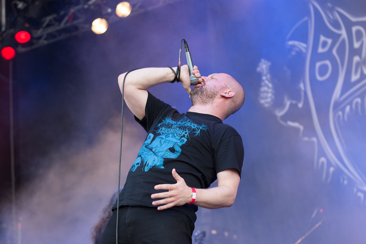 Einmal mehr unspektakulär, wenn auch kultig und handwerklich anspruchsvoll geht es beim Rumpel-Black-Thrash der norwegischen Altmeister von AURA NOIR zu. Der perfekte Soundtrack, um sich Bier und Schnapps zu widmen, nicht mehr aber auch nicht weniger. Anschließend geht´s gediegen mit den schwedischen Kollegen von GRAND MAGUS weiter, die leider nicht ihren besten Tag erwischt zu haben scheinen. Probleme beim Gitarrensound und beim Gesang schmälern einen von mir sehnlichst erwarteten Gig, der in Sachen Setlist keine Wünsche offen lässt, wenn er auch ziemlich steif wirkt.(TF)