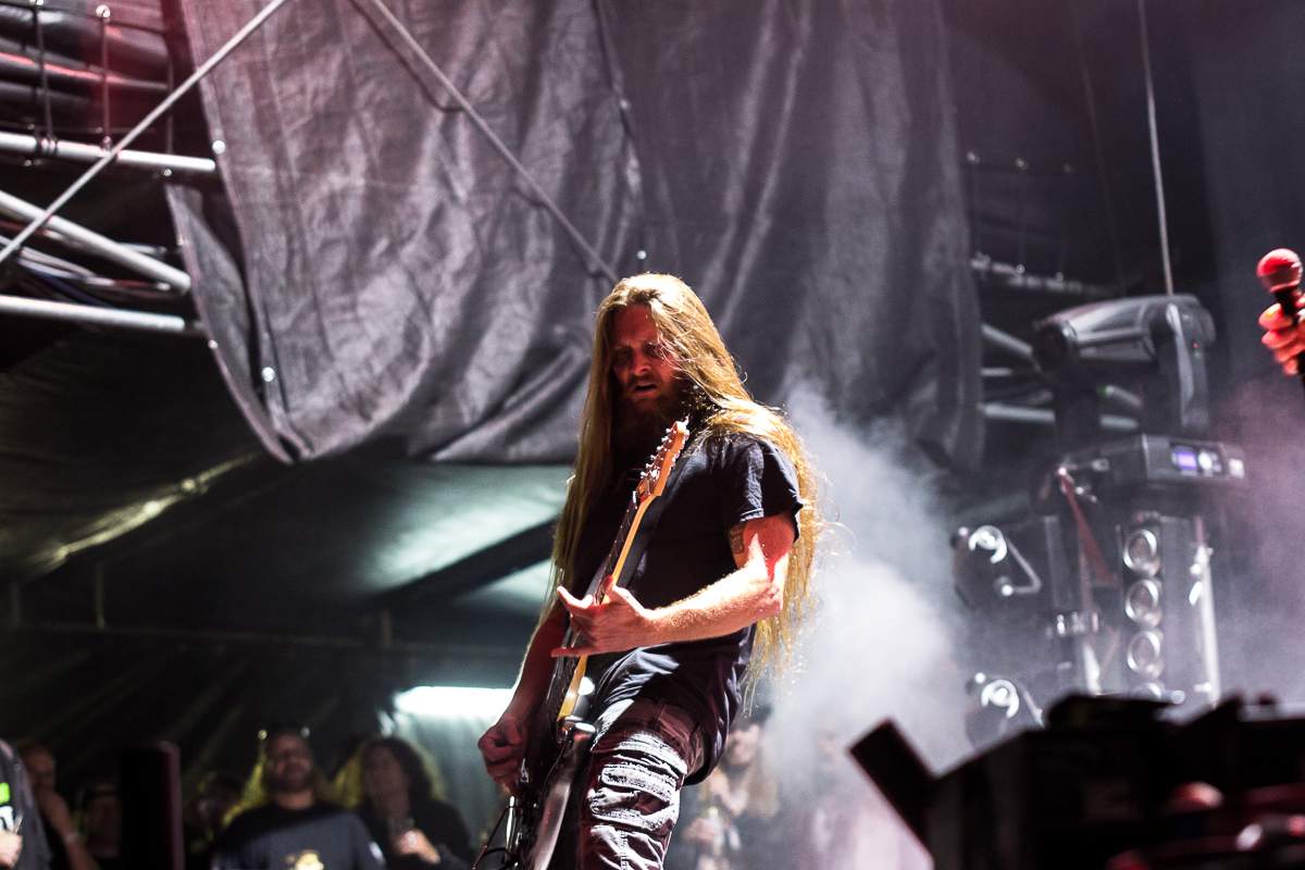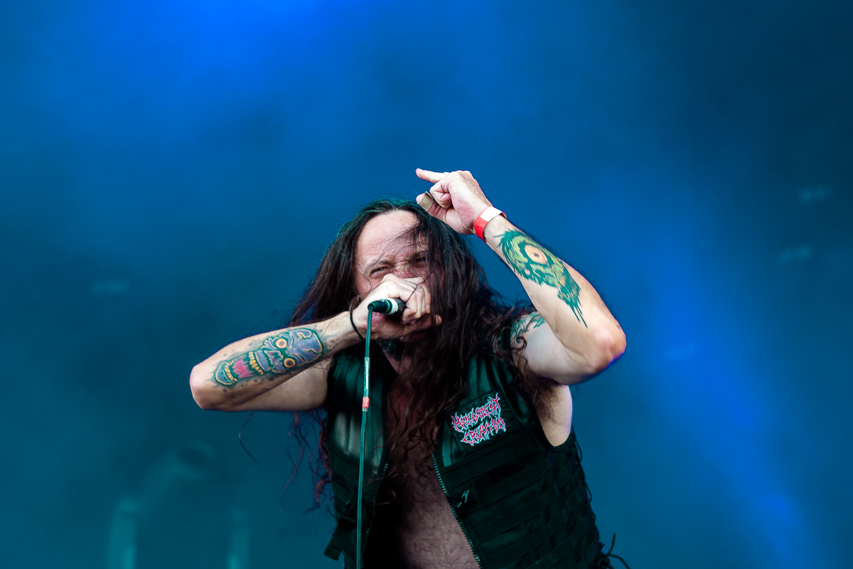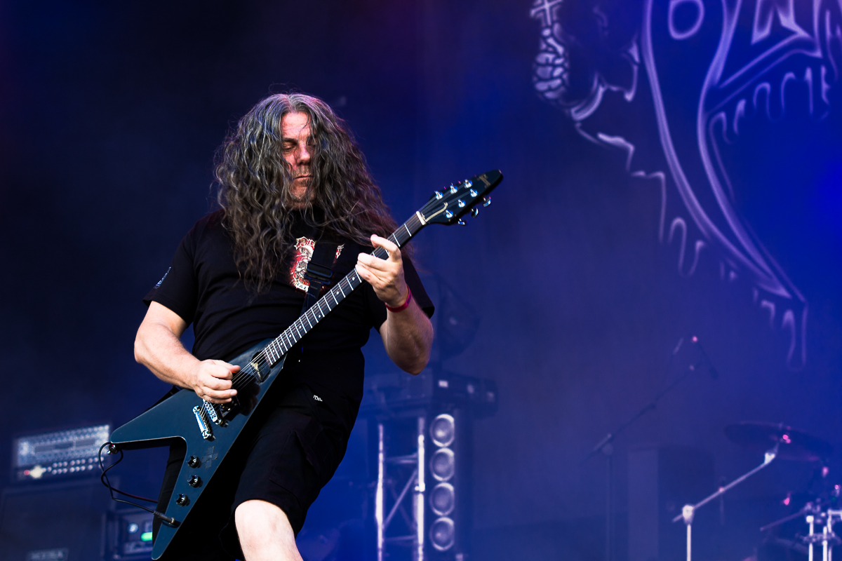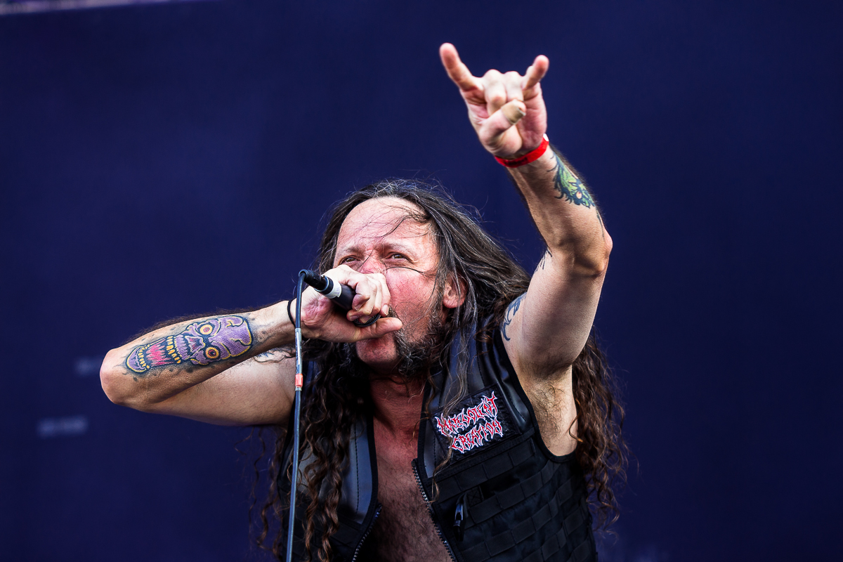 OBITUARY legen einen einen mächtig-gewaltigen Auftritt hin und grooven sich nackebrecherisch durch einen Set von Old-School-Klassikern. Aber bei allem Engagement, mit dem die Florida-Deather ihre Granaten unters Volk bringen, lassen sich zumindest bei mir gewisse Abnutzungserscheinungen bei der Darbietung der einfach gestrickten Tracks nicht verleugnen, so dass diese Band für meine Begriffe viel zu hoch im Line-Up getacktet ist.
