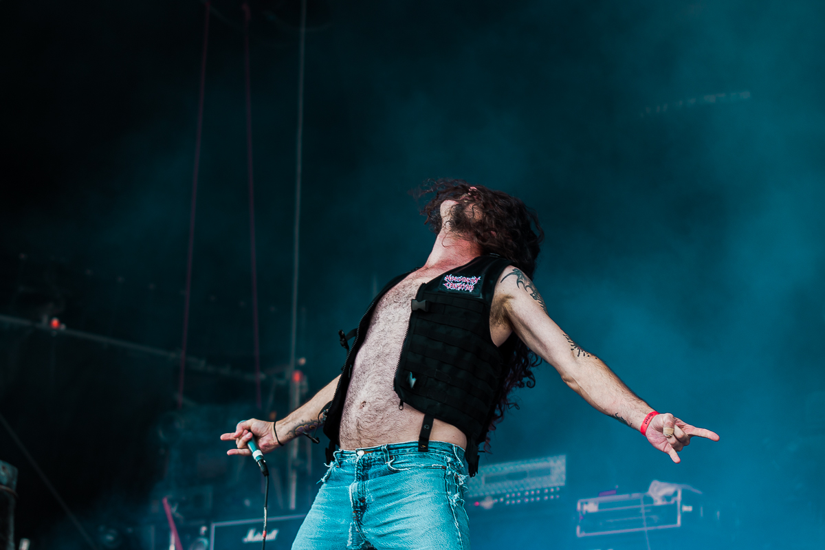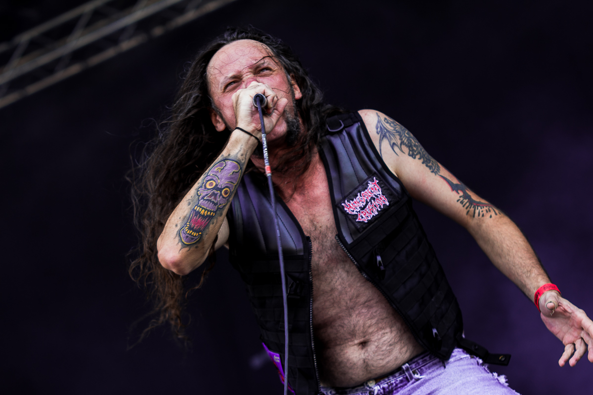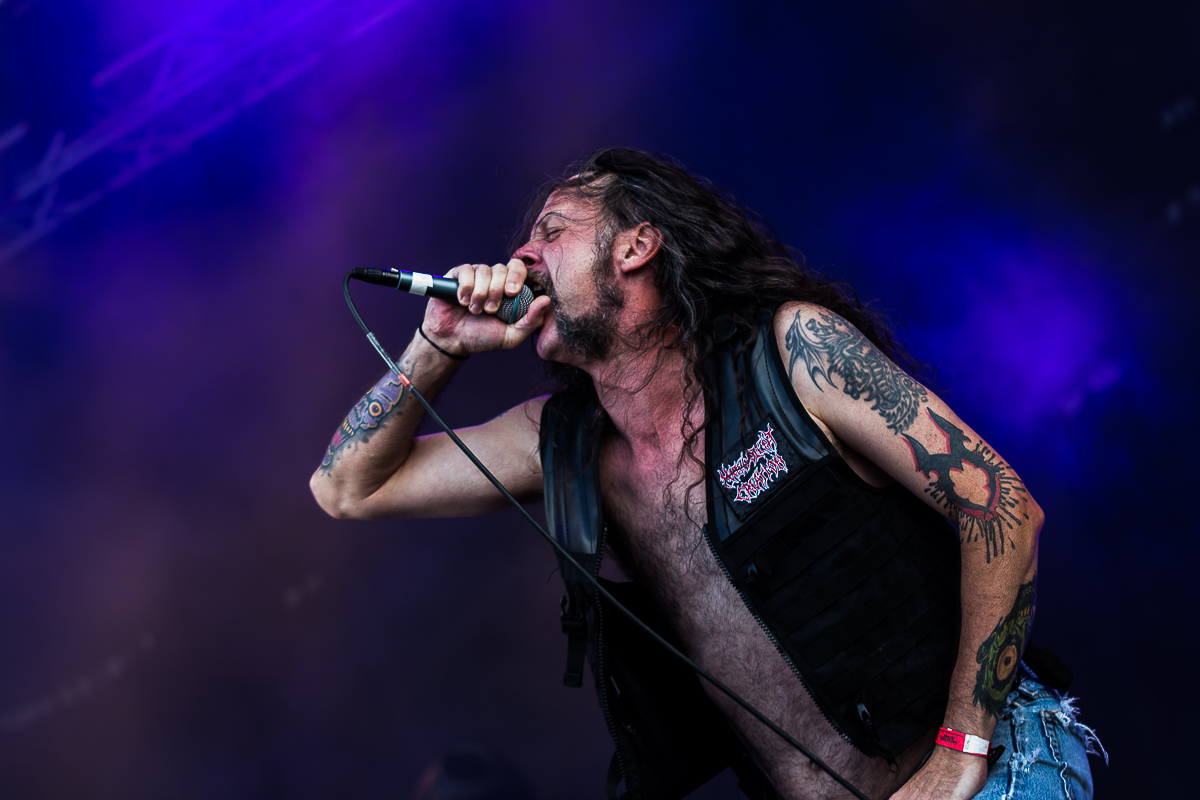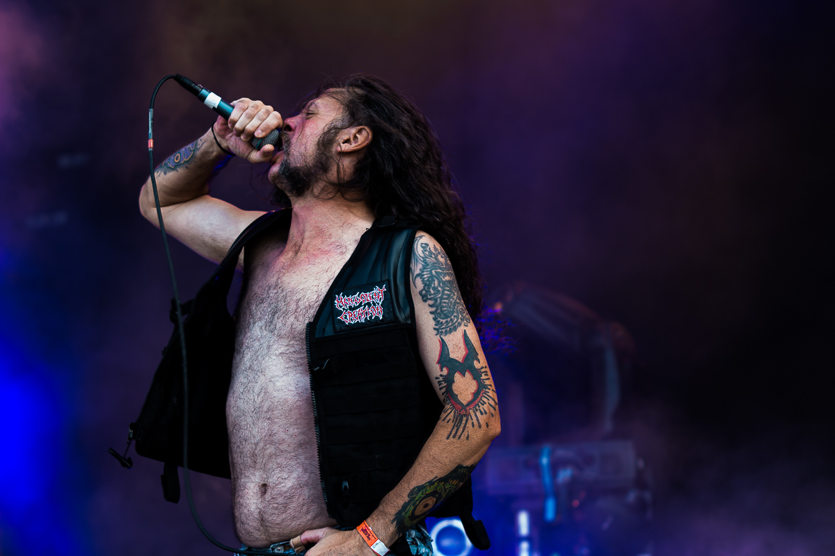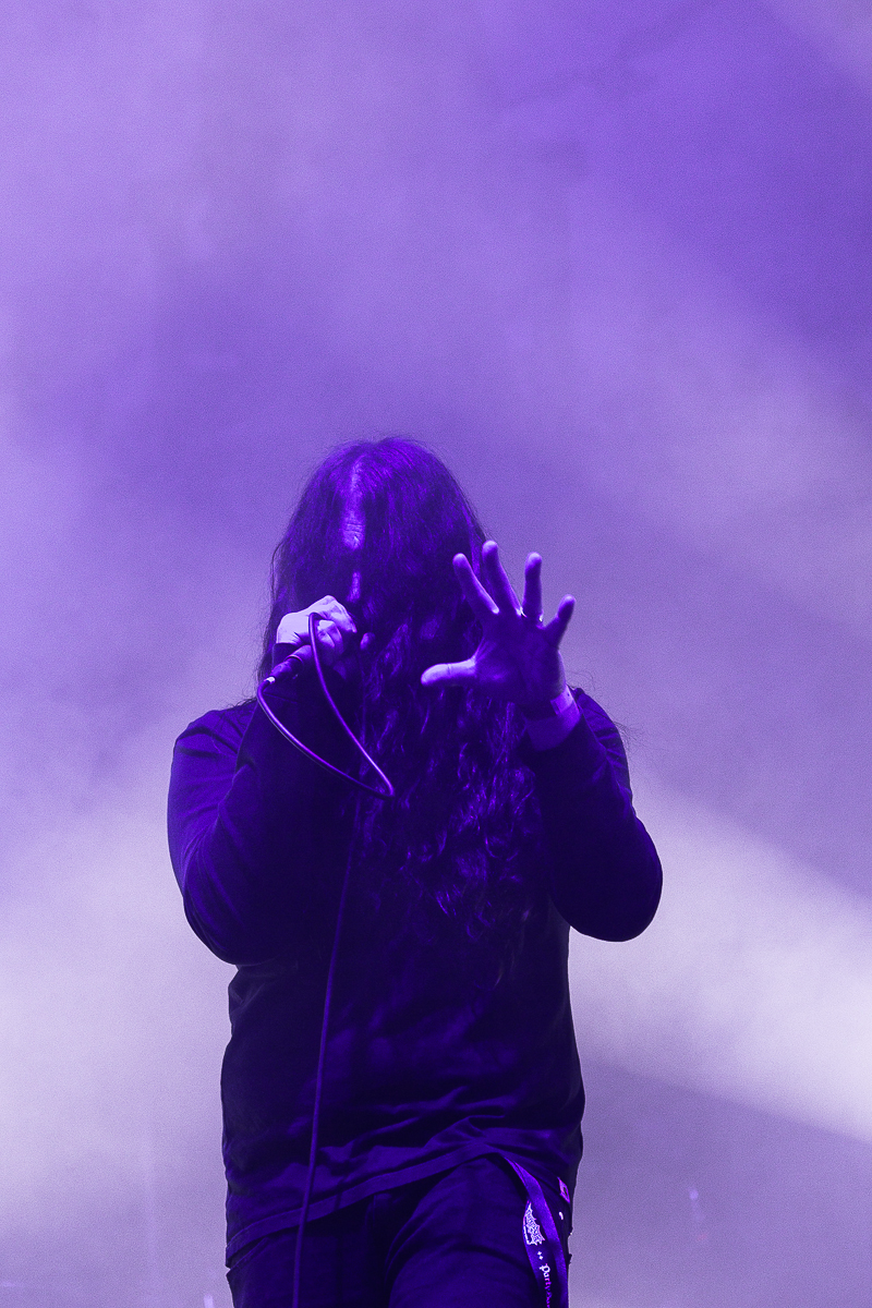 OBITUARY legen einen einen mächtig-gewaltigen Auftritt hin und grooven sich nackebrecherisch durch einen Set von Old-School-Klassikern. Aber bei allem Engagement, mit dem die Florida-Deather ihre Granaten unters Volk bringen, lassen sich zumindest bei mir gewisse Abnutzungserscheinungen bei der Darbietung der einfach gestrickten Tracks nicht verleugnen, so dass diese Band für meine Begriffe viel zu hoch im Line-Up getacktet ist.