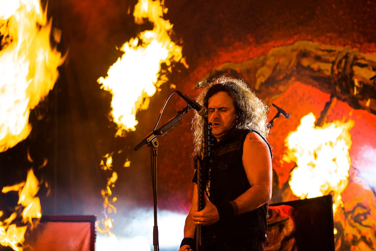 Man mag über das opulente "Phantom Antichrist"-Bühnenbild mit Showtreppen-Schnickschnack, die Bengalo-Terroristen, Feuersäulen, Schnippselkanonen und Stroboskob-Lichtwahnsinn denken was man will. Musikalisch sind KREATOR einfach eine Macht und ebensowenig, wie man darauf hofft, dass Mille seine nervige Übermotivation bei der Kommunikation mit dem Publikum endlich ablegt, so wenig nutzen sich diese Band und ihre immer neuen Kompositionen ab. Die Ruhrpott-Thrasher legen einen würdigen Headliner-Gig auf´s Parkett, mit sattem Sound, einer Setlist, die kaum Wünsche offen lässt aber auch nicht wirklich überrascht. Die Präsenz des Quartetts ist selbst zu später Stunde noch gewaltig. Der Mond und das durch ihn kreierte Wolkenspiel am Nachthimmel komplettieren einen nahezu perfekten, wenn auch sehr späten Festival-Abschluss am Sonntag morgen. Wer zu dieser Stunde noch reserven hatte, dem wurden sie eindrucksvoll von Granaten wie "Riot Of Violence", "Warcurse", "Flag Of Hate/Tormentor" "Coma Of Souls" oder "Hordes Of Chaos" ausgeprügelt. Chapeau, Kreator!(JD)