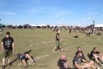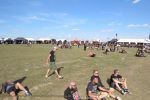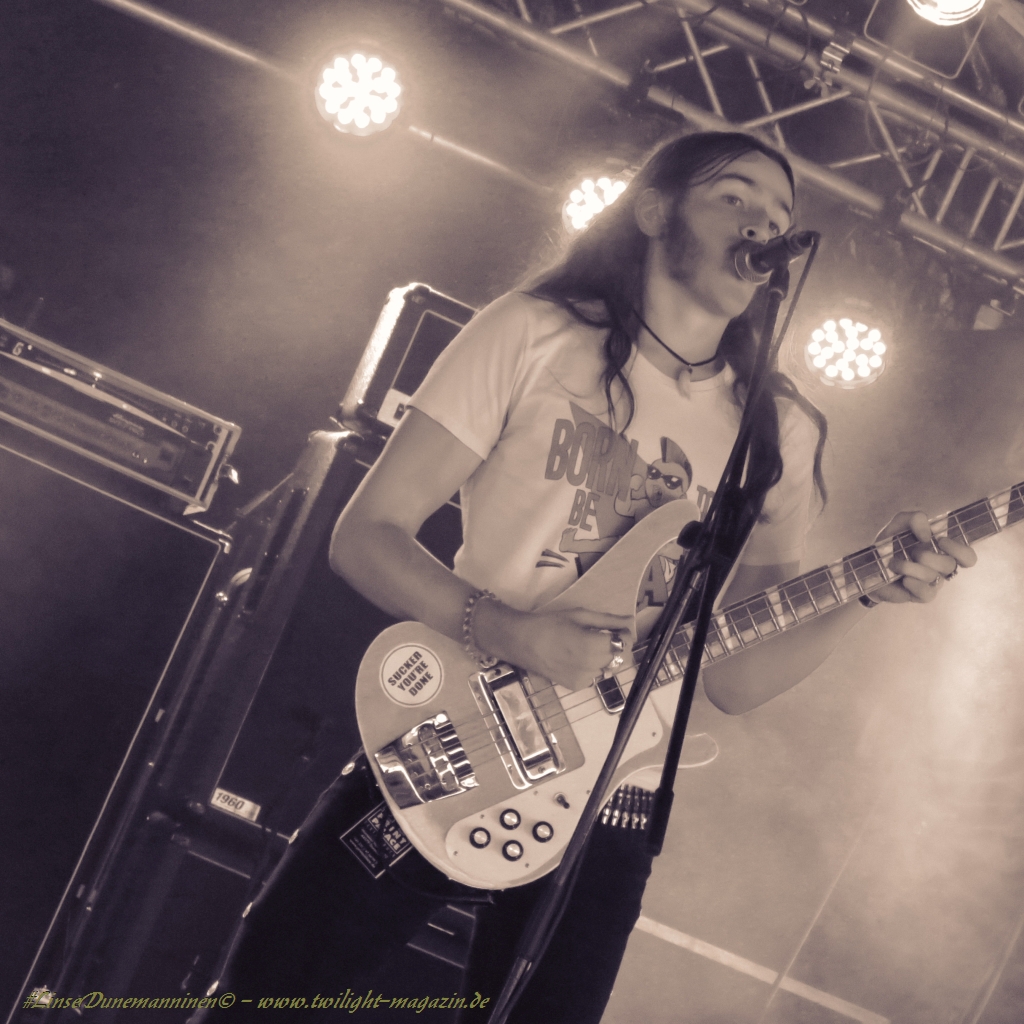 In diesem Jahr geht es jedoch mit ASOMVEL gleich morgens um zehn gleich wieder so richtig in die vollen. Und einen schöneren, vor allem aber besseren Tribut an den hochverehrten, verstorbenen Lemmy hätten Mieze und Boy kaum aus dem Hut zaubern können. Das britische Power-Trio existiert in wechselnden Besetzungen bereits seit 1993 und atmet den Geist von Motörhead in beängstigender Art und Weise. Und das liegt nicht nur an der Tatsache, dass man mit Sänger/Basser Ralph einen Frontmann in den Reihen hat, der in allen Belangen frappierend an den "jungen" Godfather of Rock ´N´Roll erinnert, inklusive Rickenbacker Bass. Erfreulicherweise sind die drei für einen Rip-Off musikalisch einfach zu gut und Ralph einfach zu authentisch, dass man es sich mit eigenen Krachern der Marke, "The Nightmare Ain´t Over", "Kamikaze" oder "Railroaded" während des gesamten, gut anderthalbstündigen(!) Sets locker leisten kann, auf Cover der offenkundigen Vorbilder zu verzichten. Die Stimmung im Zelt kocht folglich, bevor der Tag richtig begonnen hat, der Durst ist groß, das Bier schmeckt und alle sind zufrieden. Asomvel dürfen gerne wieder kommen. Chapeau an die Veranstalter, dass sie diese Band aufgetrieben haben. (JD) Nachdem ich meinen Körper bei Asomvel und RECTAL SMEGMA so gar nicht davon überzeugen konnte, vor die Bühne zu gehen, geht´s weiter mit IRON REAGAN. Die Band konnte ich bisher gar nicht einordnen,aber beim ersten Ton des Sängers ist klar: Municipal Waste - Sänger und die Mucke geht in die gleiche Richtung, wenn auch ´nen Zacken mehr Hardcore mit reingemischt ist. Somit mähen sie mir auf jeden Fall die letzten Schlaffalten aus dem Gesicht und mit dem Cannibal Corpse - Klassiker "A Skull Full Of Maggots" legen sie auch ´ne perfekte Covernummer hin. Der Song komplett im Thrash Gewand klingt wirklich sehr, sehr geil!(LT)