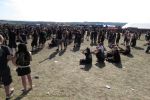 Ja, mal wieder so 'ne Band, mit der ich gar nix anfangen kann. Ziemlich öder Death/Black Metal. Ist bestimmt modern und total trendy, mir reichen zehn Minuten, um total gelangweilig zum Bierstand zu hampeln. Während die sich das War Anthem - Kommando VIDARGÄNGR über klirrend und rasend über die Zeltbühne fröstelt rauscht macht sich der erste Festivaldurchhänger in mir breit. ANGELCORPSE und IMPLORE fallen dem zum Opfer. Im Falle letzterer kann ich es verschmerzen, habe ich die Band mit ihrem angeschwärzten Grind in letzter Zeit des öfteren gesehen. Im Falle der Amis könnte ich mich in den Allerwertesten beißen, auch wenn die Meinungen aus meinem Umfeld über die Leistung doch von "ziemlich öde" bis "der totale Hammer" sehr weit auseinander gehen. Ich weiss nicht, ich weiß nicht.