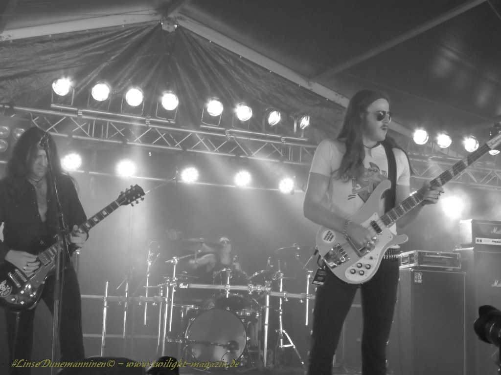 Bleibt uns nur festzuhalten, dass Veranstaltern und Crew insgesamt einmal mehr einen großartigen Job gemacht haben und Fans und Publikum wieder einmal ein entspanntes und in allen Belangen abwechslungsreiches Wochenende geboten und das Angebot wieder ein Stück weit weiter entwickelt haben, ohne dabei in Kirmes-Gefilde abzudriften. Dafür Dank, Anerkennung und Respekt! Und es gibt nach den einleitenden Worten aus dem Fernseh-Interview keinen Grund, daran zu Zweifeln, dass Mieze und Jarne ihren eingeschlagenen Weg auch im kommenden Jahr für ihre "Kundschaft" konsequent fortführen werden. Nicht unerwähnt bleiben soll die fantastische Idee, teile der diesjährigen Merchandise-Kollektion mit exklusiven Motiven aus der Feder von Dan Seagrave auszustatten. Das schreit geradezu nach einer Fortführung.