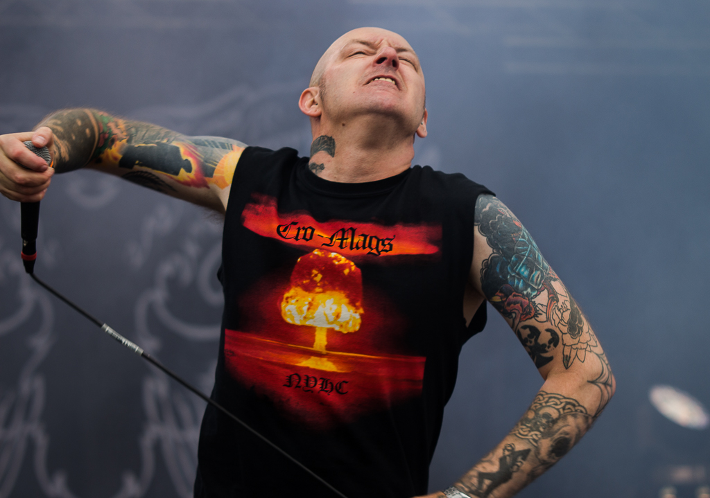 Ha, DYING FETUS sind für mich die einzige Band, bei der der Drumsound auf der Mainstage passt. Was soll man zu dieser Band noch großartig sagen, entweder man liebt sie, oder man hasst sie. Ich lieb sie und schaue sie mir auch beim 20. Mal noch gerne an. Super Liveband und technisch perfekt. Ohne große Erwartungen gehe ich an EXODUS ran und das zu Recht.