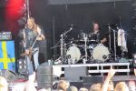 SVARTTJERN und SULPHUR AEON gehen mir im folgenden durch die Lappen, was bei den norwegischen Schwedenblack-Liebhabern verschmerzbar, im Falle der deutschen Antwort auf Morbid Angel und Behemoth ärgerlich ist. Die Griechen-Thrasher der SUICIDAL ANGELS sind wie ihre holländischen Kollegen nicht nur auf Langrille, sondern auch auf der PARTY.SAN-Bühne solide unterwegs, aber mich konnten die Jungs schon 2010 nicht wirklich überzeugen, fehlt es dem Material einfach an Substanz. Das sollte man von MEMORIAM normalerweise nicht erwarten. Kaum eine Death Metal - Combo hat in den letzten Jahren derart Erwartungen geschürt, wie die Band aus dem Umfeld der (Ex-) Bolt Thrower- und Benediction-Mucker Karl Willets und Frank Healy. Insbesondere die "Hellfire Demos" Siebenzoller ließ in diesem Jahr schon einmal aufhorchen. Diesen guten Eindruck können die Ikonen des britischen Death Metal, die just einen Vertrag beim Branchenriesen Nuclear Blast unter Dach und Fach bringen konnten live leider nicht bestätigen. Mehr als gefällig kann man den Set des Quartetts, dem es mit nur einer Gitarre merklich an Durchschlagskraft fehlt, nicht bezeichnen. Der vom Winde verwehte Gesamtsound macht es nicht besser. Dass man den Set mit Cover-Versionen auffüllt ist eigentlich kein Problem aber insbesondere die beiden Bolt Thrower-Klassiker sind ein Schatten ihrer selbst und es grenzt schon fast an Leichenfledderei, diese so schwachbrüstig zu präsentieren. Auch wenn ich mir wesentlich mehr erhofft hatte, liefern müssen Memoriam letztendlich mit dem Debut im Frühjahr und ich bin mir sicher, dass man dann wieder Boden gut machen wird. Nachdem MOSAIC auf der Tentstage eröffnen durften geht´s für mich mit NIFELHEIM weiter. Die sind so giftig und garstig, wie ihr beeindruckendes Schlangenkopf-Backdrop cool ist. Leder, Nieten, Corpsepaint, in Verbindung mit den Gustavsson-Krawallbrüdern bzw. ihrem räudigem angeschwärzten Thrash Metal, besser lässt sich das Bier in der Nachmittagssonne kaum genießen. (JD)