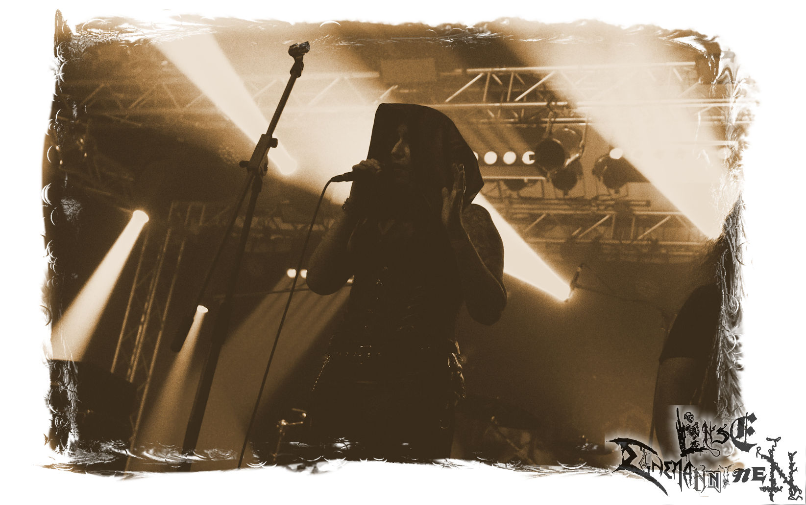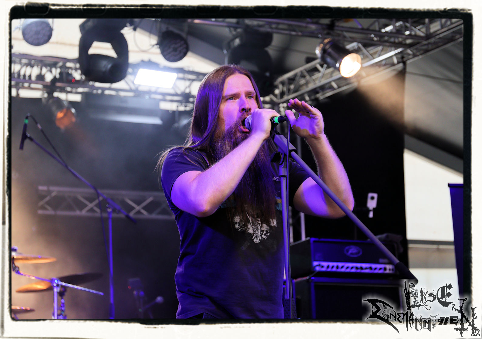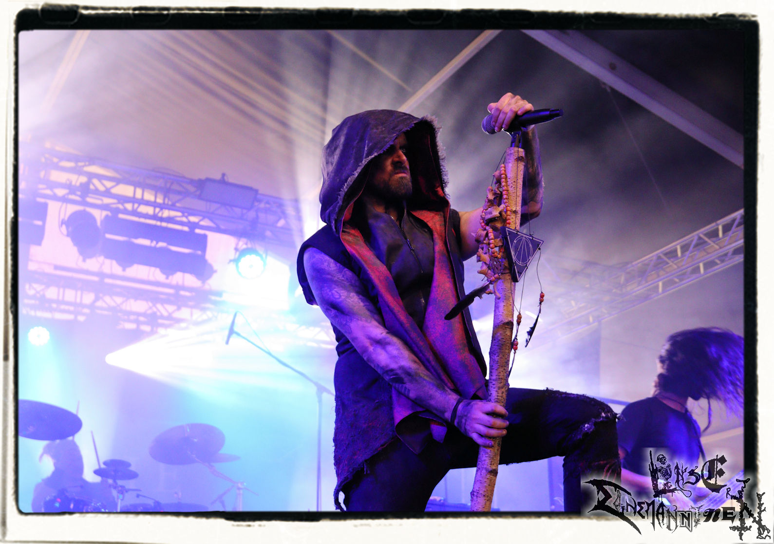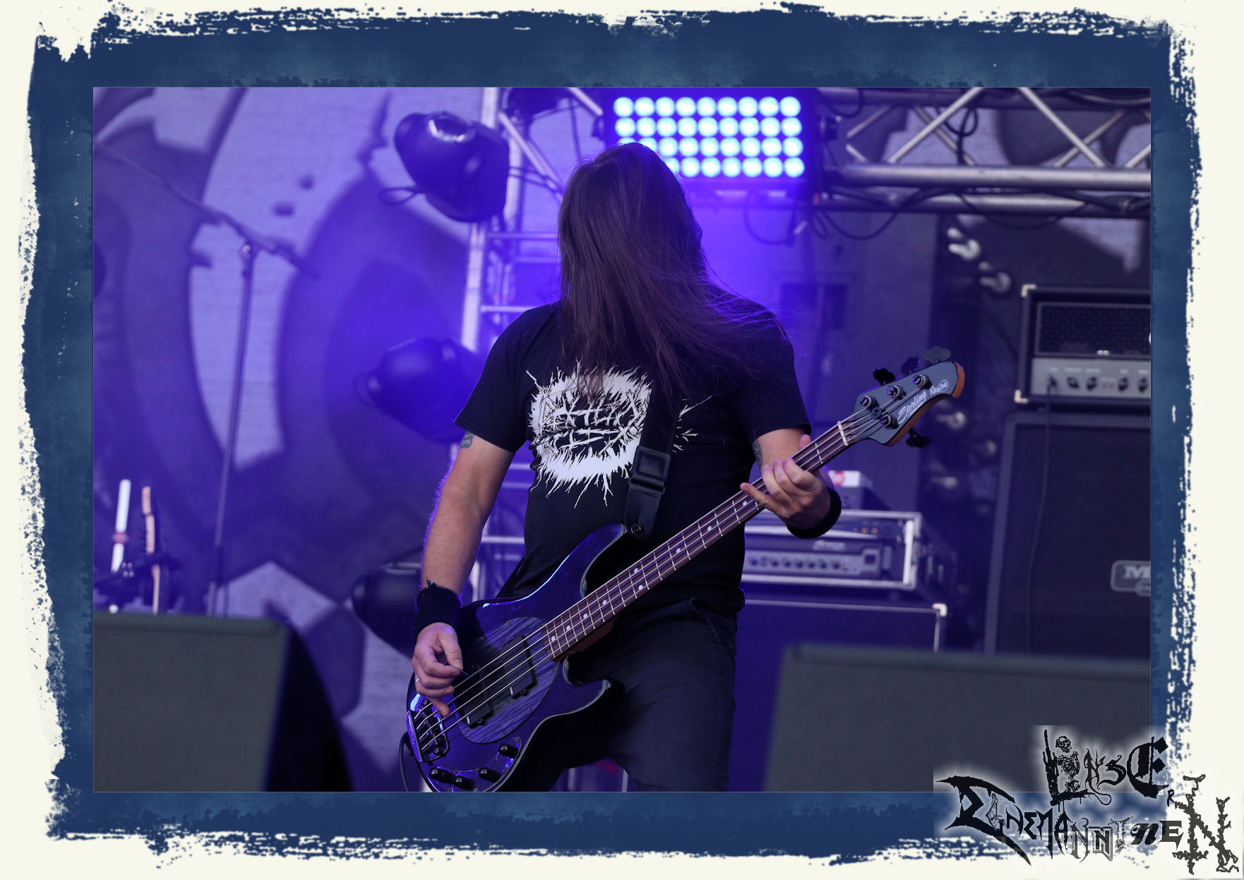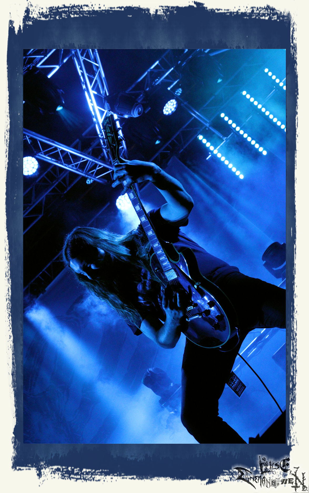 Mit EIS wird der Abend eingeläutet. Die Band aus dem Lupus Lounge – Stall ist wie geschaffen für das Zelt auf dem PARTY.SAN METAL OPEN AIR und beweist eindrucksvoll, wie man Atmosphäre mit mitreißenden Black Metal – Songs kombiniert. Bandkopf Alboin ist gleichzeitig Fan und Vollblutmusiker, der mit den Schwarzmetall-Größen der Neunziger aufgewachsen ist, wobei seine Musik sowohl von diesen, als auch von seiner Bewunderung gegenüber prägenden heimischen Acts wie Helrunar oder auch dem Wirken von Schwadorf mit Sun Of The Sleepless beeinflusst ist. Auch macht er keinen Hehl daraus, dass ihm die Einladung nach Schlotheim mit seiner Band als "Spätberufenem" sehr viel bedeutet. Und diese Haltung schwingt in diesem Konzert mit. Egal, ob Songs vom 2005er-Album "Galeere" ("Durch lichtlose Tiefen", seinerzeit noch unter dem Bandvorgänger Geist veröffentlicht (aus namensrechtlichen Gründen musste man sich danach in Eis umbenennen), vom bisher jüngsten Album "Bannstein" oder vom Klassiker "Wetterkreuz" (2012), der heuer auch schon zehn Jahre auf dem Buckel hat, gespielt werden. Eis zünden ein kleines Highlight, das mir noch lange in Erinnerung bleiben und mich animiert, mir die Scheiben mal wieder zu Gemüte zu führen. Danke!(JD)