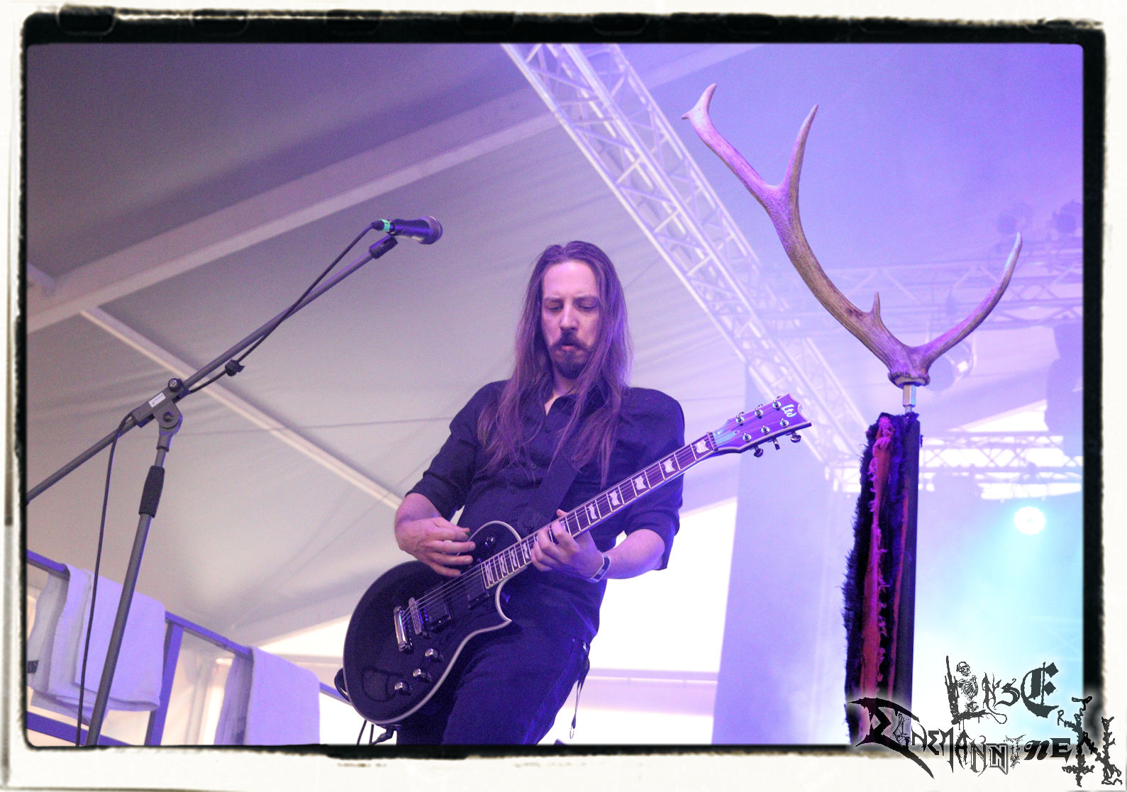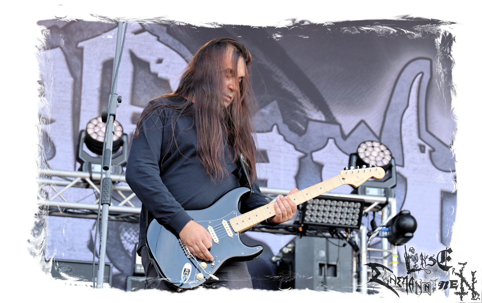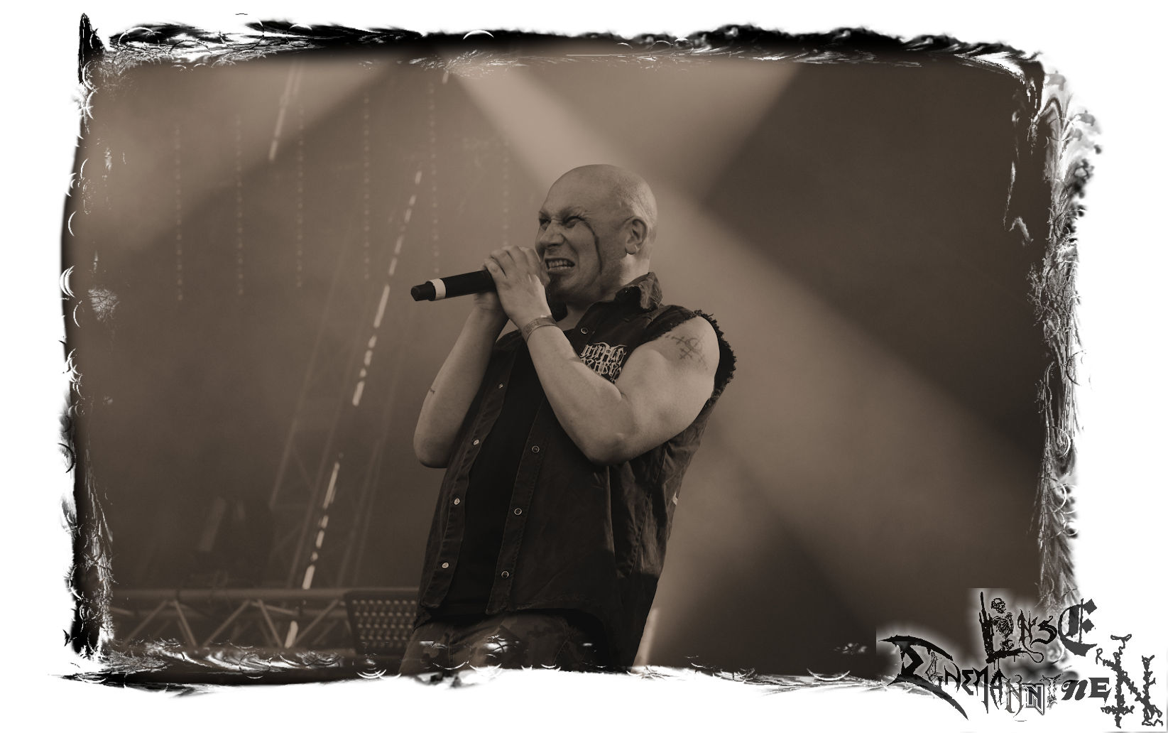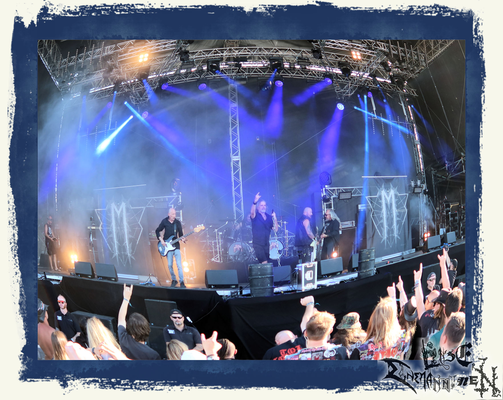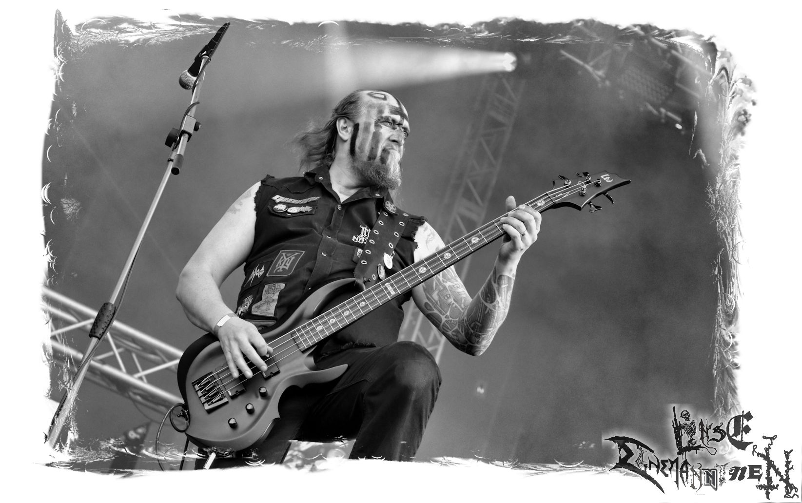 Mit EIS wird der Abend eingeläutet. Die Band aus dem Lupus Lounge – Stall ist wie geschaffen für das Zelt auf dem PARTY.SAN METAL OPEN AIR und beweist eindrucksvoll, wie man Atmosphäre mit mitreißenden Black Metal – Songs kombiniert. Bandkopf Alboin ist gleichzeitig Fan und Vollblutmusiker, der mit den Schwarzmetall-Größen der Neunziger aufgewachsen ist, wobei seine Musik sowohl von diesen, als auch von seiner Bewunderung gegenüber prägenden heimischen Acts wie Helrunar oder auch dem Wirken von Schwadorf mit Sun Of The Sleepless beeinflusst ist. Auch macht er keinen Hehl daraus, dass ihm die Einladung nach Schlotheim mit seiner Band als "Spätberufenem" sehr viel bedeutet. Und diese Haltung schwingt in diesem Konzert mit. Egal, ob Songs vom 2005er-Album "Galeere" ("Durch lichtlose Tiefen", seinerzeit noch unter dem Bandvorgänger Geist veröffentlicht (aus namensrechtlichen Gründen musste man sich danach in Eis umbenennen), vom bisher jüngsten Album "Bannstein" oder vom Klassiker "Wetterkreuz" (2012), der heuer auch schon zehn Jahre auf dem Buckel hat, gespielt werden. Eis zünden ein kleines Highlight, das mir noch lange in Erinnerung bleiben und mich animiert, mir die Scheiben mal wieder zu Gemüte zu führen. Danke!(JD)