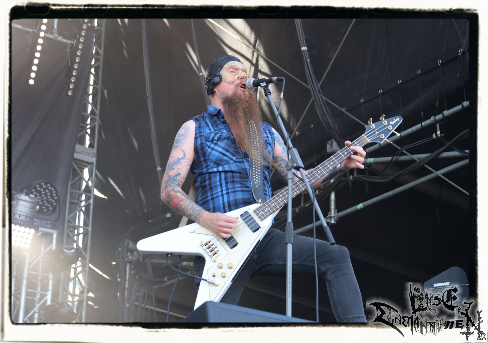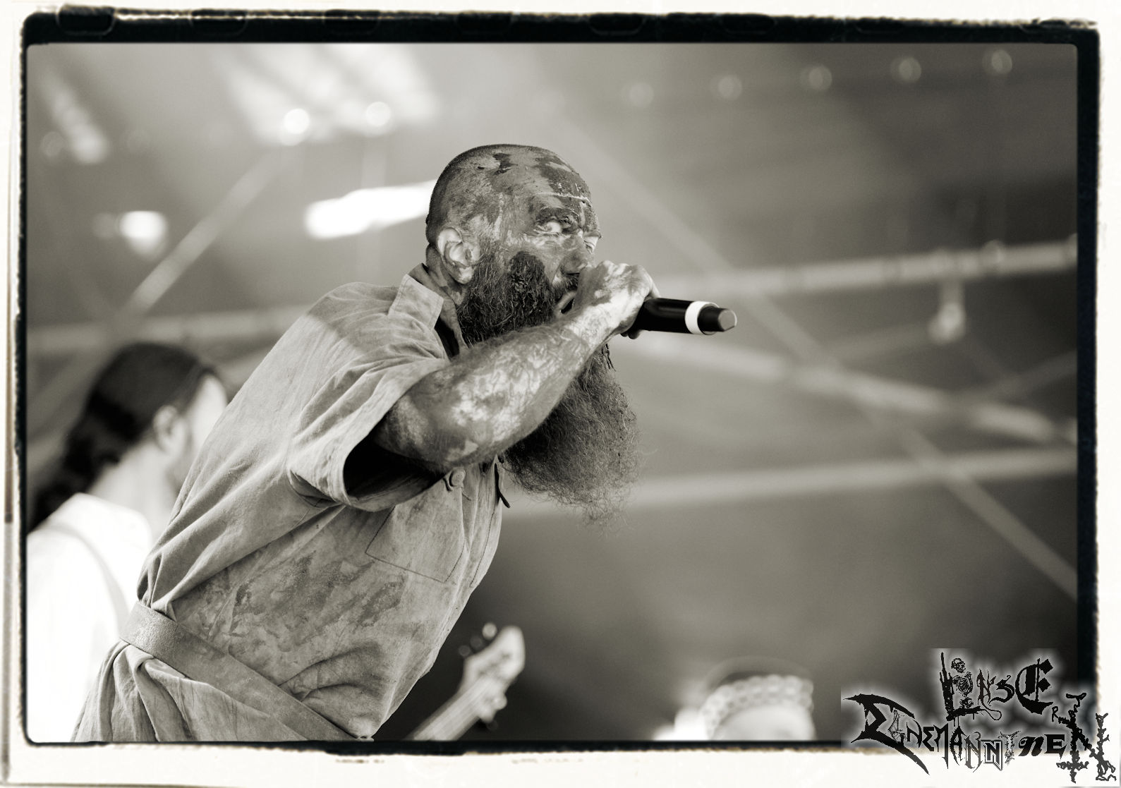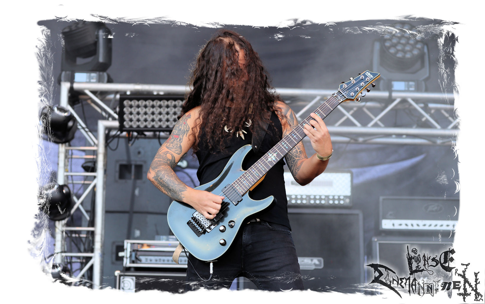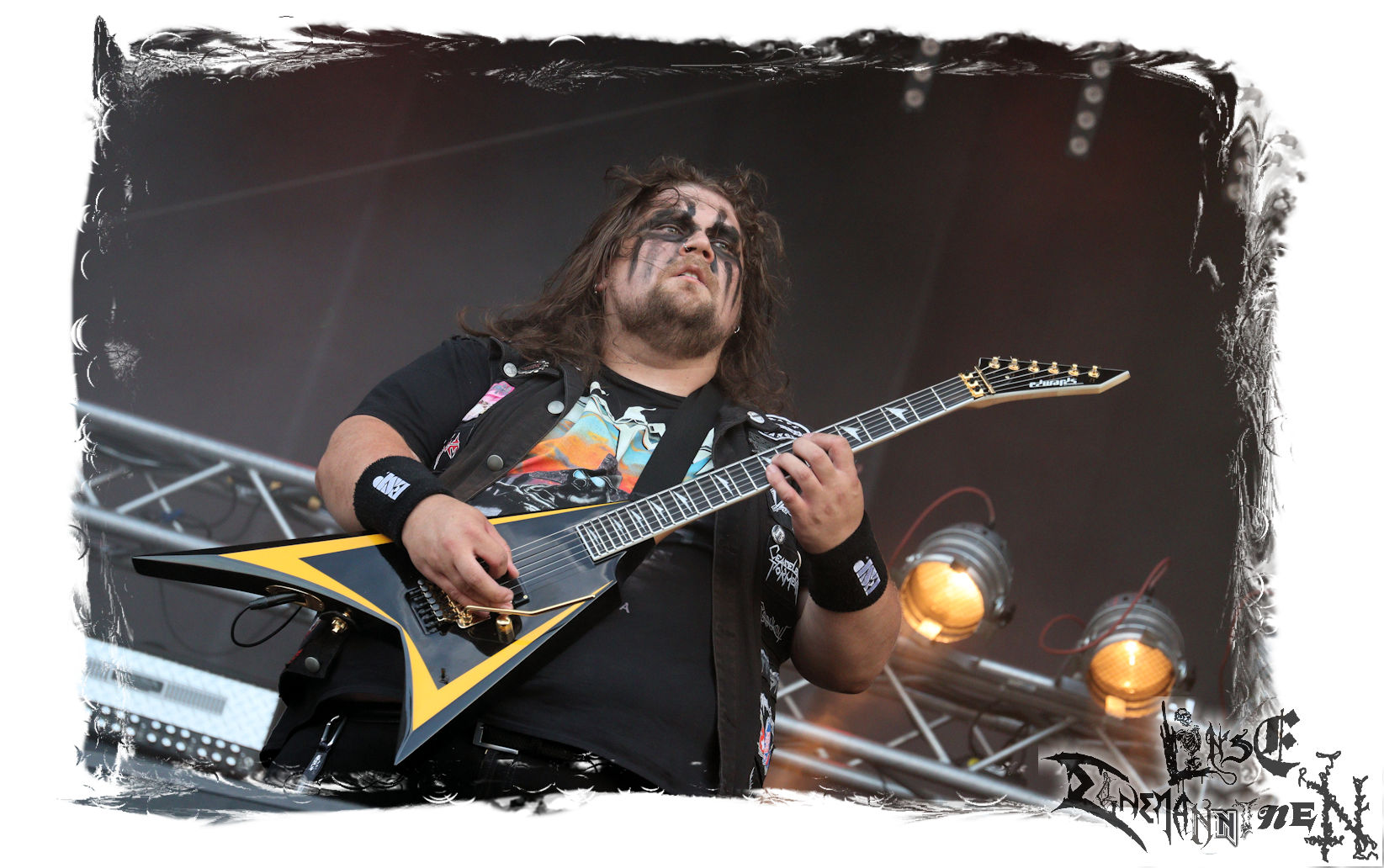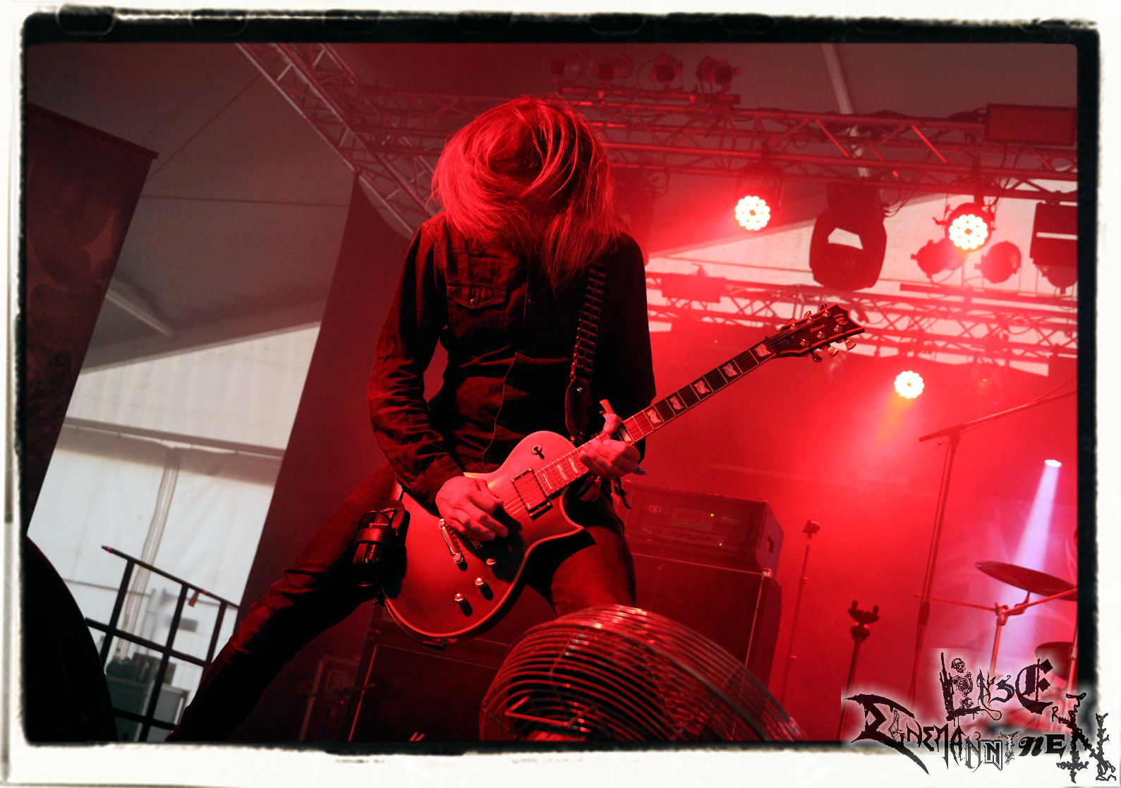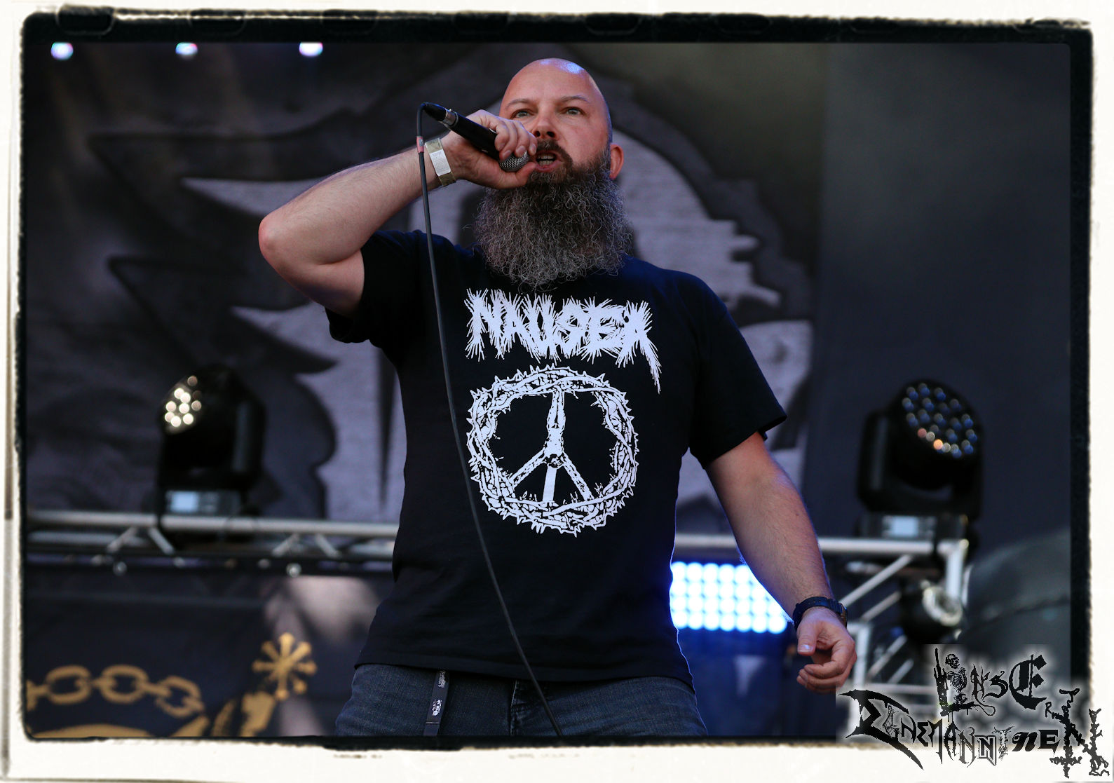 Mit EIS wird der Abend eingeläutet. Die Band aus dem Lupus Lounge – Stall ist wie geschaffen für das Zelt auf dem PARTY.SAN METAL OPEN AIR und beweist eindrucksvoll, wie man Atmosphäre mit mitreißenden Black Metal – Songs kombiniert. Bandkopf Alboin ist gleichzeitig Fan und Vollblutmusiker, der mit den Schwarzmetall-Größen der Neunziger aufgewachsen ist, wobei seine Musik sowohl von diesen, als auch von seiner Bewunderung gegenüber prägenden heimischen Acts wie Helrunar oder auch dem Wirken von Schwadorf mit Sun Of The Sleepless beeinflusst ist. Auch macht er keinen Hehl daraus, dass ihm die Einladung nach Schlotheim mit seiner Band als "Spätberufenem" sehr viel bedeutet. Und diese Haltung schwingt in diesem Konzert mit. Egal, ob Songs vom 2005er-Album "Galeere" ("Durch lichtlose Tiefen", seinerzeit noch unter dem Bandvorgänger Geist veröffentlicht (aus namensrechtlichen Gründen musste man sich danach in Eis umbenennen), vom bisher jüngsten Album "Bannstein" oder vom Klassiker "Wetterkreuz" (2012), der heuer auch schon zehn Jahre auf dem Buckel hat, gespielt werden. Eis zünden ein kleines Highlight, das mir noch lange in Erinnerung bleiben und mich animiert, mir die Scheiben mal wieder zu Gemüte zu führen. Danke!(JD)