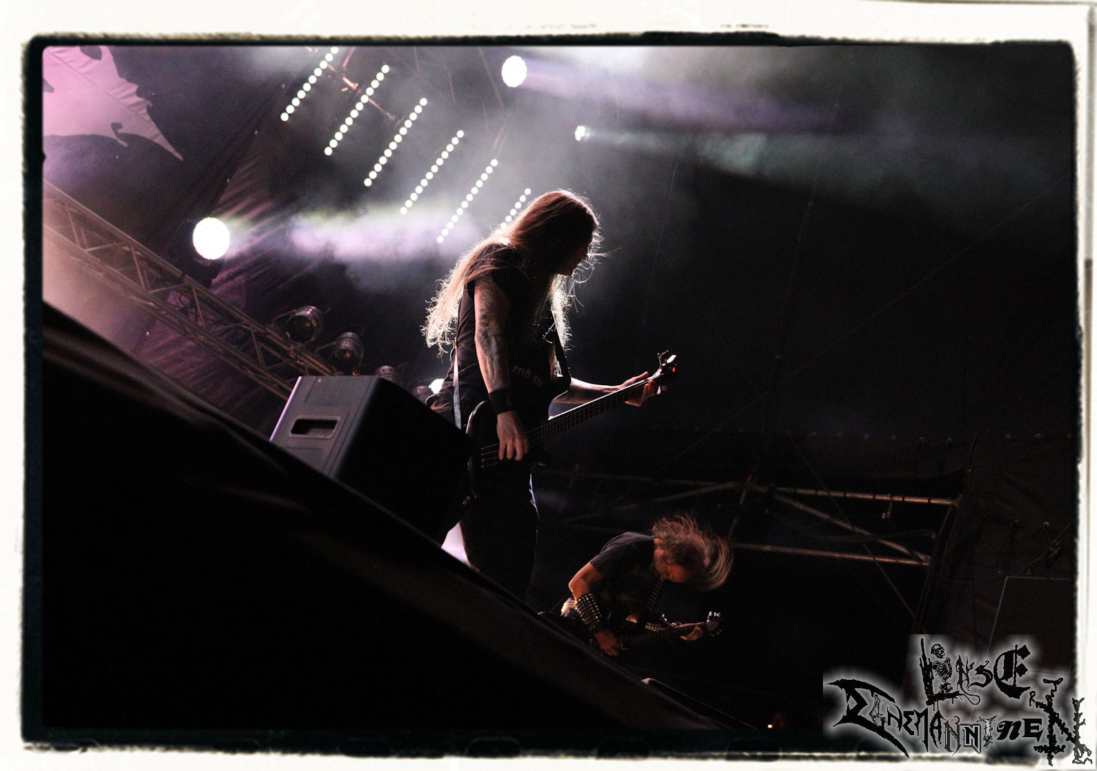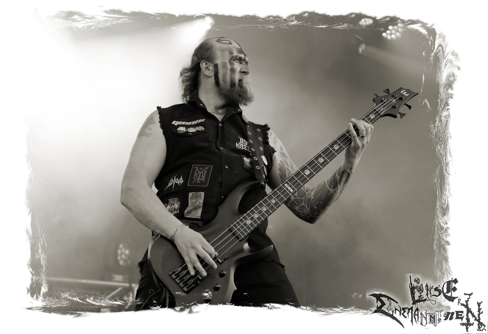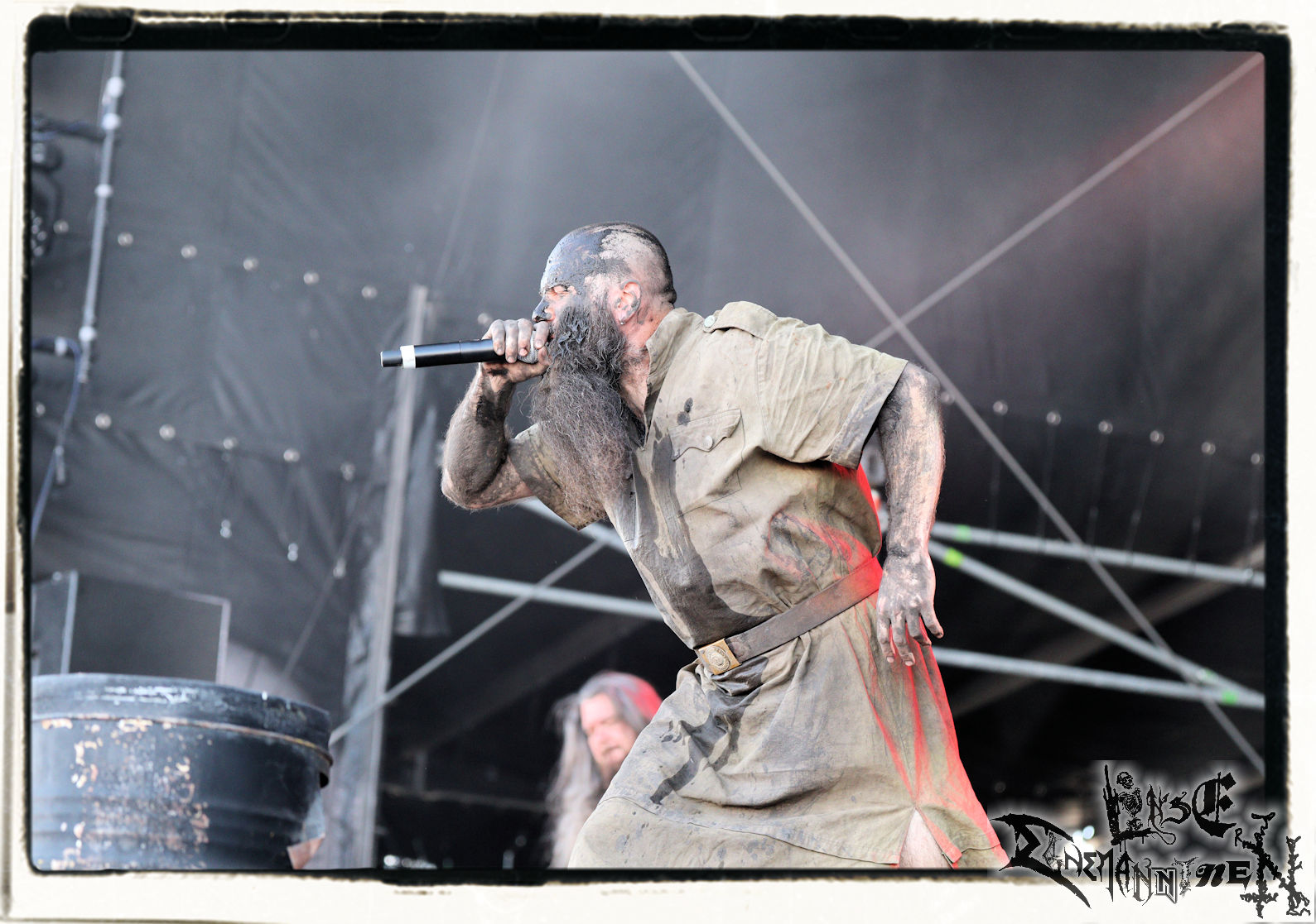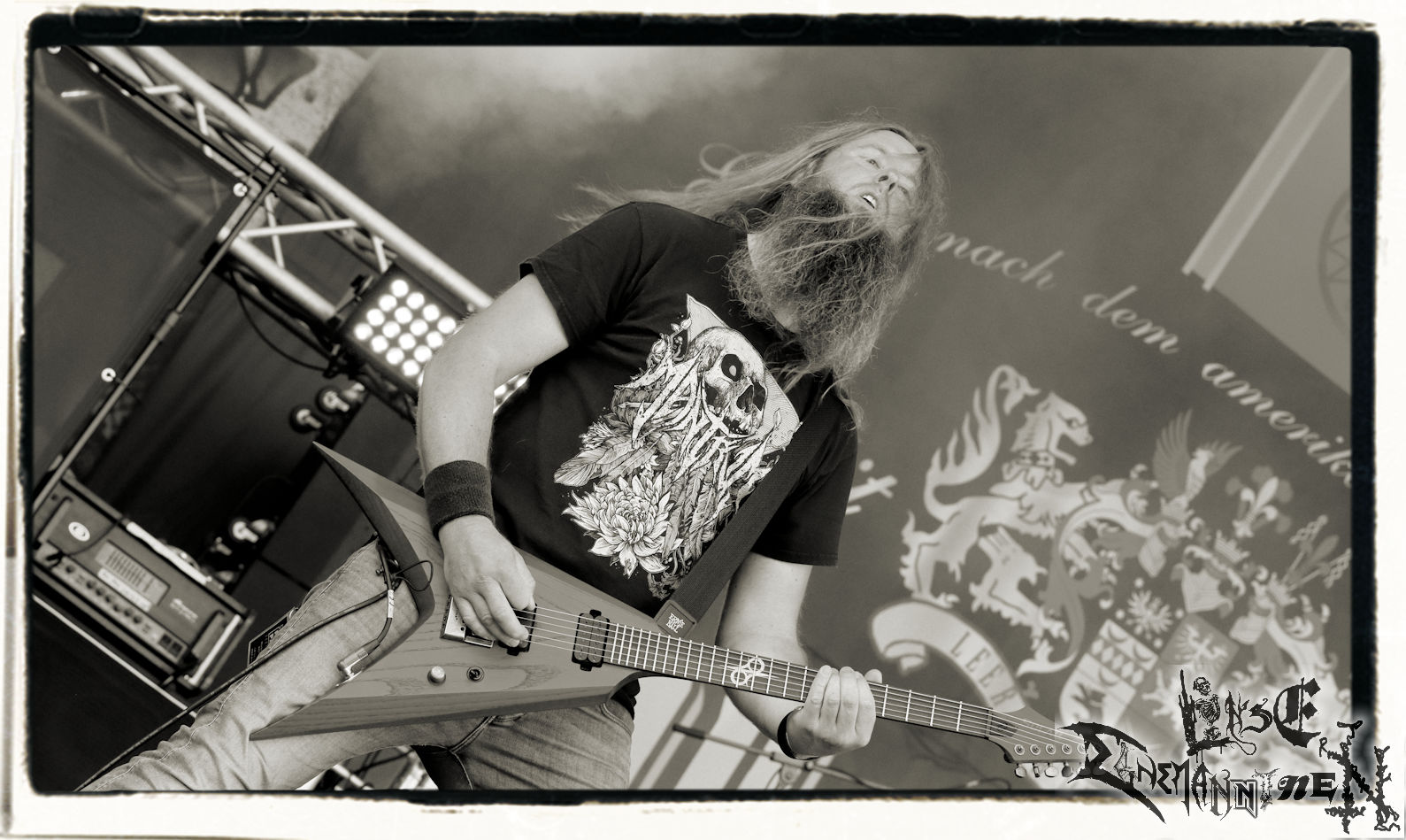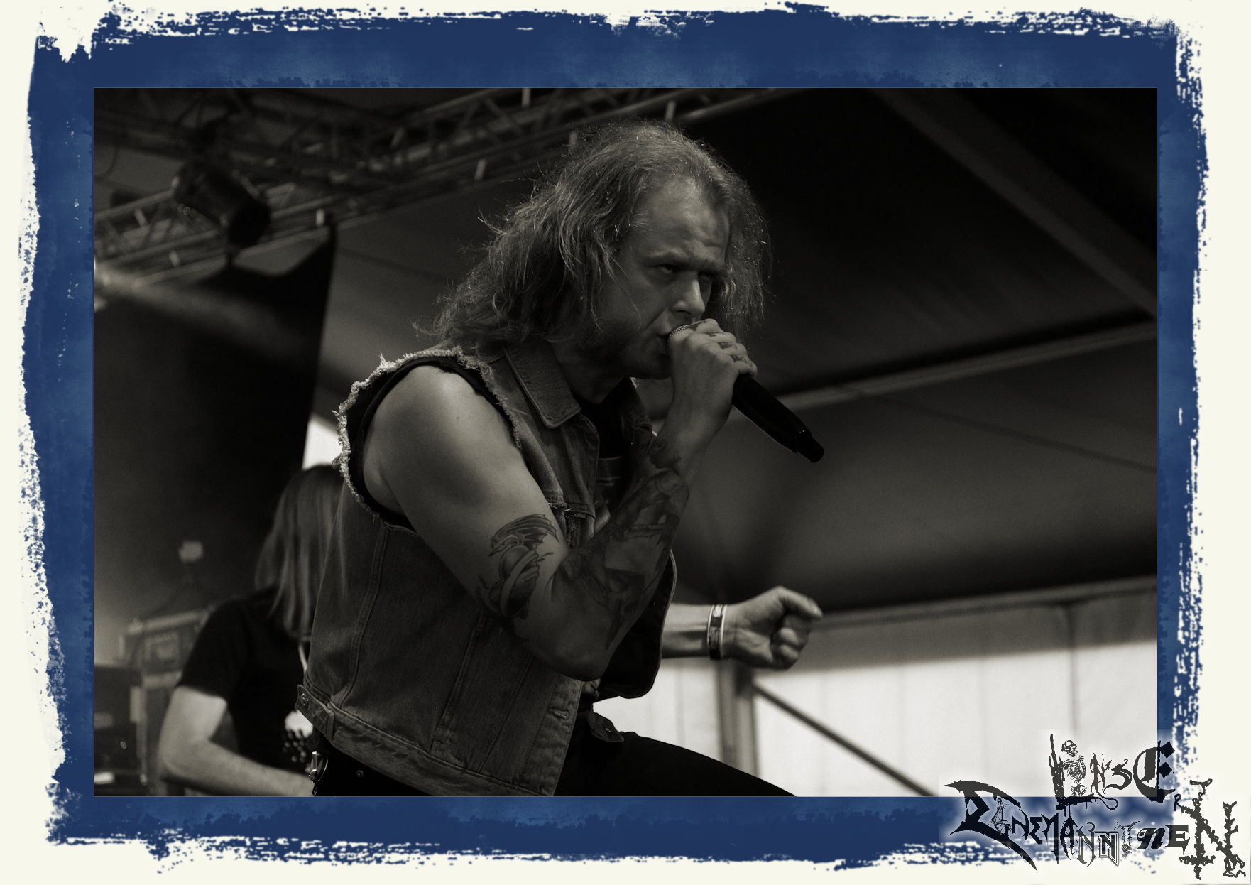 Mit EIS wird der Abend eingeläutet. Die Band aus dem Lupus Lounge – Stall ist wie geschaffen für das Zelt auf dem PARTY.SAN METAL OPEN AIR und beweist eindrucksvoll, wie man Atmosphäre mit mitreißenden Black Metal – Songs kombiniert. Bandkopf Alboin ist gleichzeitig Fan und Vollblutmusiker, der mit den Schwarzmetall-Größen der Neunziger aufgewachsen ist, wobei seine Musik sowohl von diesen, als auch von seiner Bewunderung gegenüber prägenden heimischen Acts wie Helrunar oder auch dem Wirken von Schwadorf mit Sun Of The Sleepless beeinflusst ist. Auch macht er keinen Hehl daraus, dass ihm die Einladung nach Schlotheim mit seiner Band als "Spätberufenem" sehr viel bedeutet. Und diese Haltung schwingt in diesem Konzert mit. Egal, ob Songs vom 2005er-Album "Galeere" ("Durch lichtlose Tiefen", seinerzeit noch unter dem Bandvorgänger Geist veröffentlicht (aus namensrechtlichen Gründen musste man sich danach in Eis umbenennen), vom bisher jüngsten Album "Bannstein" oder vom Klassiker "Wetterkreuz" (2012), der heuer auch schon zehn Jahre auf dem Buckel hat, gespielt werden. Eis zünden ein kleines Highlight, das mir noch lange in Erinnerung bleiben und mich animiert, mir die Scheiben mal wieder zu Gemüte zu führen. Danke!(JD)