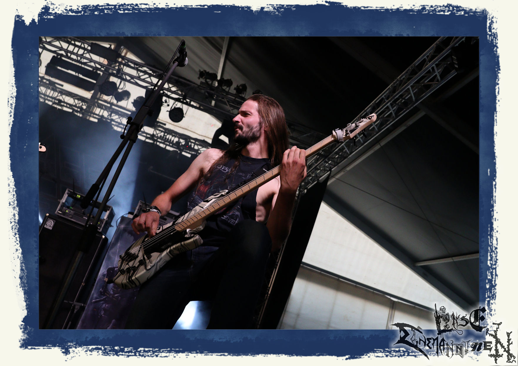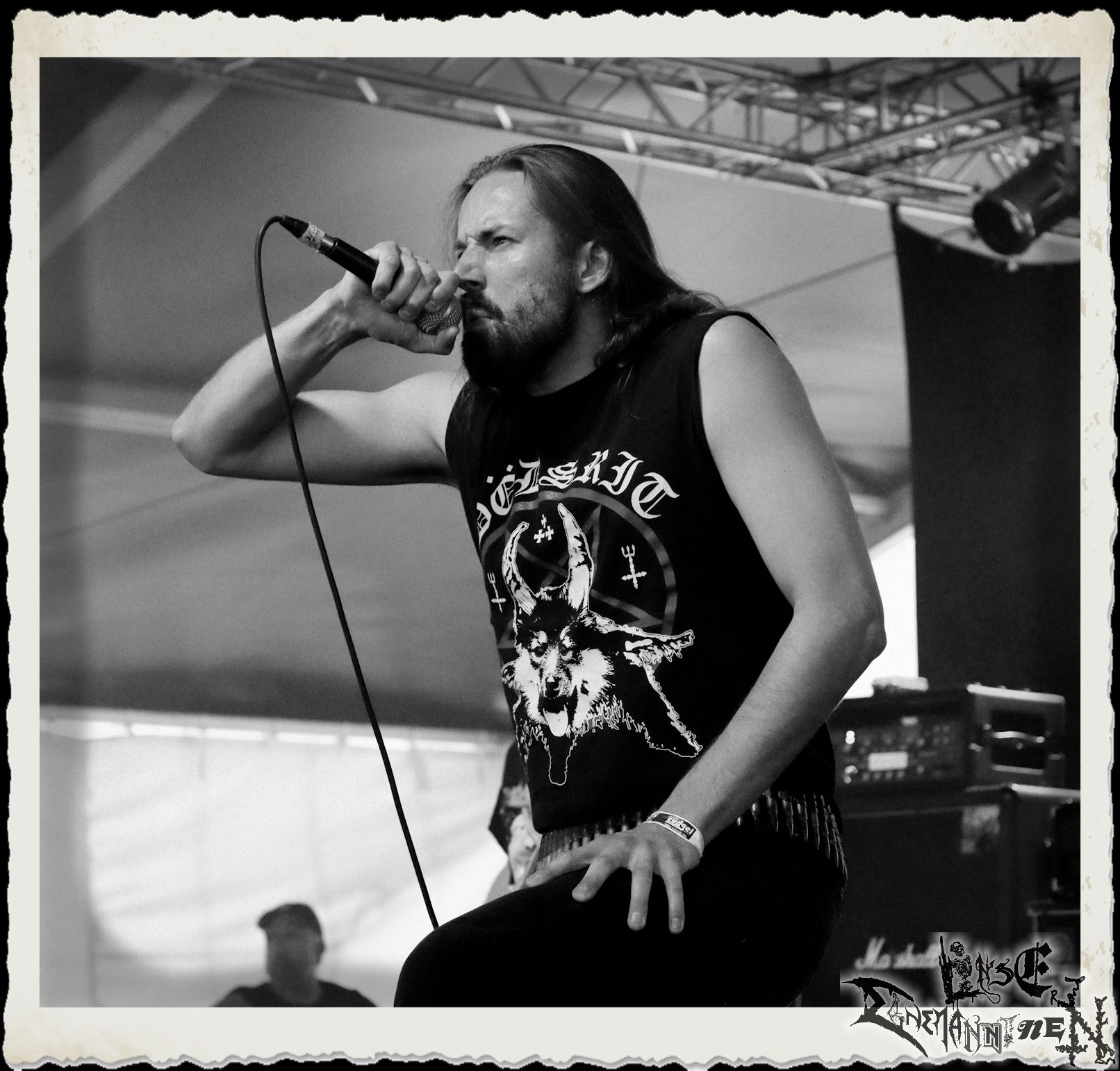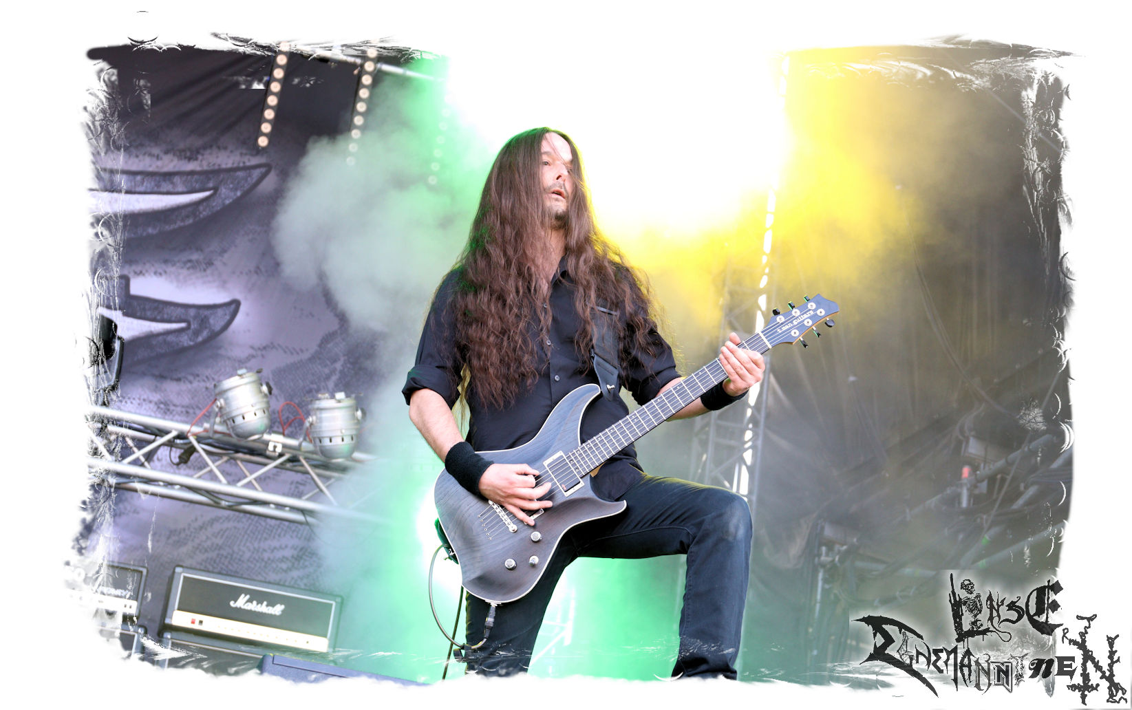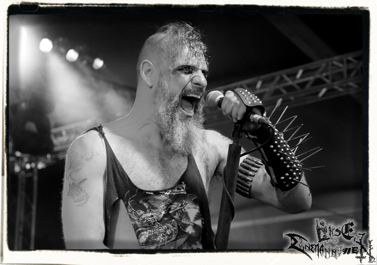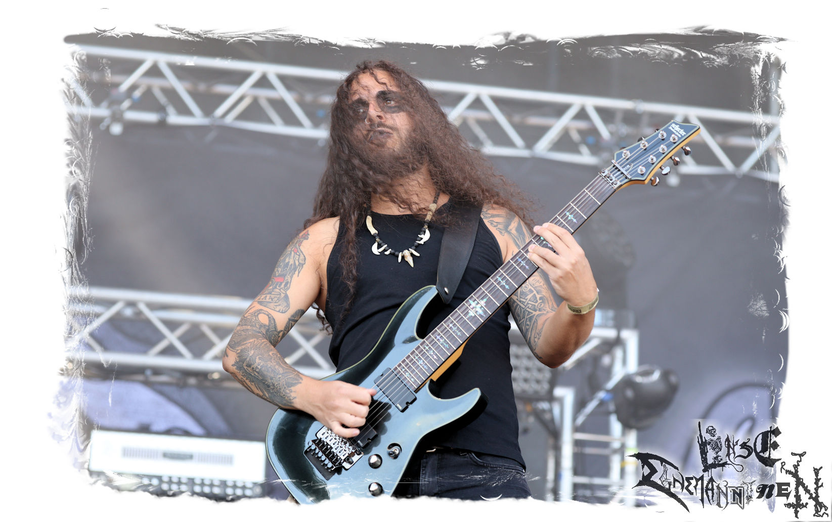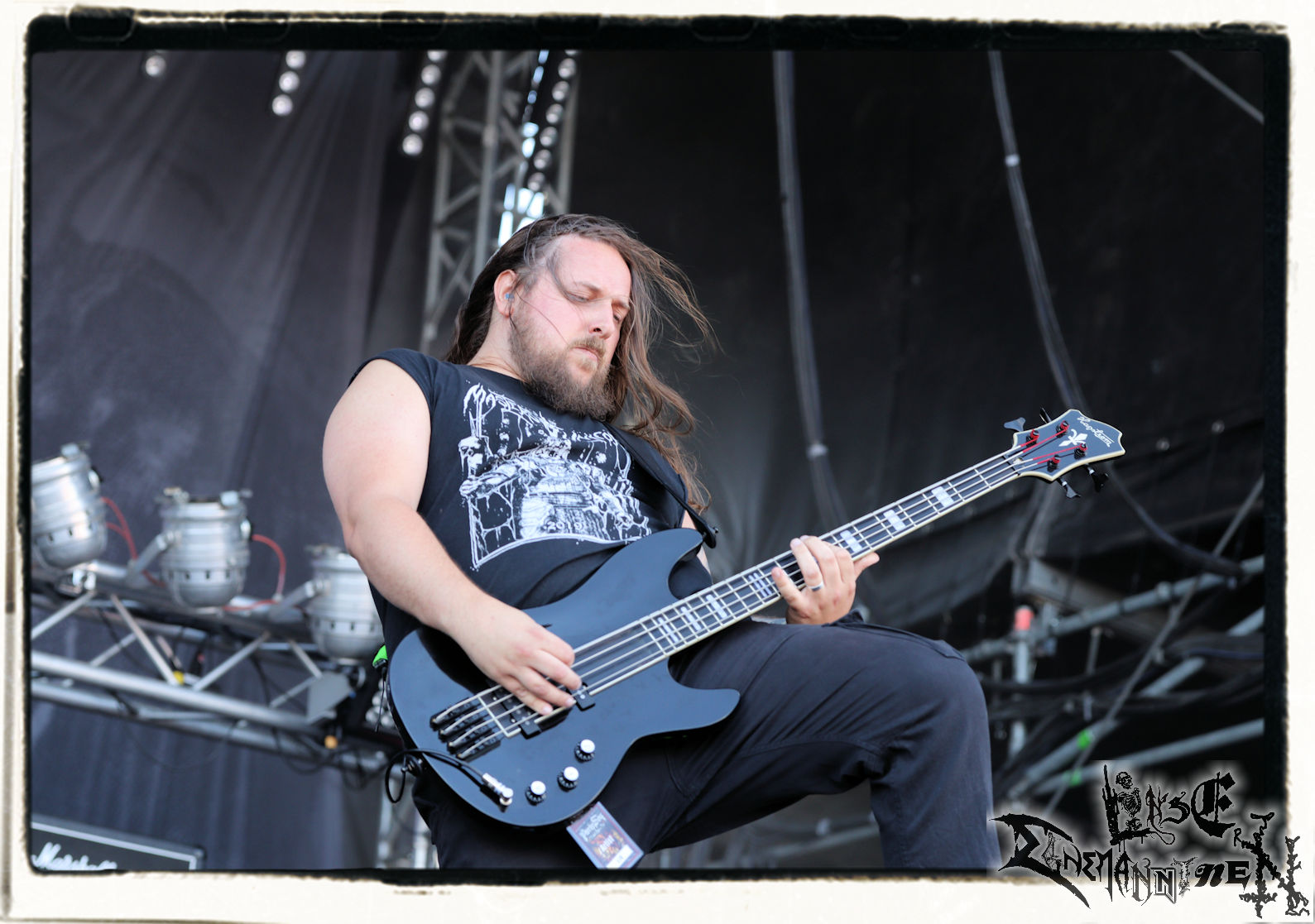 Mit EIS wird der Abend eingeläutet. Die Band aus dem Lupus Lounge – Stall ist wie geschaffen für das Zelt auf dem PARTY.SAN METAL OPEN AIR und beweist eindrucksvoll, wie man Atmosphäre mit mitreißenden Black Metal – Songs kombiniert. Bandkopf Alboin ist gleichzeitig Fan und Vollblutmusiker, der mit den Schwarzmetall-Größen der Neunziger aufgewachsen ist, wobei seine Musik sowohl von diesen, als auch von seiner Bewunderung gegenüber prägenden heimischen Acts wie Helrunar oder auch dem Wirken von Schwadorf mit Sun Of The Sleepless beeinflusst ist. Auch macht er keinen Hehl daraus, dass ihm die Einladung nach Schlotheim mit seiner Band als "Spätberufenem" sehr viel bedeutet. Und diese Haltung schwingt in diesem Konzert mit. Egal, ob Songs vom 2005er-Album "Galeere" ("Durch lichtlose Tiefen", seinerzeit noch unter dem Bandvorgänger Geist veröffentlicht (aus namensrechtlichen Gründen musste man sich danach in Eis umbenennen), vom bisher jüngsten Album "Bannstein" oder vom Klassiker "Wetterkreuz" (2012), der heuer auch schon zehn Jahre auf dem Buckel hat, gespielt werden. Eis zünden ein kleines Highlight, das mir noch lange in Erinnerung bleiben und mich animiert, mir die Scheiben mal wieder zu Gemüte zu führen. Danke!(JD)