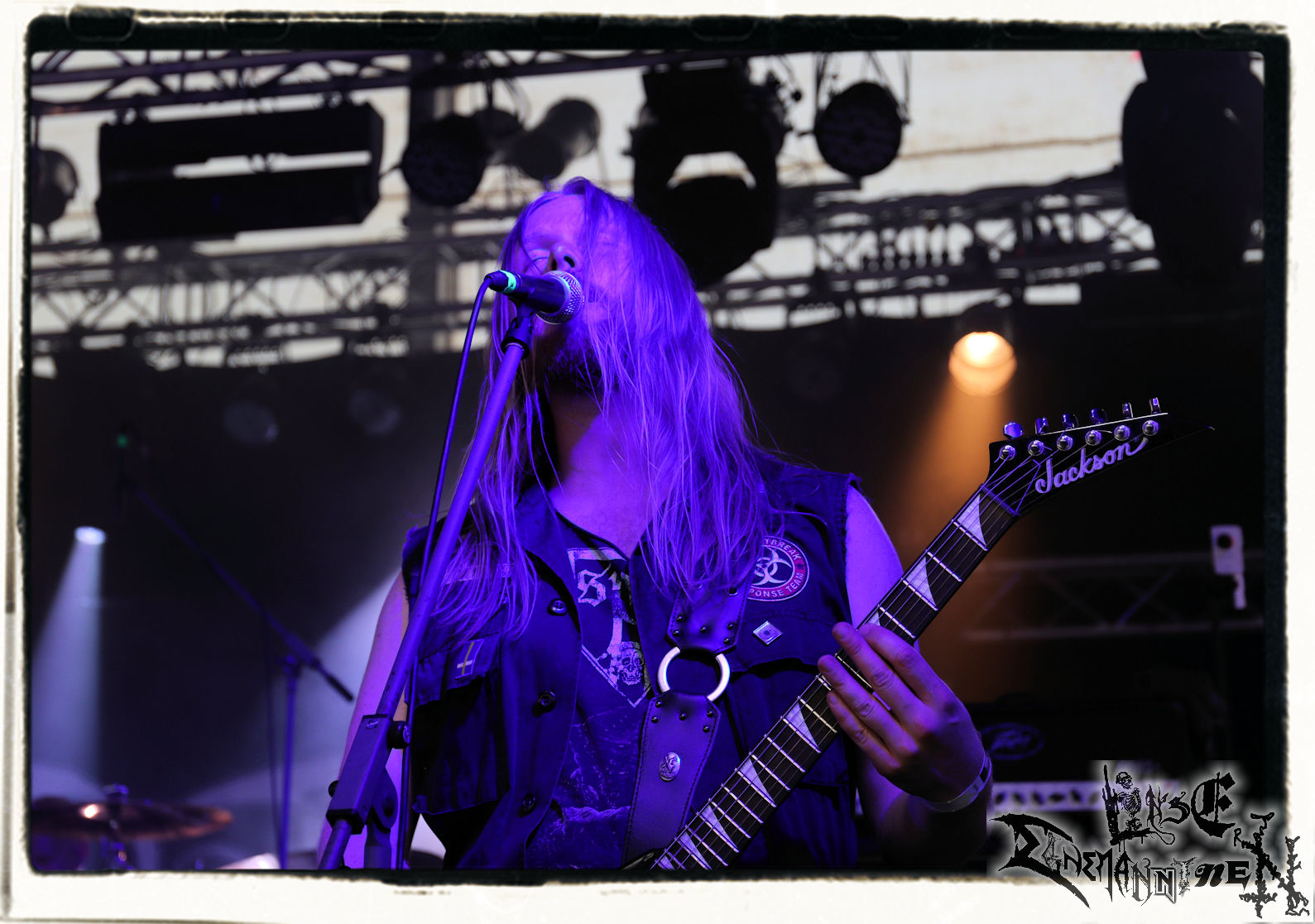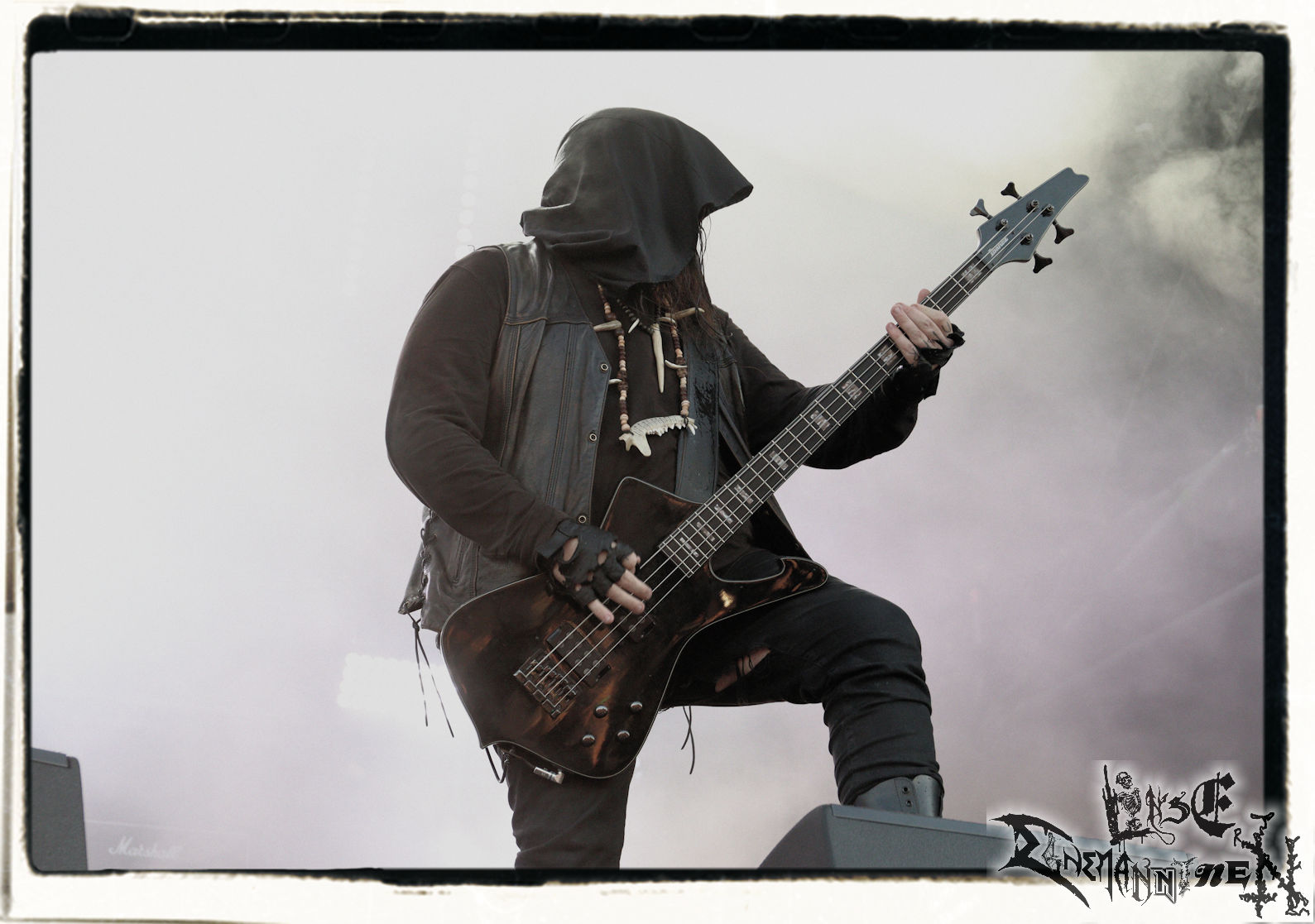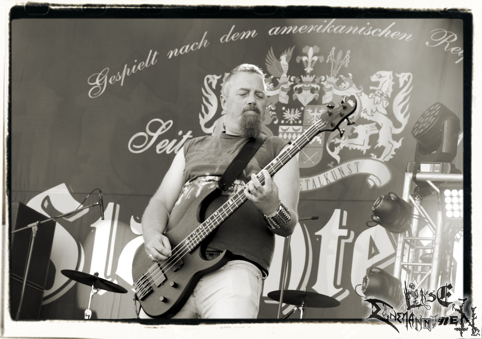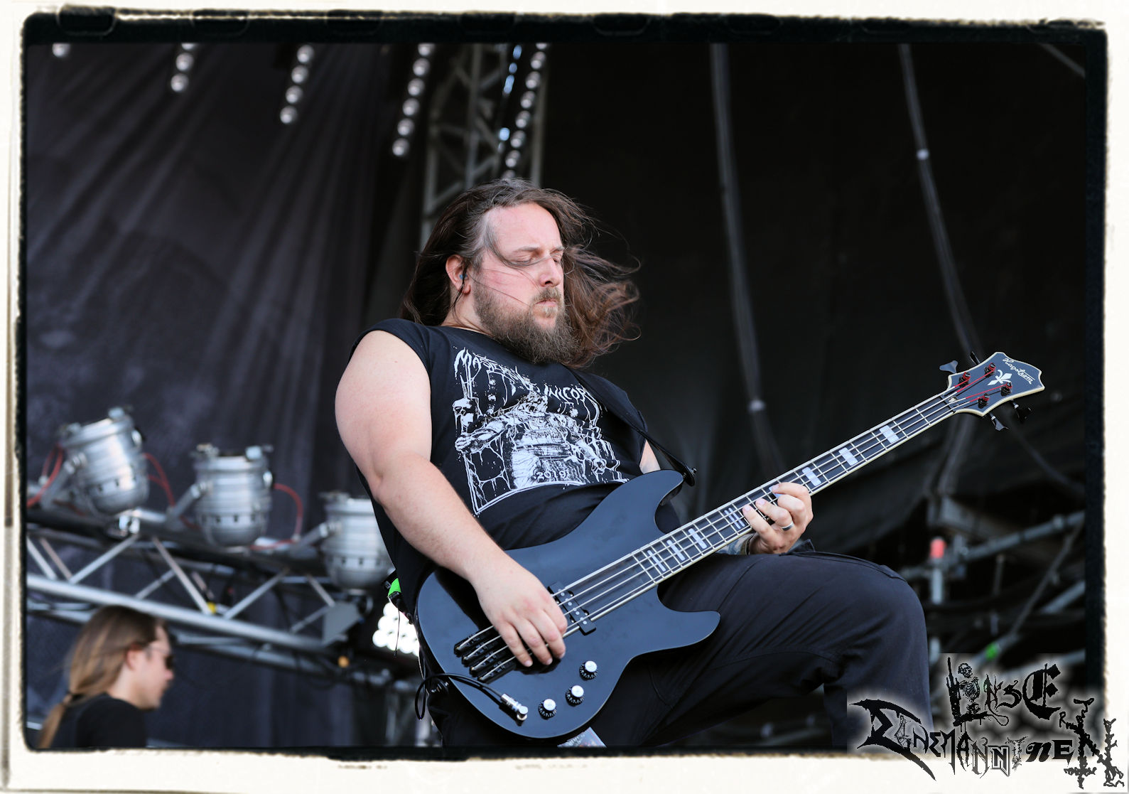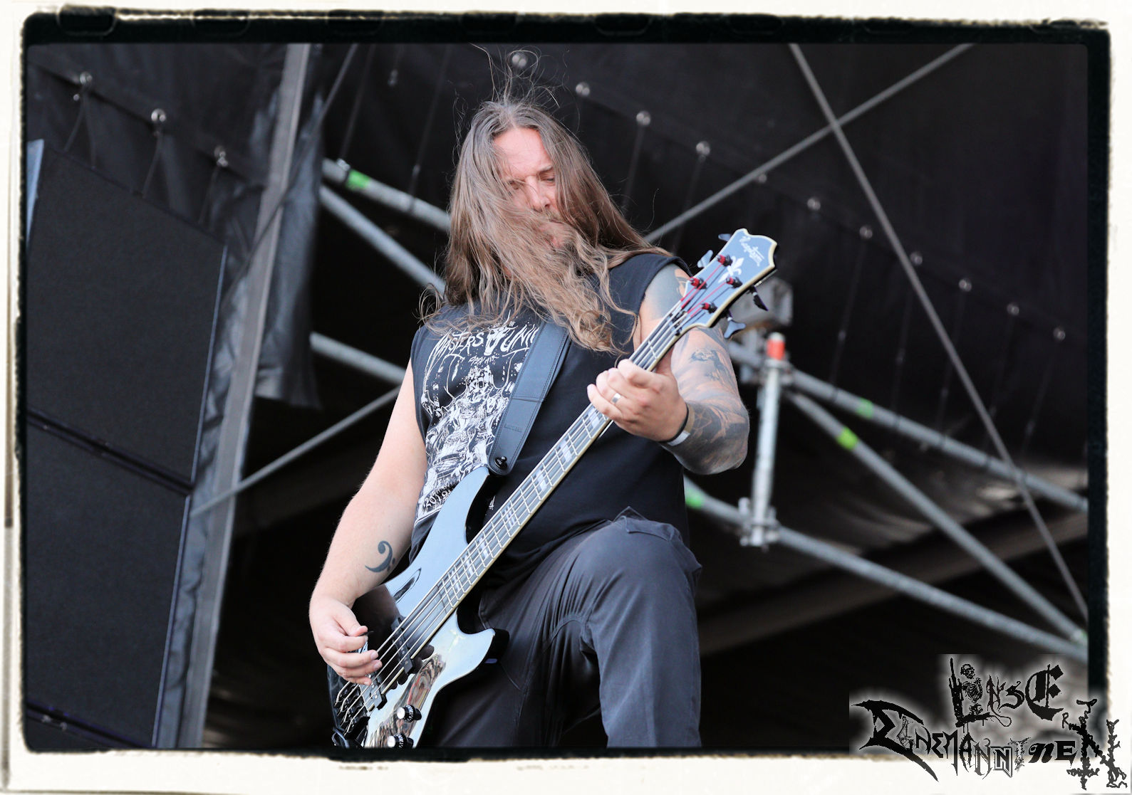 Mit EIS wird der Abend eingeläutet. Die Band aus dem Lupus Lounge – Stall ist wie geschaffen für das Zelt auf dem PARTY.SAN METAL OPEN AIR und beweist eindrucksvoll, wie man Atmosphäre mit mitreißenden Black Metal – Songs kombiniert. Bandkopf Alboin ist gleichzeitig Fan und Vollblutmusiker, der mit den Schwarzmetall-Größen der Neunziger aufgewachsen ist, wobei seine Musik sowohl von diesen, als auch von seiner Bewunderung gegenüber prägenden heimischen Acts wie Helrunar oder auch dem Wirken von Schwadorf mit Sun Of The Sleepless beeinflusst ist. Auch macht er keinen Hehl daraus, dass ihm die Einladung nach Schlotheim mit seiner Band als "Spätberufenem" sehr viel bedeutet. Und diese Haltung schwingt in diesem Konzert mit. Egal, ob Songs vom 2005er-Album "Galeere" ("Durch lichtlose Tiefen", seinerzeit noch unter dem Bandvorgänger Geist veröffentlicht (aus namensrechtlichen Gründen musste man sich danach in Eis umbenennen), vom bisher jüngsten Album "Bannstein" oder vom Klassiker "Wetterkreuz" (2012), der heuer auch schon zehn Jahre auf dem Buckel hat, gespielt werden. Eis zünden ein kleines Highlight, das mir noch lange in Erinnerung bleiben und mich animiert, mir die Scheiben mal wieder zu Gemüte zu führen. Danke!(JD)