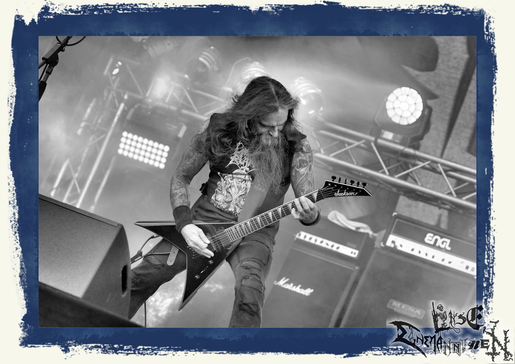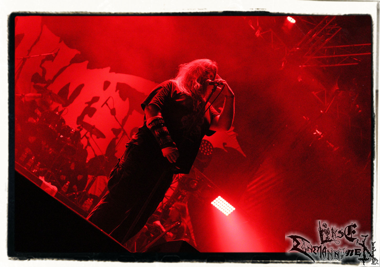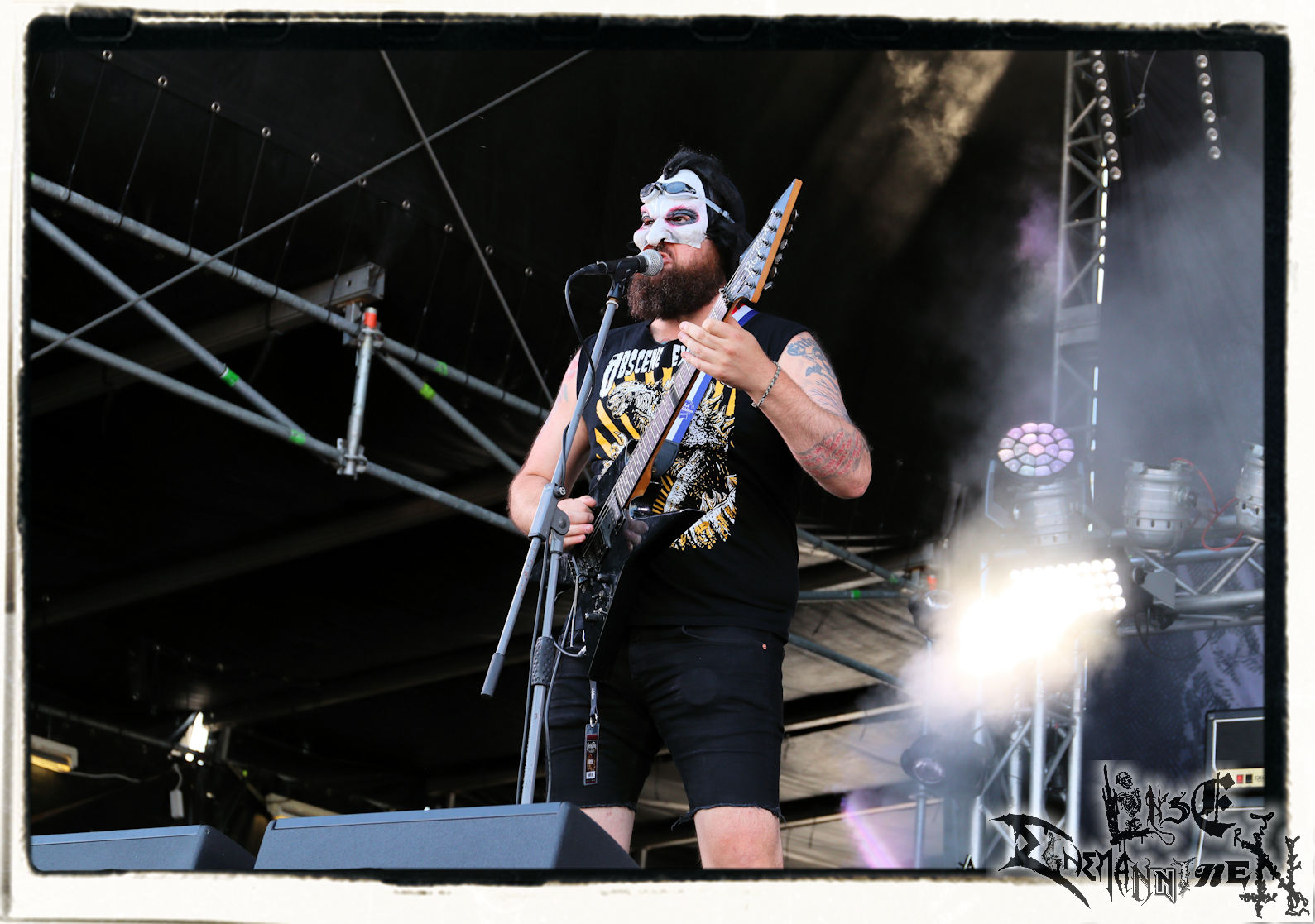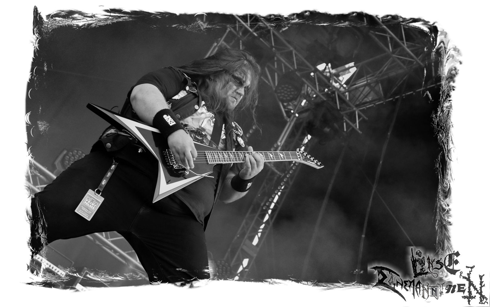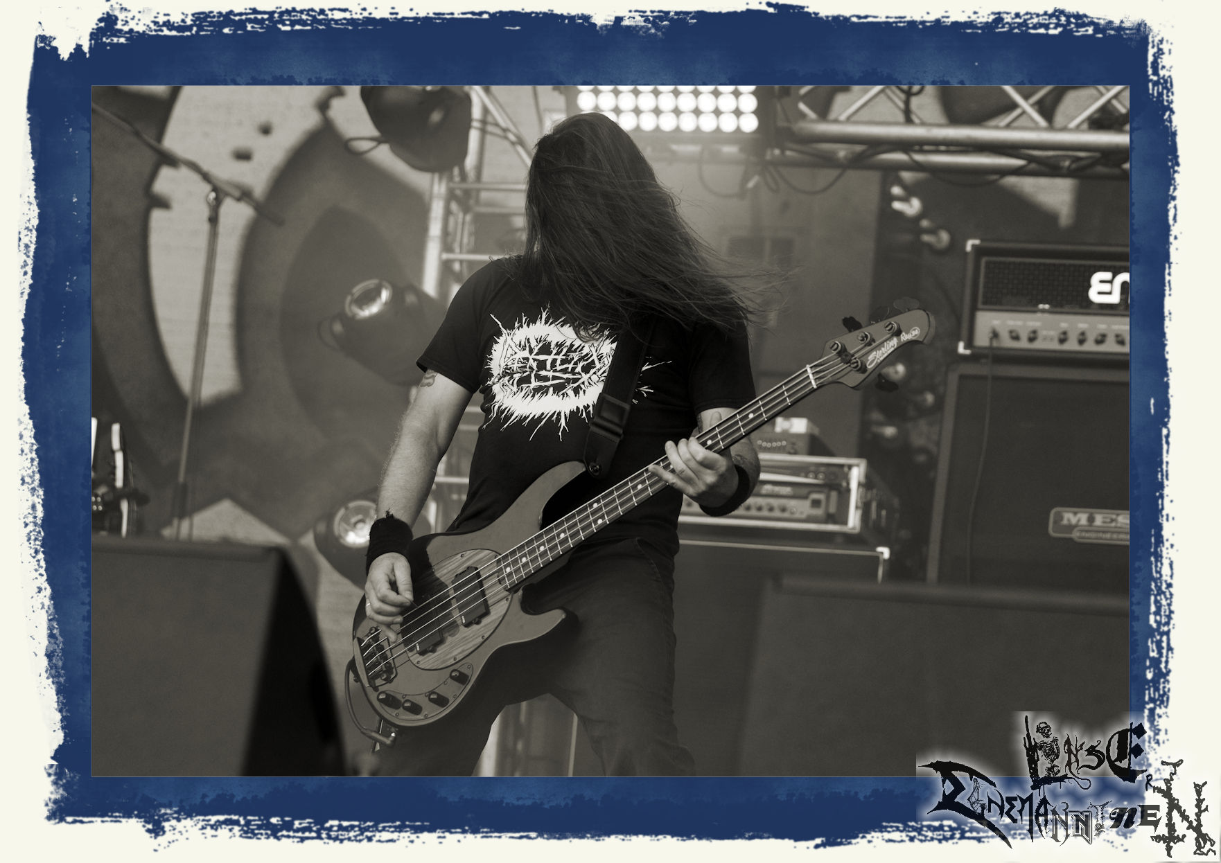 Mit EIS wird der Abend eingeläutet. Die Band aus dem Lupus Lounge – Stall ist wie geschaffen für das Zelt auf dem PARTY.SAN METAL OPEN AIR und beweist eindrucksvoll, wie man Atmosphäre mit mitreißenden Black Metal – Songs kombiniert. Bandkopf Alboin ist gleichzeitig Fan und Vollblutmusiker, der mit den Schwarzmetall-Größen der Neunziger aufgewachsen ist, wobei seine Musik sowohl von diesen, als auch von seiner Bewunderung gegenüber prägenden heimischen Acts wie Helrunar oder auch dem Wirken von Schwadorf mit Sun Of The Sleepless beeinflusst ist. Auch macht er keinen Hehl daraus, dass ihm die Einladung nach Schlotheim mit seiner Band als "Spätberufenem" sehr viel bedeutet. Und diese Haltung schwingt in diesem Konzert mit. Egal, ob Songs vom 2005er-Album "Galeere" ("Durch lichtlose Tiefen", seinerzeit noch unter dem Bandvorgänger Geist veröffentlicht (aus namensrechtlichen Gründen musste man sich danach in Eis umbenennen), vom bisher jüngsten Album "Bannstein" oder vom Klassiker "Wetterkreuz" (2012), der heuer auch schon zehn Jahre auf dem Buckel hat, gespielt werden. Eis zünden ein kleines Highlight, das mir noch lange in Erinnerung bleiben und mich animiert, mir die Scheiben mal wieder zu Gemüte zu führen. Danke!(JD)