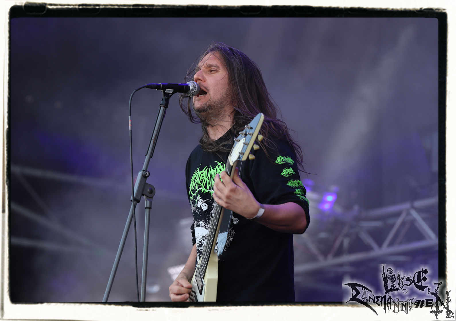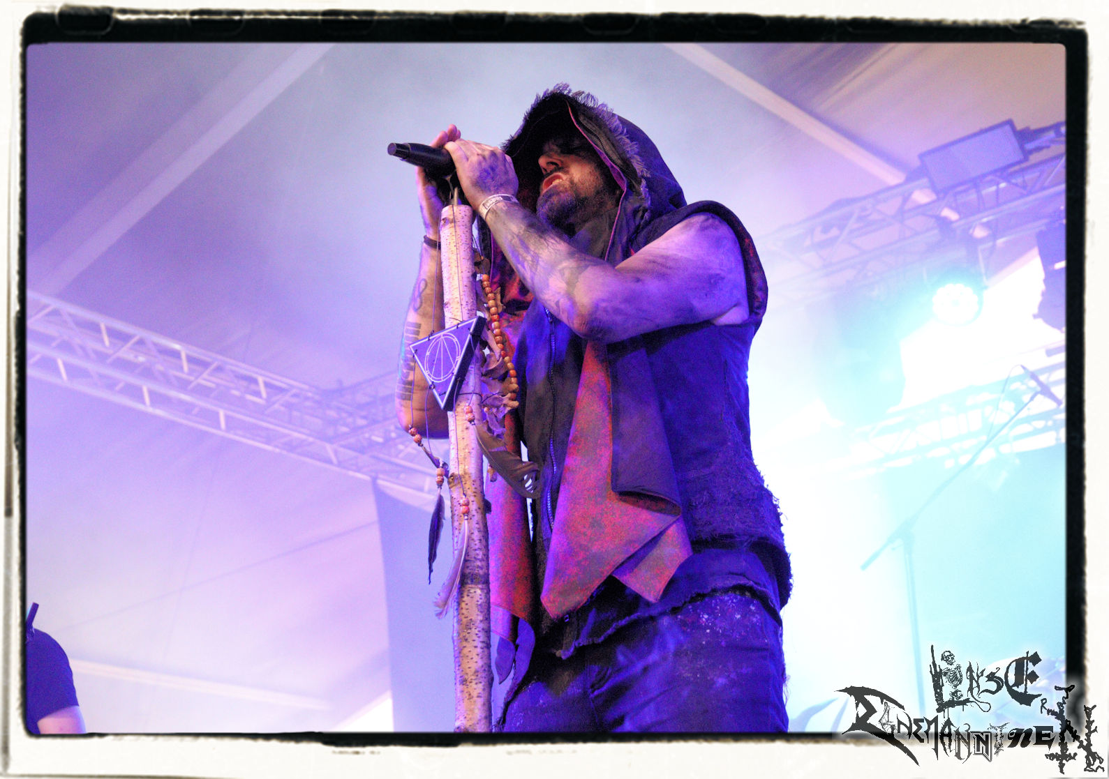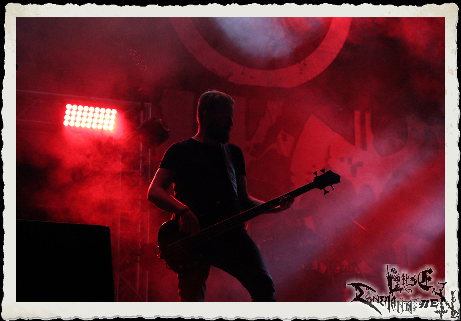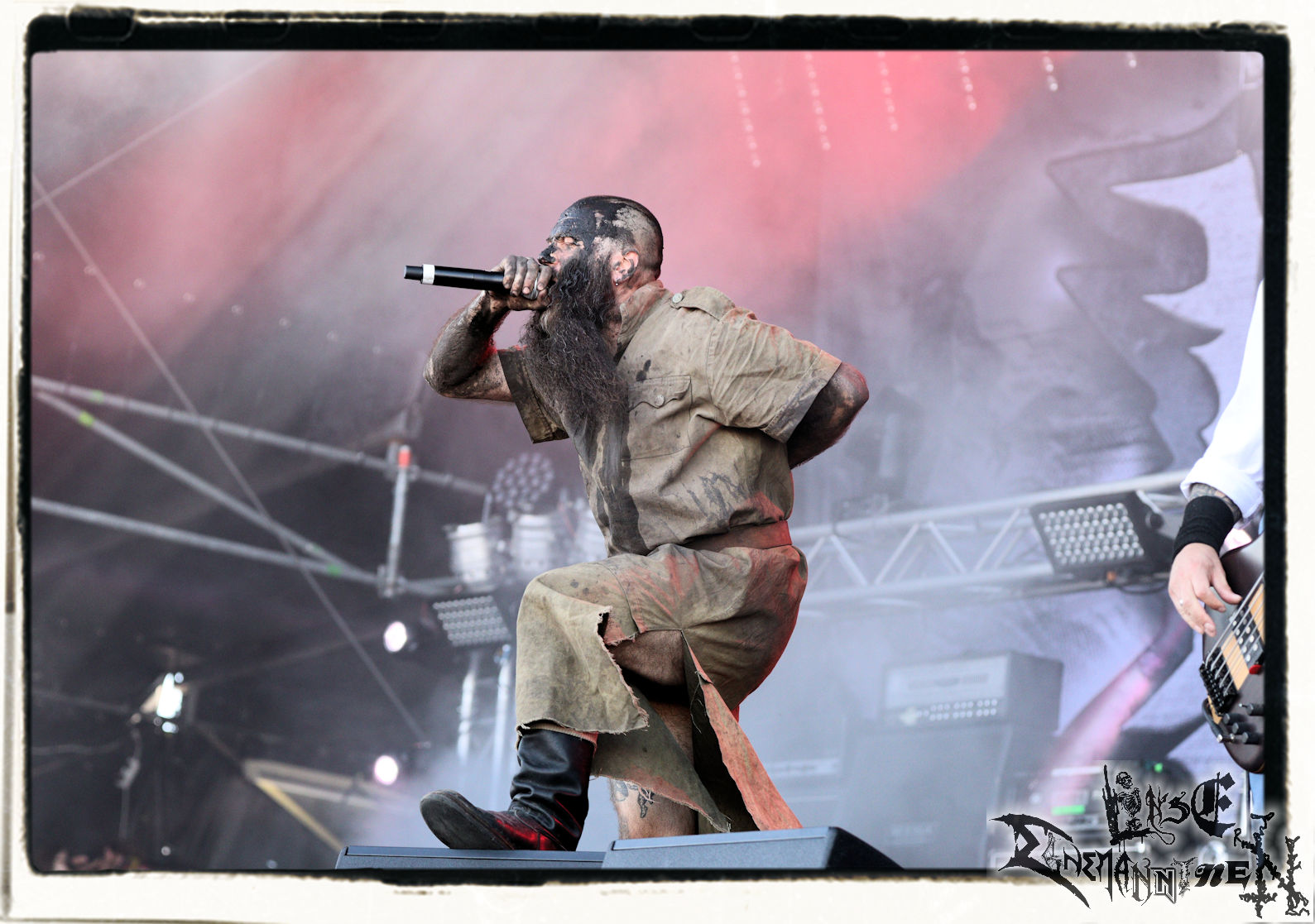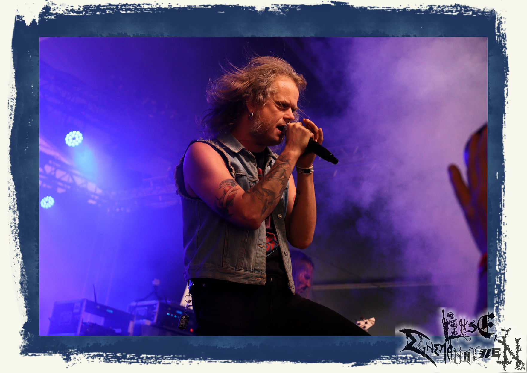 Mit EIS wird der Abend eingeläutet. Die Band aus dem Lupus Lounge – Stall ist wie geschaffen für das Zelt auf dem PARTY.SAN METAL OPEN AIR und beweist eindrucksvoll, wie man Atmosphäre mit mitreißenden Black Metal – Songs kombiniert. Bandkopf Alboin ist gleichzeitig Fan und Vollblutmusiker, der mit den Schwarzmetall-Größen der Neunziger aufgewachsen ist, wobei seine Musik sowohl von diesen, als auch von seiner Bewunderung gegenüber prägenden heimischen Acts wie Helrunar oder auch dem Wirken von Schwadorf mit Sun Of The Sleepless beeinflusst ist. Auch macht er keinen Hehl daraus, dass ihm die Einladung nach Schlotheim mit seiner Band als "Spätberufenem" sehr viel bedeutet. Und diese Haltung schwingt in diesem Konzert mit. Egal, ob Songs vom 2005er-Album "Galeere" ("Durch lichtlose Tiefen", seinerzeit noch unter dem Bandvorgänger Geist veröffentlicht (aus namensrechtlichen Gründen musste man sich danach in Eis umbenennen), vom bisher jüngsten Album "Bannstein" oder vom Klassiker "Wetterkreuz" (2012), der heuer auch schon zehn Jahre auf dem Buckel hat, gespielt werden. Eis zünden ein kleines Highlight, das mir noch lange in Erinnerung bleiben und mich animiert, mir die Scheiben mal wieder zu Gemüte zu führen. Danke!(JD)