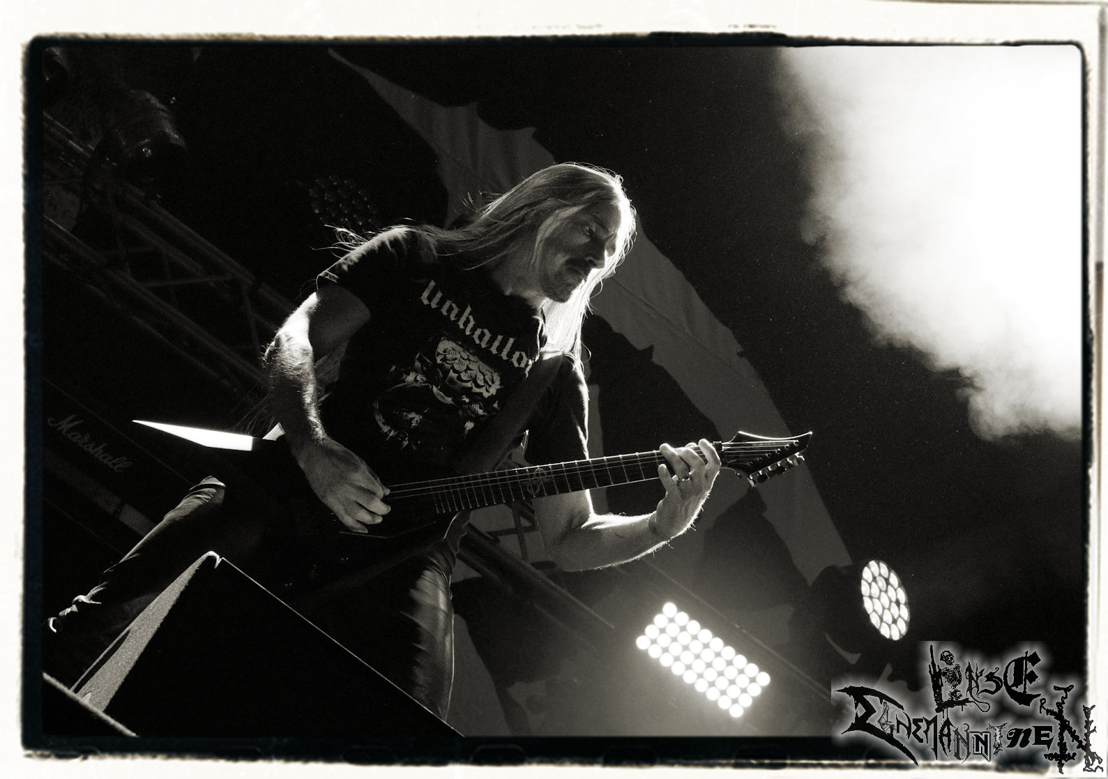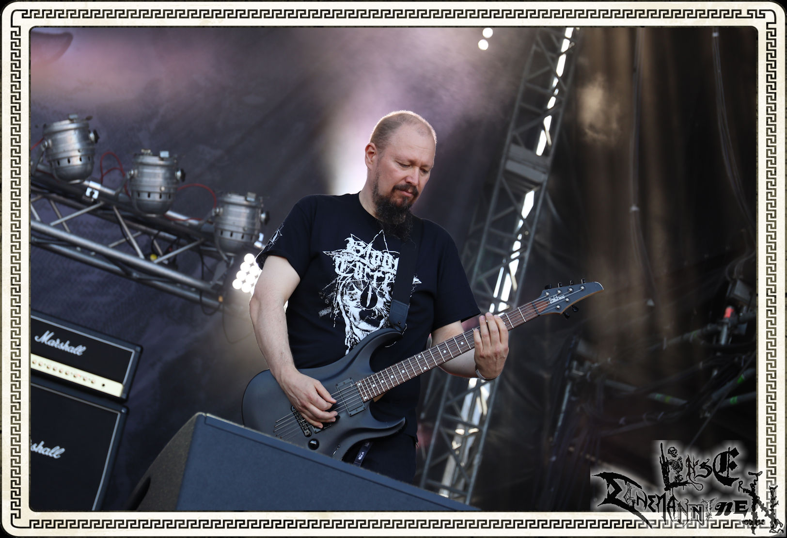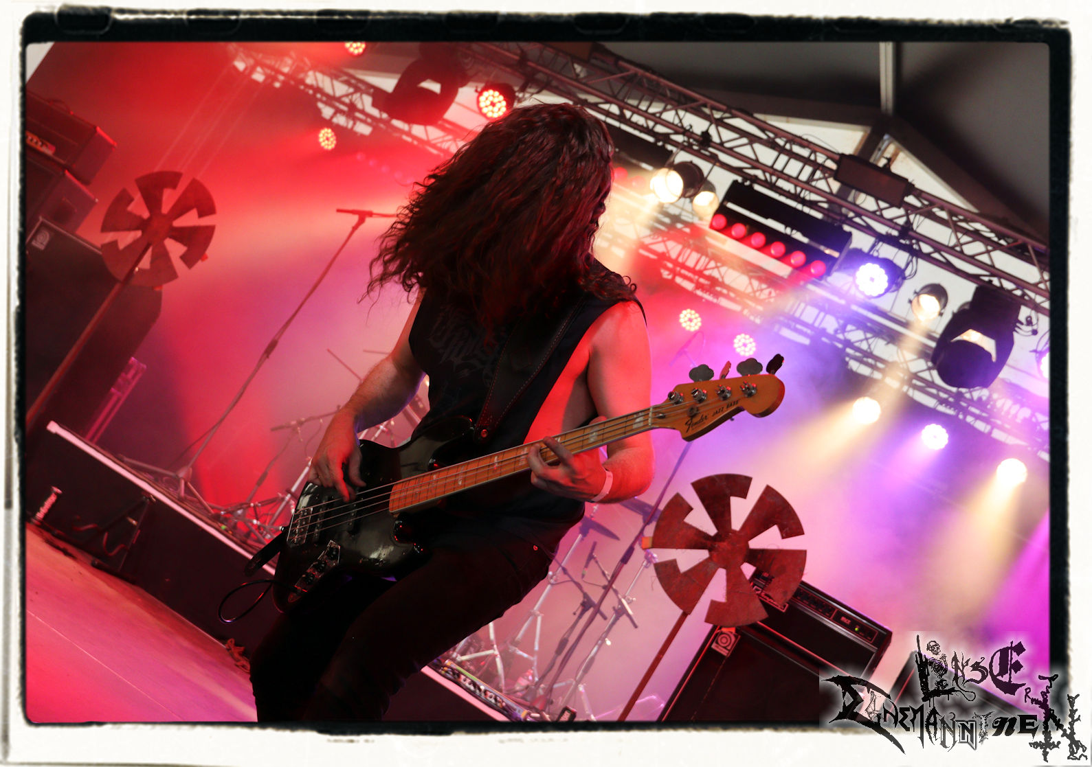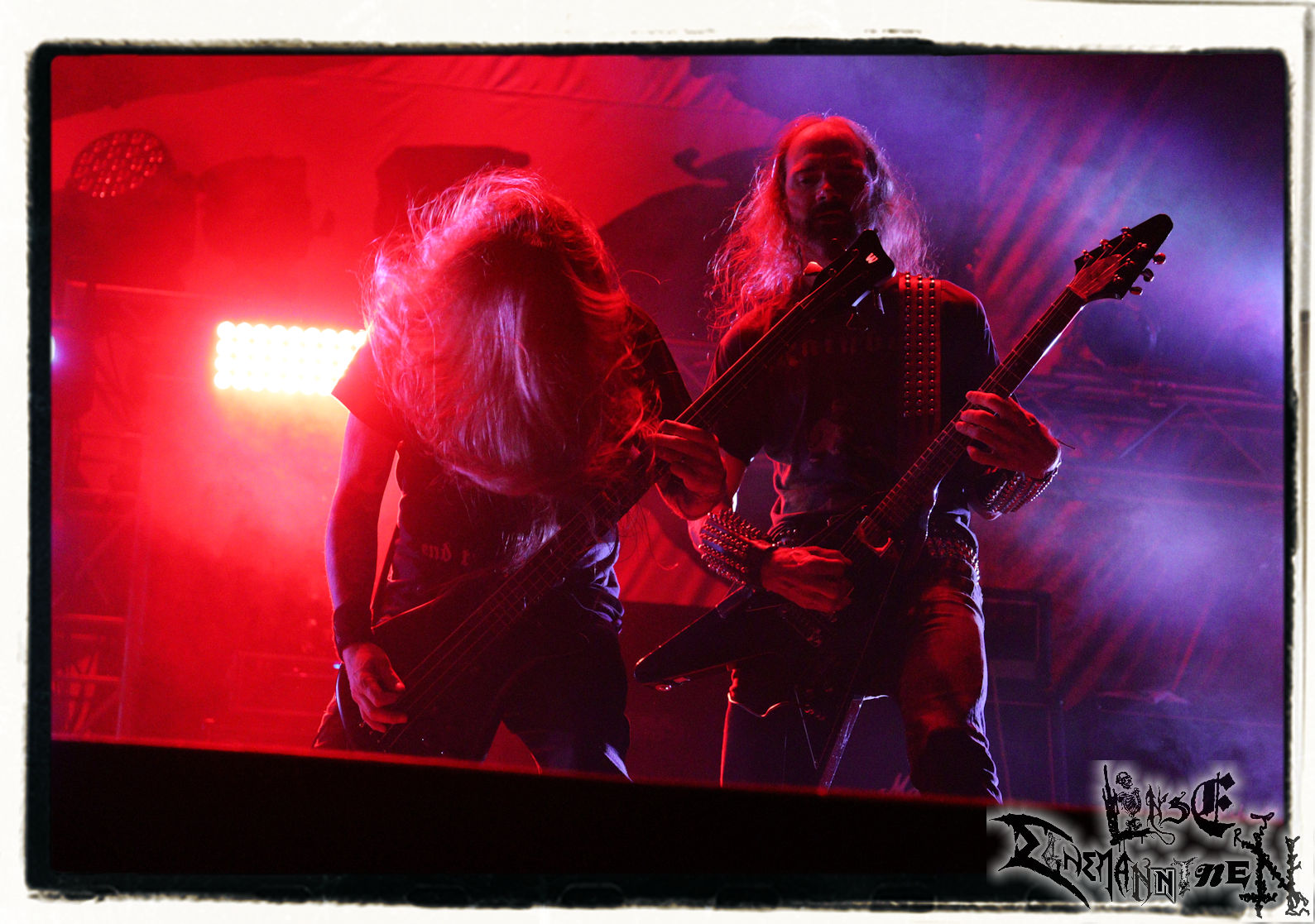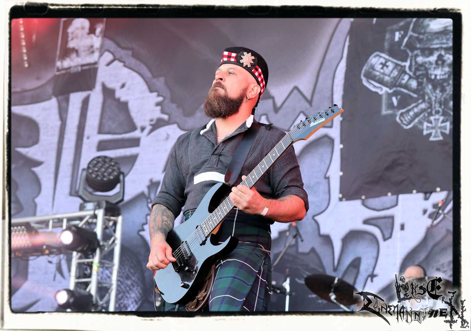 Mit EIS wird der Abend eingeläutet. Die Band aus dem Lupus Lounge – Stall ist wie geschaffen für das Zelt auf dem PARTY.SAN METAL OPEN AIR und beweist eindrucksvoll, wie man Atmosphäre mit mitreißenden Black Metal – Songs kombiniert. Bandkopf Alboin ist gleichzeitig Fan und Vollblutmusiker, der mit den Schwarzmetall-Größen der Neunziger aufgewachsen ist, wobei seine Musik sowohl von diesen, als auch von seiner Bewunderung gegenüber prägenden heimischen Acts wie Helrunar oder auch dem Wirken von Schwadorf mit Sun Of The Sleepless beeinflusst ist. Auch macht er keinen Hehl daraus, dass ihm die Einladung nach Schlotheim mit seiner Band als "Spätberufenem" sehr viel bedeutet. Und diese Haltung schwingt in diesem Konzert mit. Egal, ob Songs vom 2005er-Album "Galeere" ("Durch lichtlose Tiefen", seinerzeit noch unter dem Bandvorgänger Geist veröffentlicht (aus namensrechtlichen Gründen musste man sich danach in Eis umbenennen), vom bisher jüngsten Album "Bannstein" oder vom Klassiker "Wetterkreuz" (2012), der heuer auch schon zehn Jahre auf dem Buckel hat, gespielt werden. Eis zünden ein kleines Highlight, das mir noch lange in Erinnerung bleiben und mich animiert, mir die Scheiben mal wieder zu Gemüte zu führen. Danke!(JD)